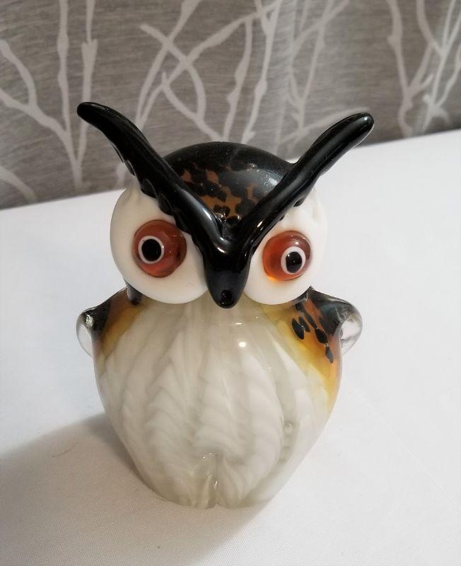 Lot #34 Two Owl Figurines - one blown Glass, one bisque porcelain