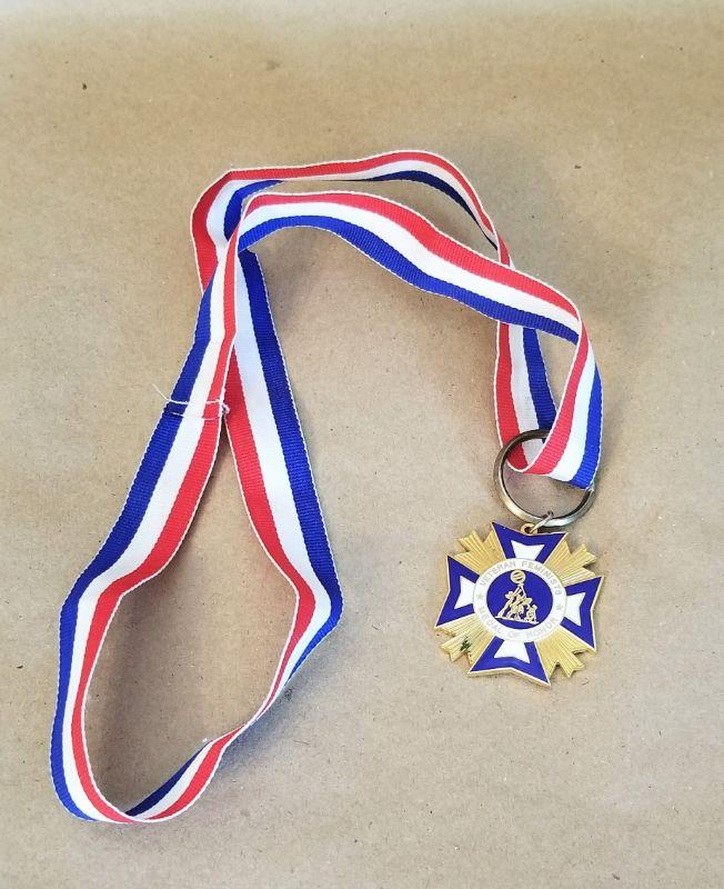 Designed by Judith Meuli, vintage Veteran Feminist Medal of Honor with neck ribbon. Enameling in Good condition. Currently on ebay for 88.00 with no neck ribbon. Ribbon 26" long, medal 1.5" tall. 1970's.