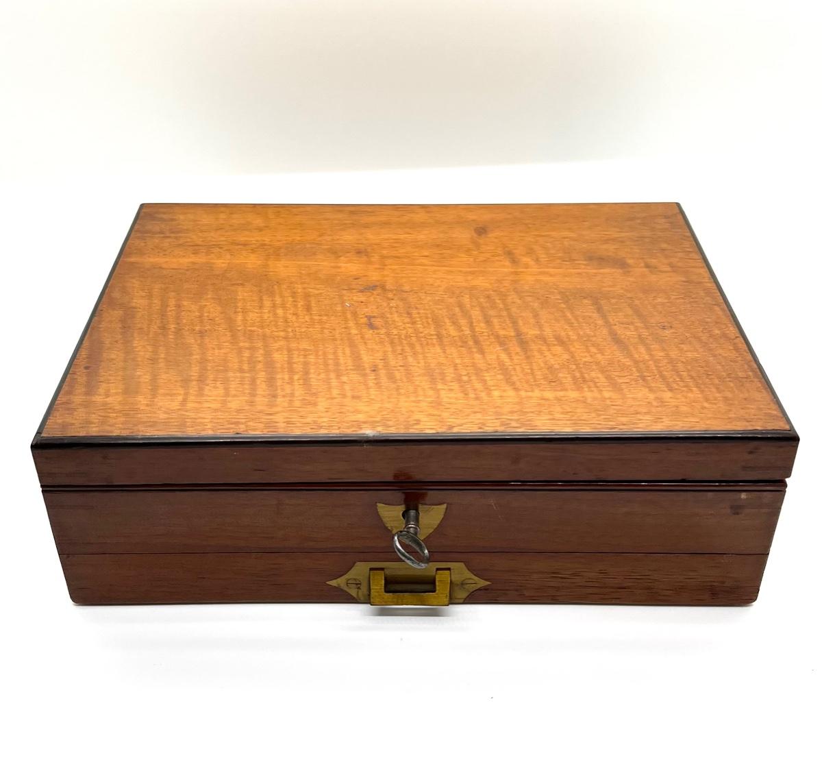 LOT 34 - Winsor and Newton Antique Paint Box from the 1900's made of Mahogany. This box measures 8 1/2 inches across, 6 inches deep and 2 3/8 tall. The key and lock are in good working condition. Box features a drawer and removable trays for more storage. Some light scratches on wood.