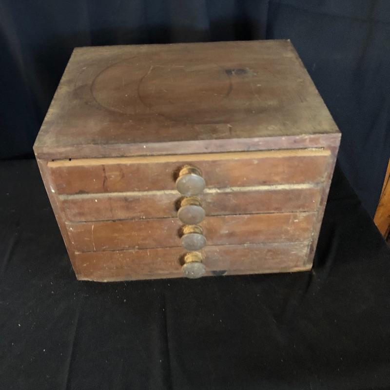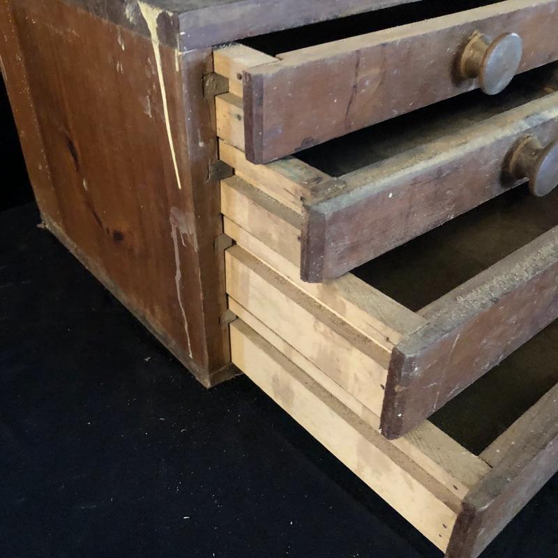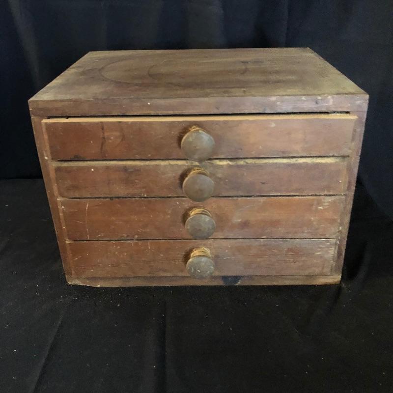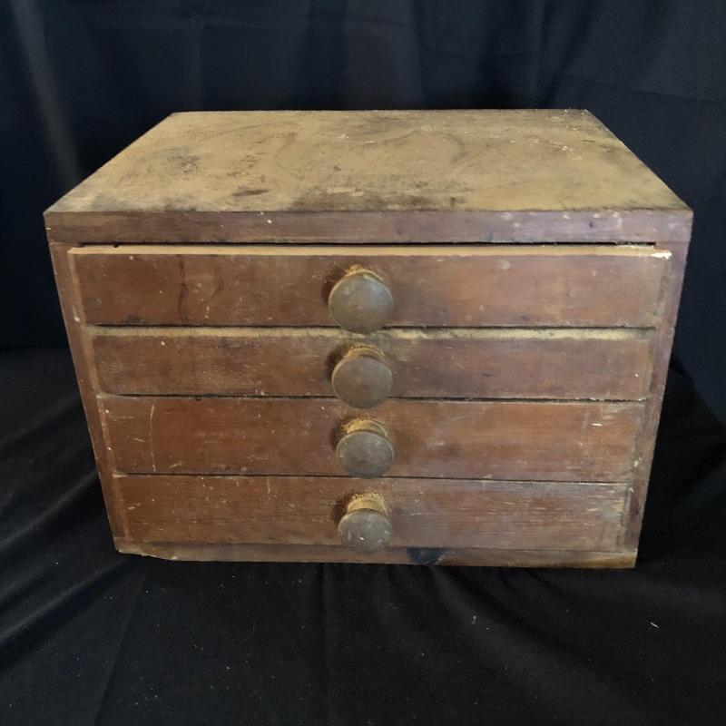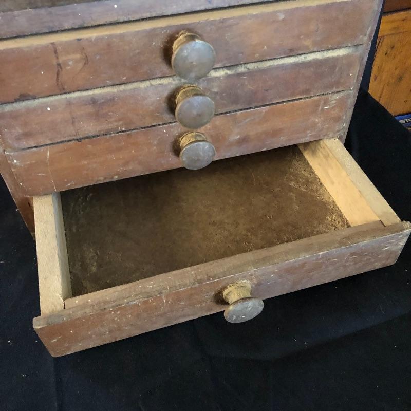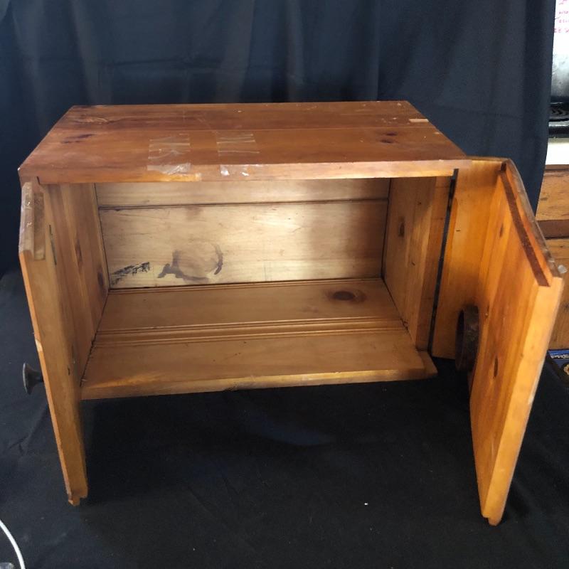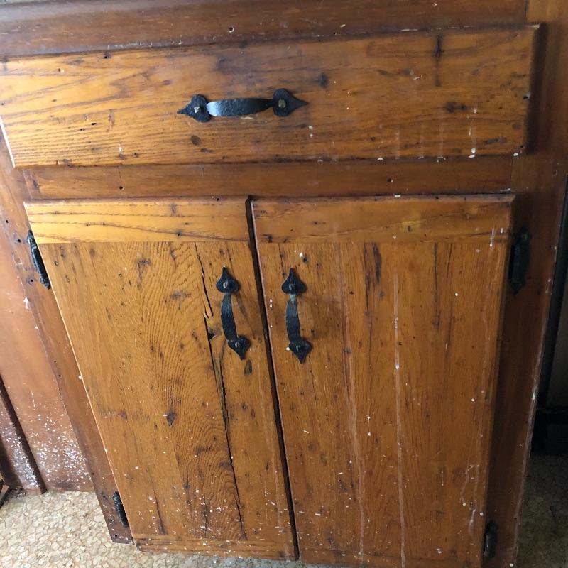 This lot contains three handmade cabinets - perfect for a workshop. The tallest cabinet measures 24” x 12.5” x 36”. One of the cabinet doors is loose as it needs a screw on the hinge. The top is also loose. The smallest cabinet has four drawers. It measures approximately 15” x 13” x 11”. The third cabinet has two doors and has old tape on it. It measures 20.5” x 12” x 13.5”. Local pick up only.