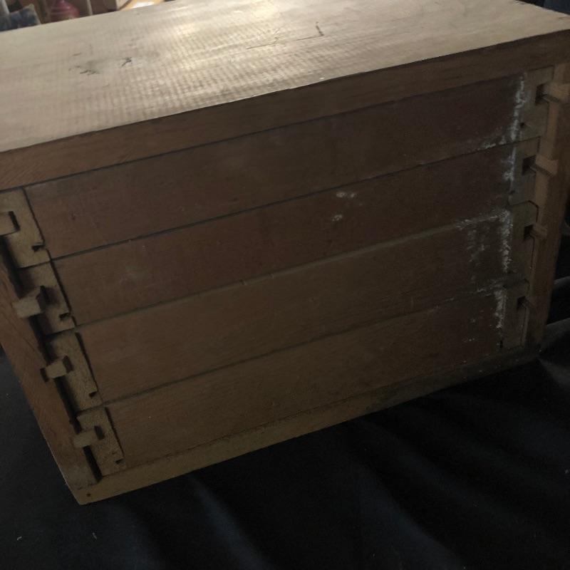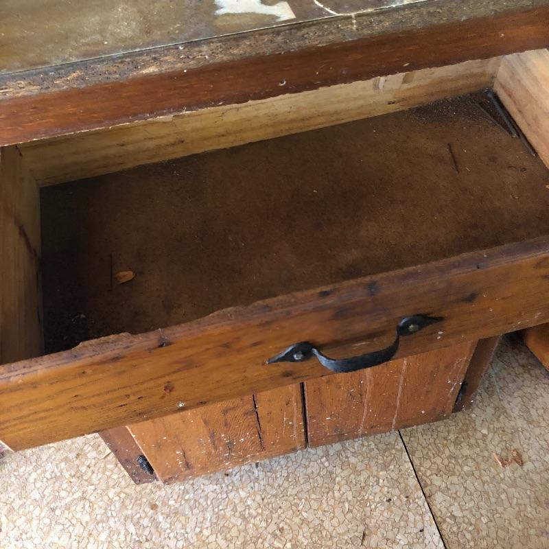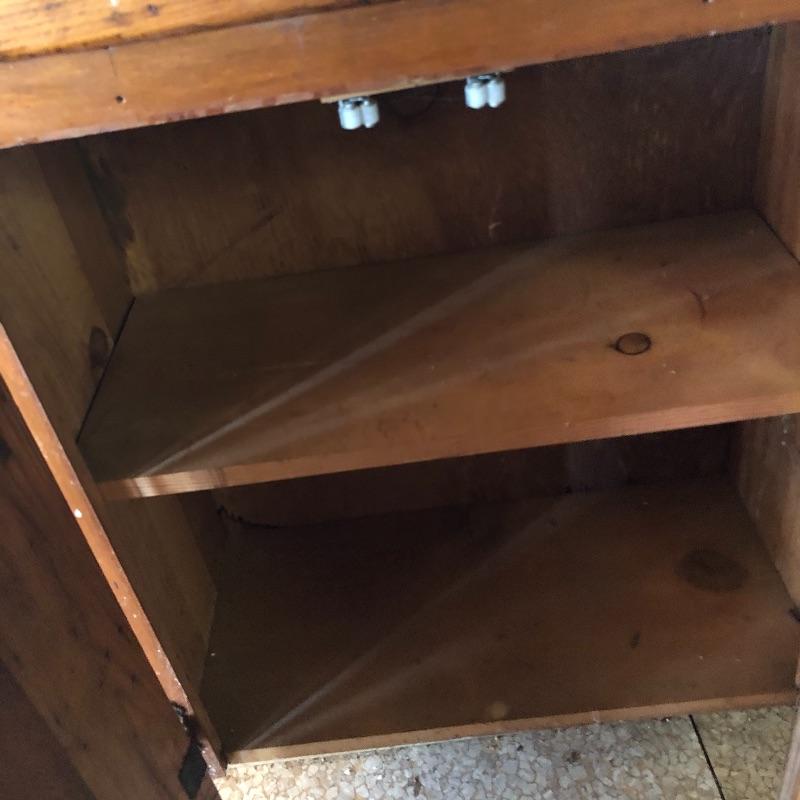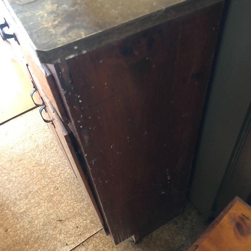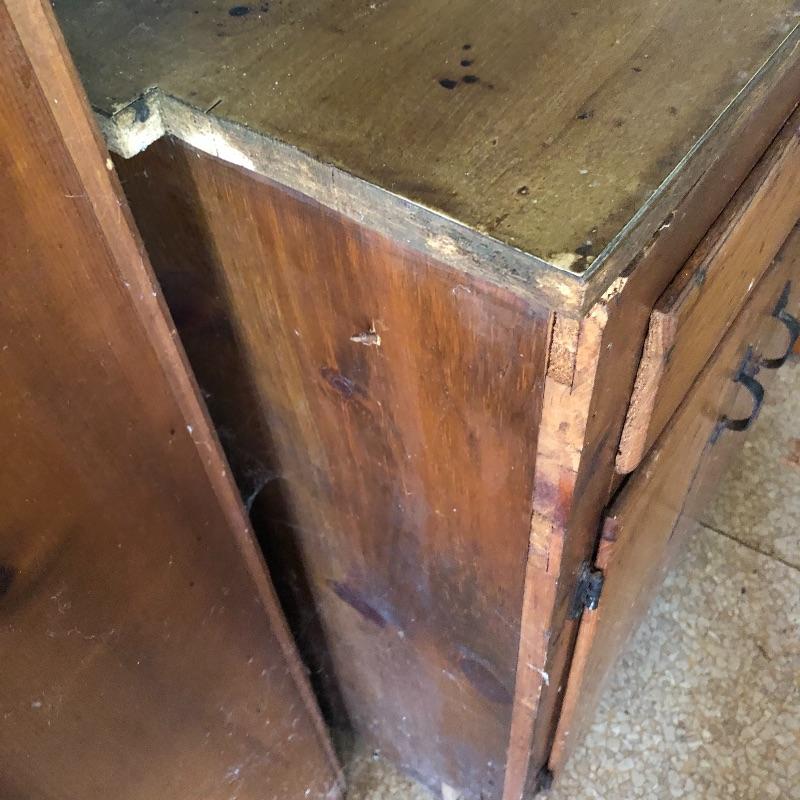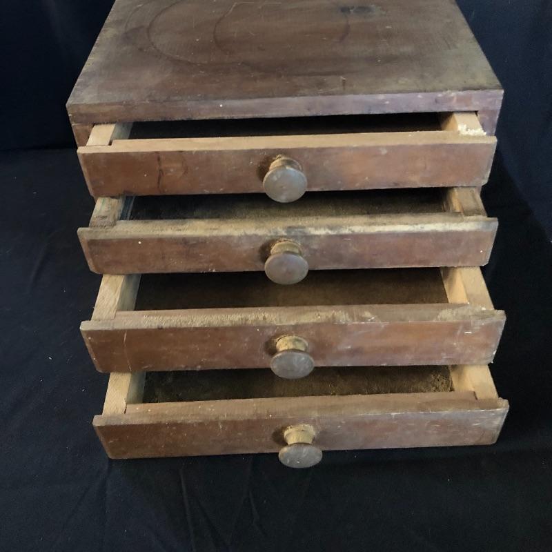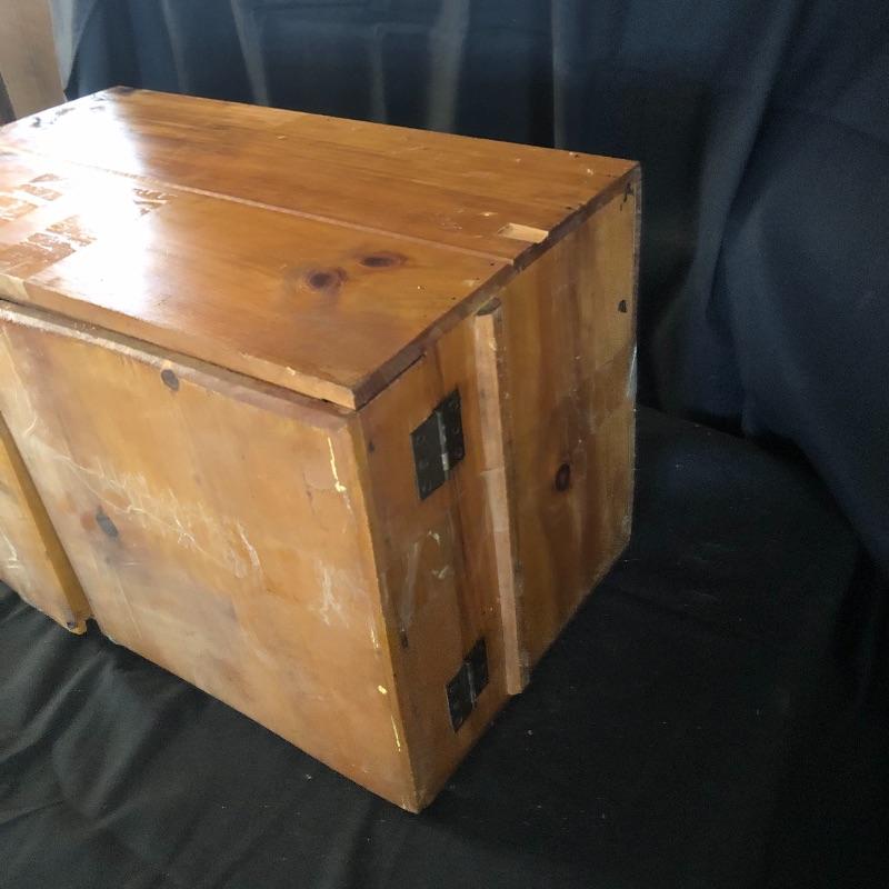 This lot contains three handmade cabinets - perfect for a workshop. The tallest cabinet measures 24” x 12.5” x 36”. One of the cabinet doors is loose as it needs a screw on the hinge. The top is also loose. The smallest cabinet has four drawers. It measures approximately 15” x 13” x 11”. The third cabinet has two doors and has old tape on it. It measures 20.5” x 12” x 13.5”. Local pick up only.