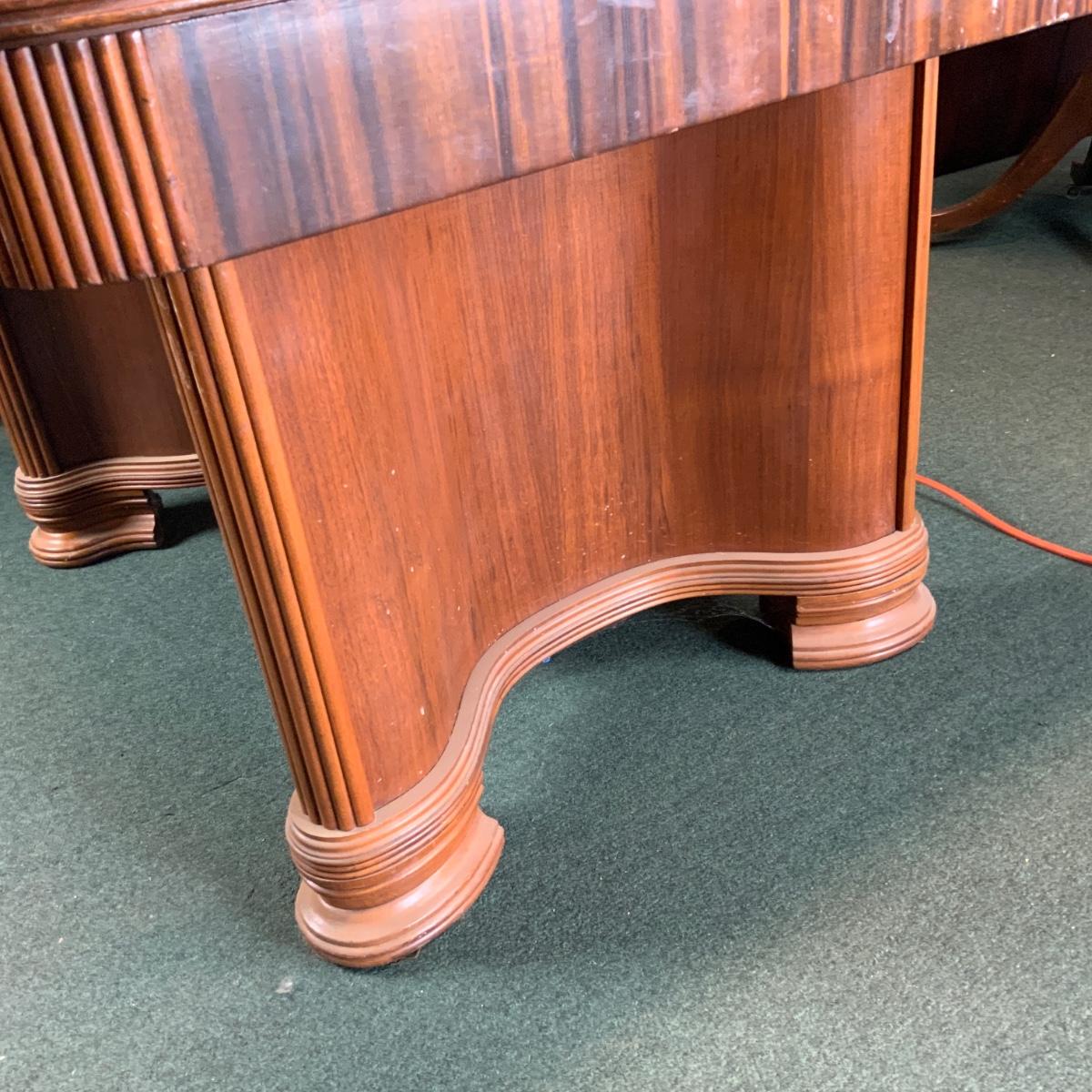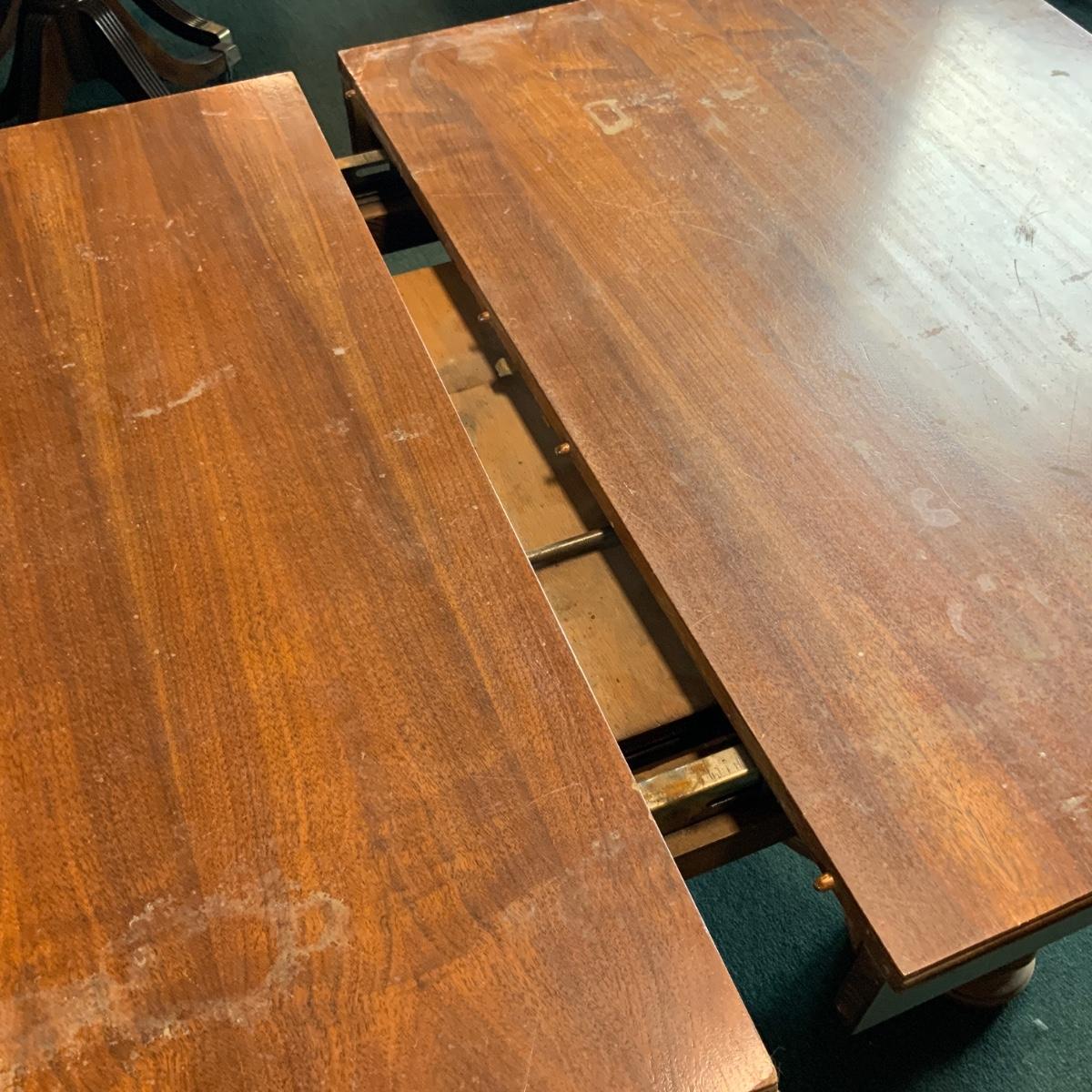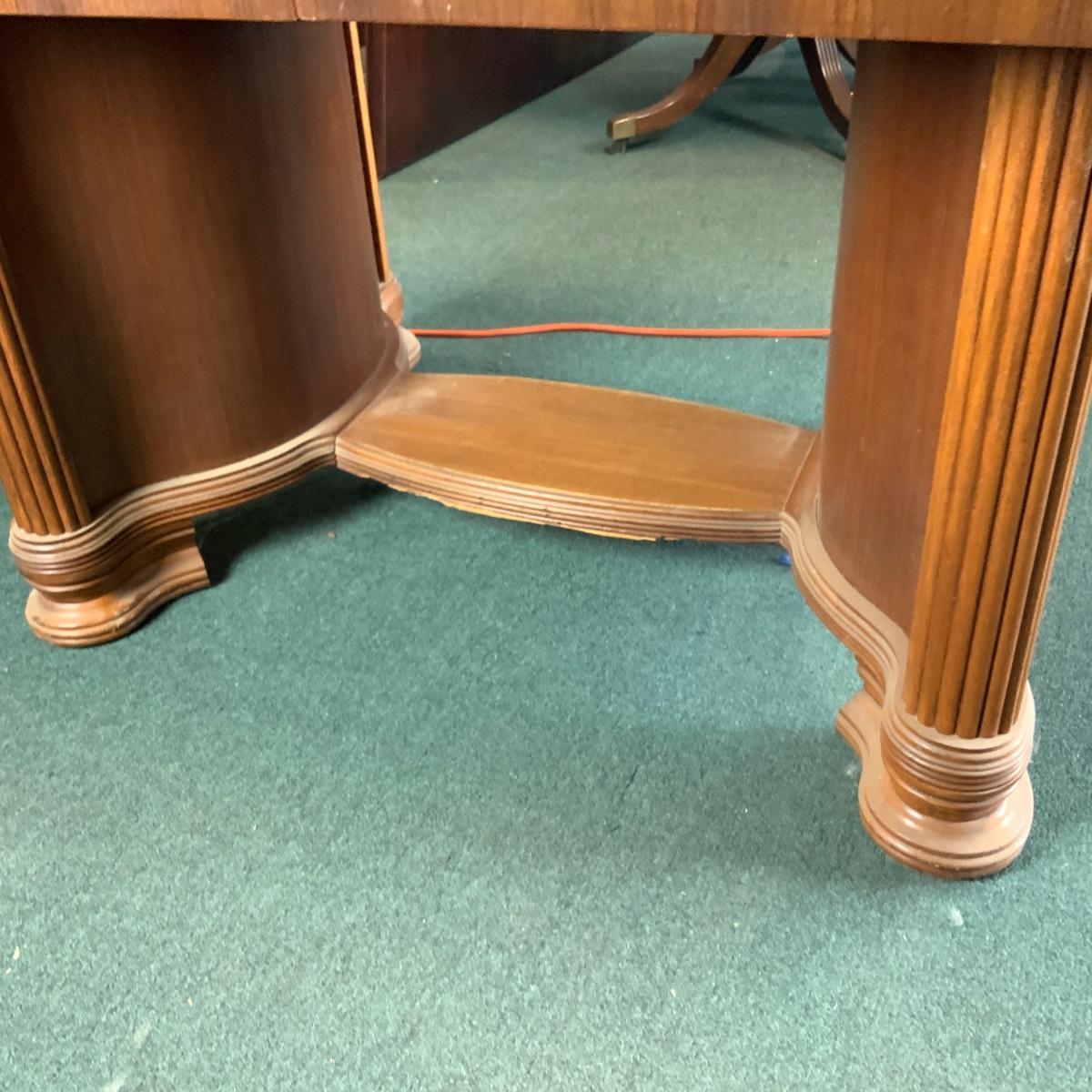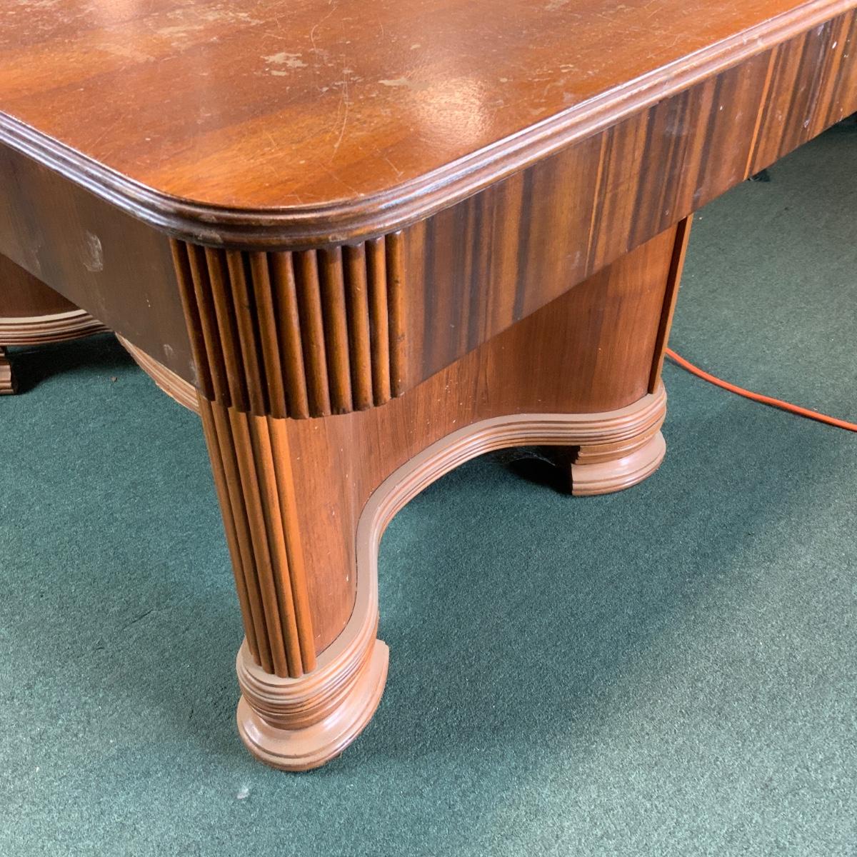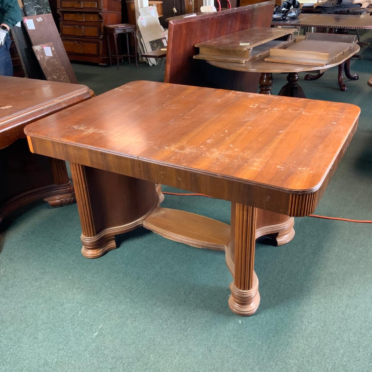 Art Deco Dining Table has additional leaf on the interior. //::\\ Please see photos for details and condition. No attempt has been made to hide any imperfections. All items listed in this auction are warehouse items, and need to be cleaned. A majority of the items need restoration as well. All items are sold AS IS and WITHOUT GUARANTEE. If you are uncertain about an item, DO NOT BID. Due to the nature of this online auction in-person inspection is HIGHLY recommended. All Sales are FINAL. Pick Up Times are FIRM. Please confirm with your own schedule that you can pick up in the scheduled times listed in the Terms and Conditions. Any questions please message the auctioneer. DO NOT Contact The Harp Gallery.