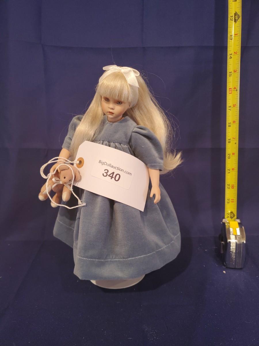 Doll Named "Dana" By Pauline with Blue Gown Blonde Hair Holding Teddy Bear