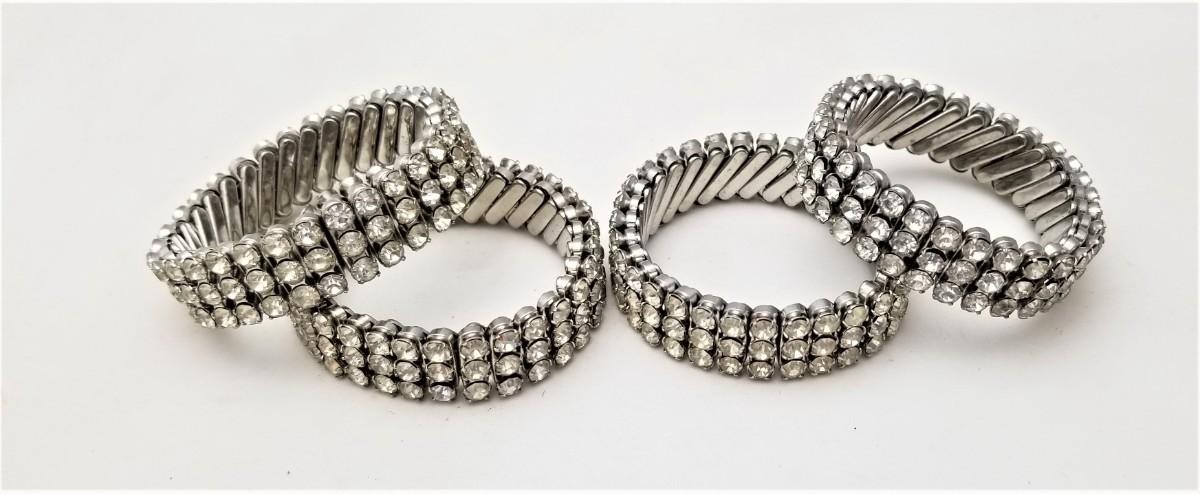Lot #340 Four vintage Rhinestone Stretch bracelets - 1950's/60's.