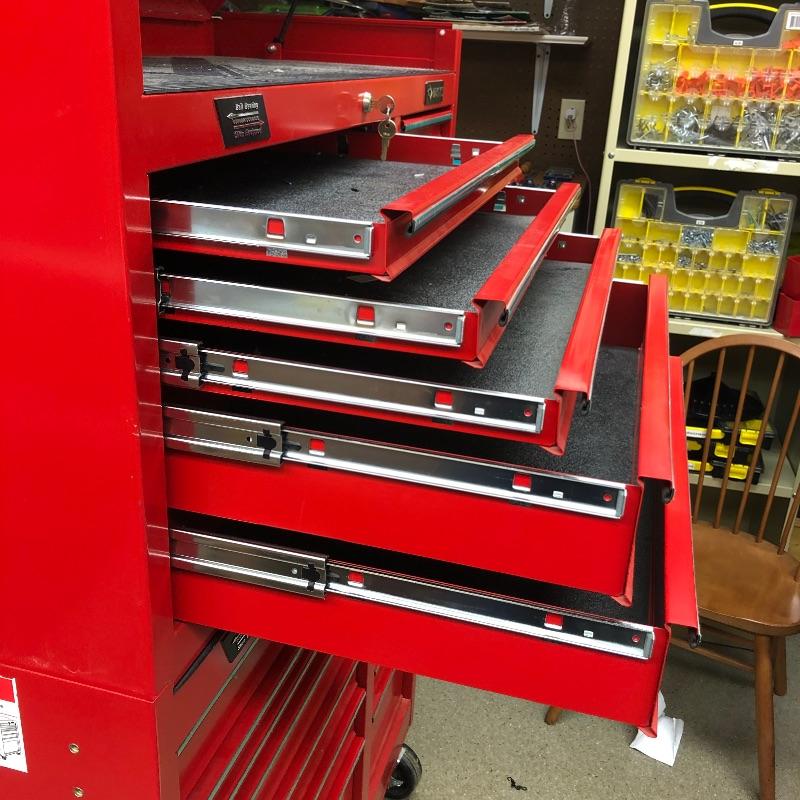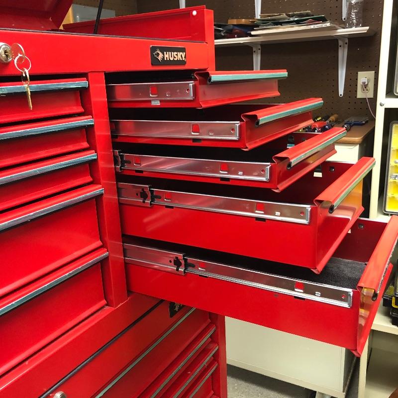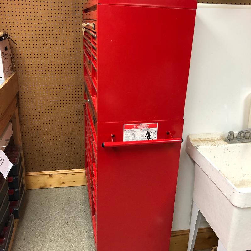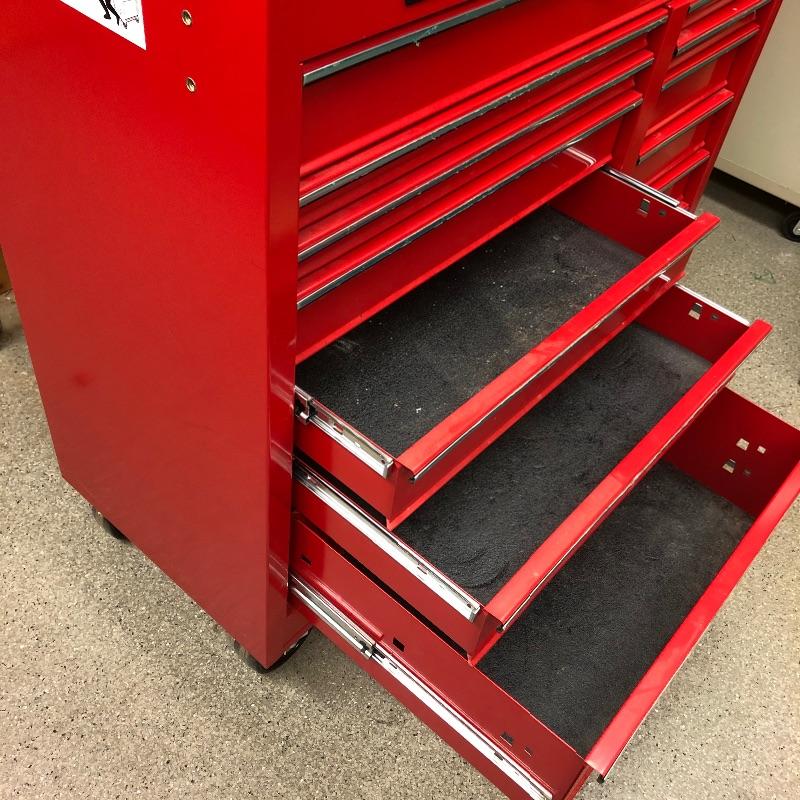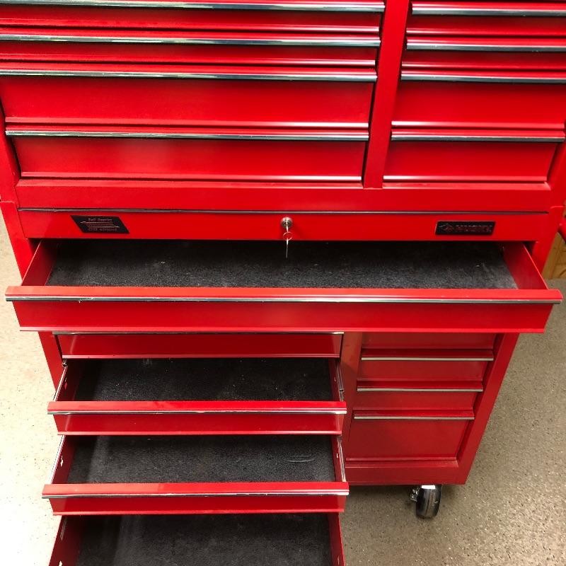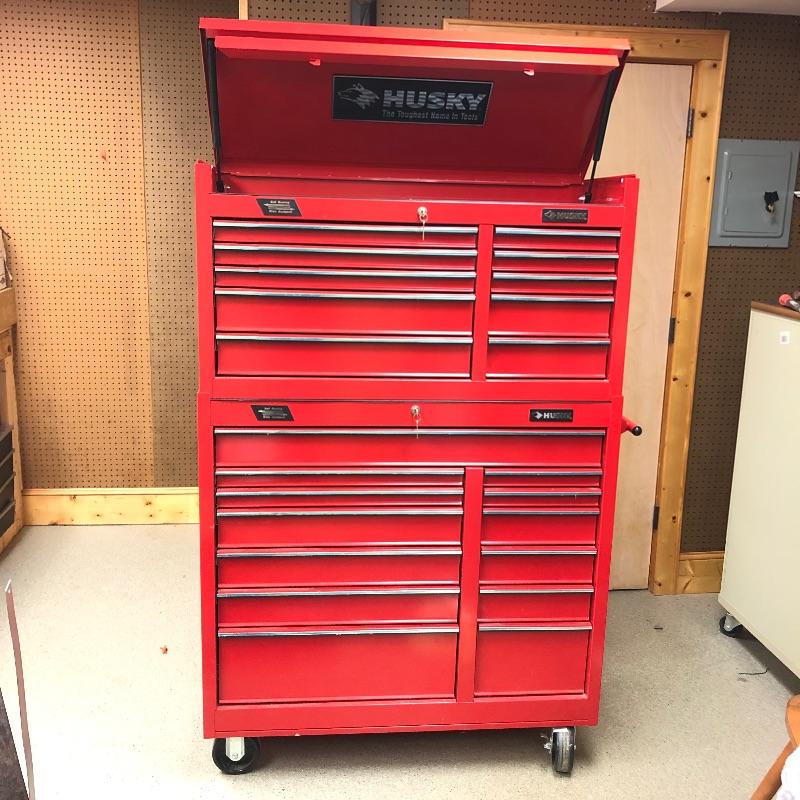 This two piece Husky tool chest is in excellent condition. Both pieces are lockable and keys come with it. Ten drawers come on the top piece and twelve on the bottom piece this unit can hold a bunch of tools.