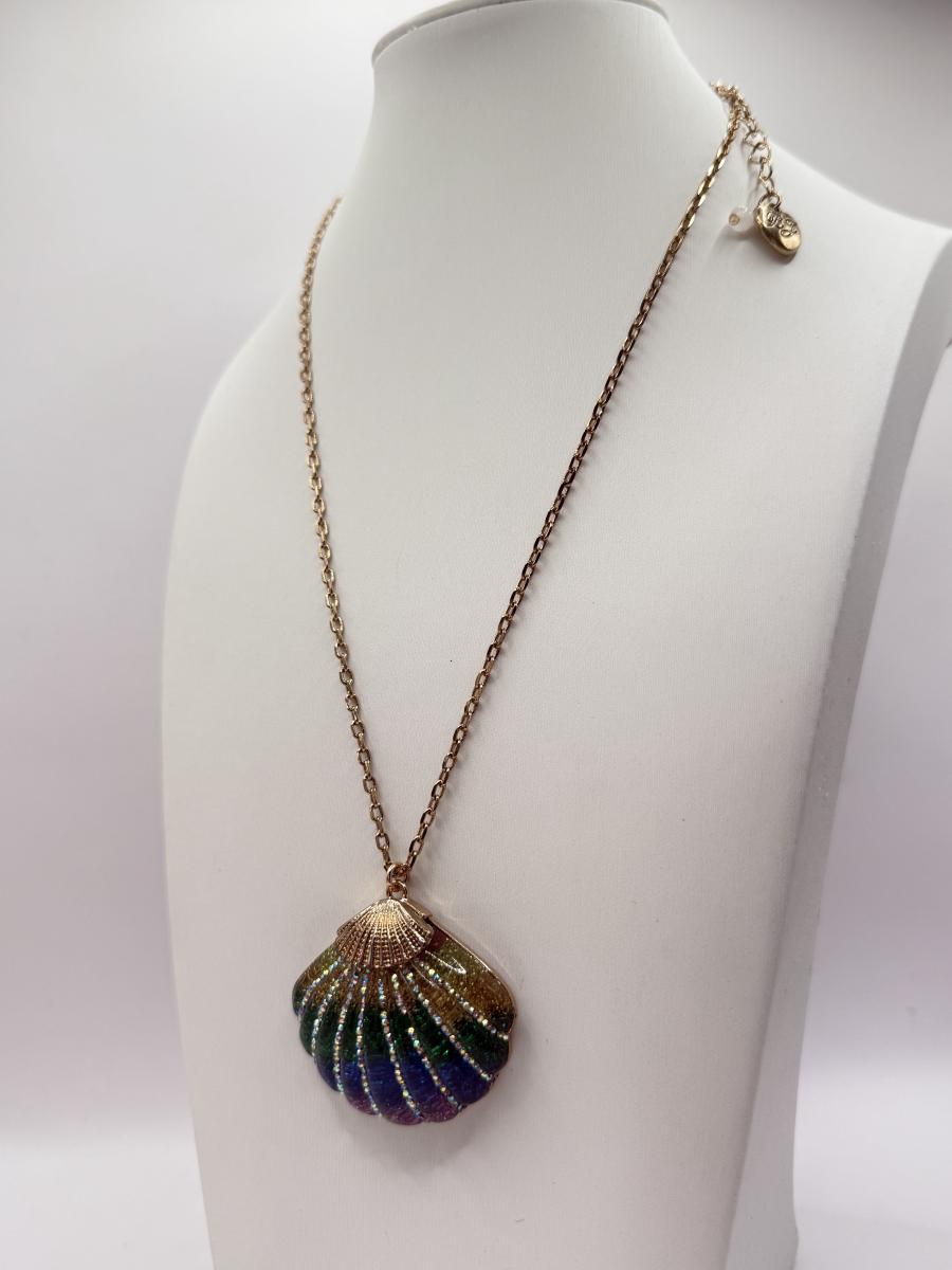 LOT 340J: Betsey Johnson Gold Tone Shell Pendant Necklace (21”)