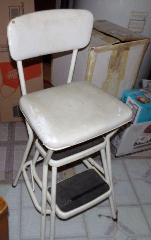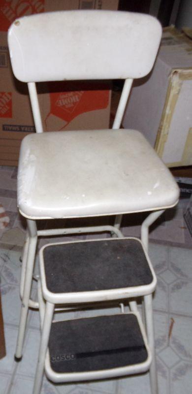 OAK DESK CHAIR, KITCHEN STOOL W/STEPS AND DINING CHAIR