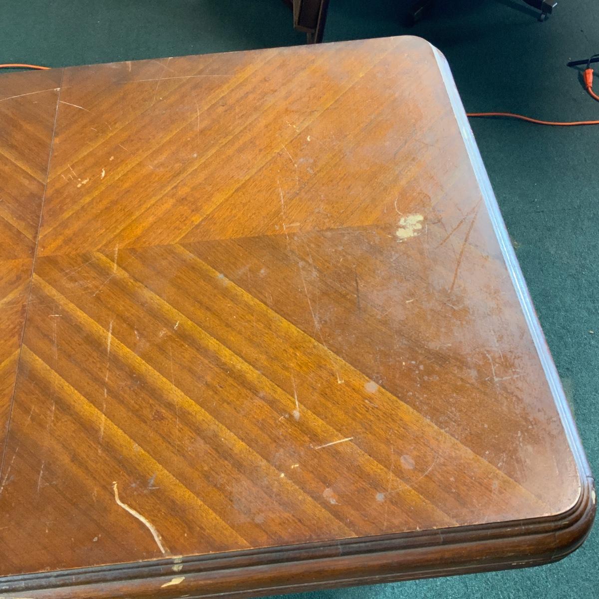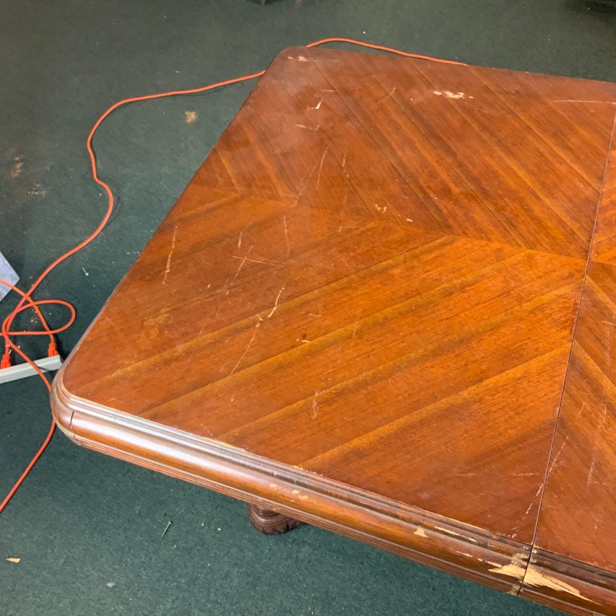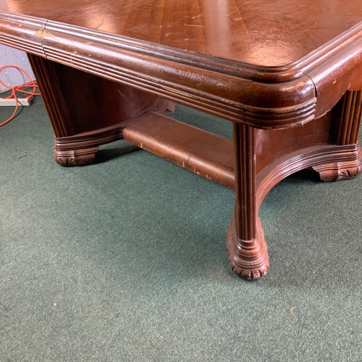 Art Deco Dining table. Amazing lines. A classic look for certain. //::\\ Please see photos for details and condition. No attempt has been made to hide any imperfections. All items listed in this auction are warehouse items, and need to be cleaned. A majority of the items need restoration as well. All items are sold AS IS and WITHOUT GUARANTEE. If you are uncertain about an item, DO NOT BID. Due to the nature of this online auction in-person inspection is HIGHLY recommended. All Sales are FINAL. Pick Up Times are FIRM. Please confirm with your own schedule that you can pick up in the scheduled times listed in the Terms and Conditions. Any questions please message the auctioneer. DO NOT Contact The Harp Gallery.
