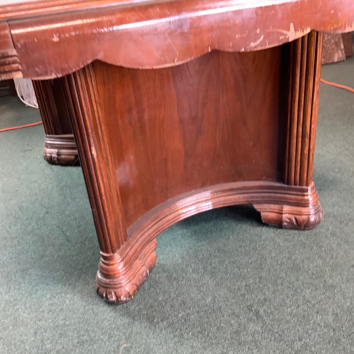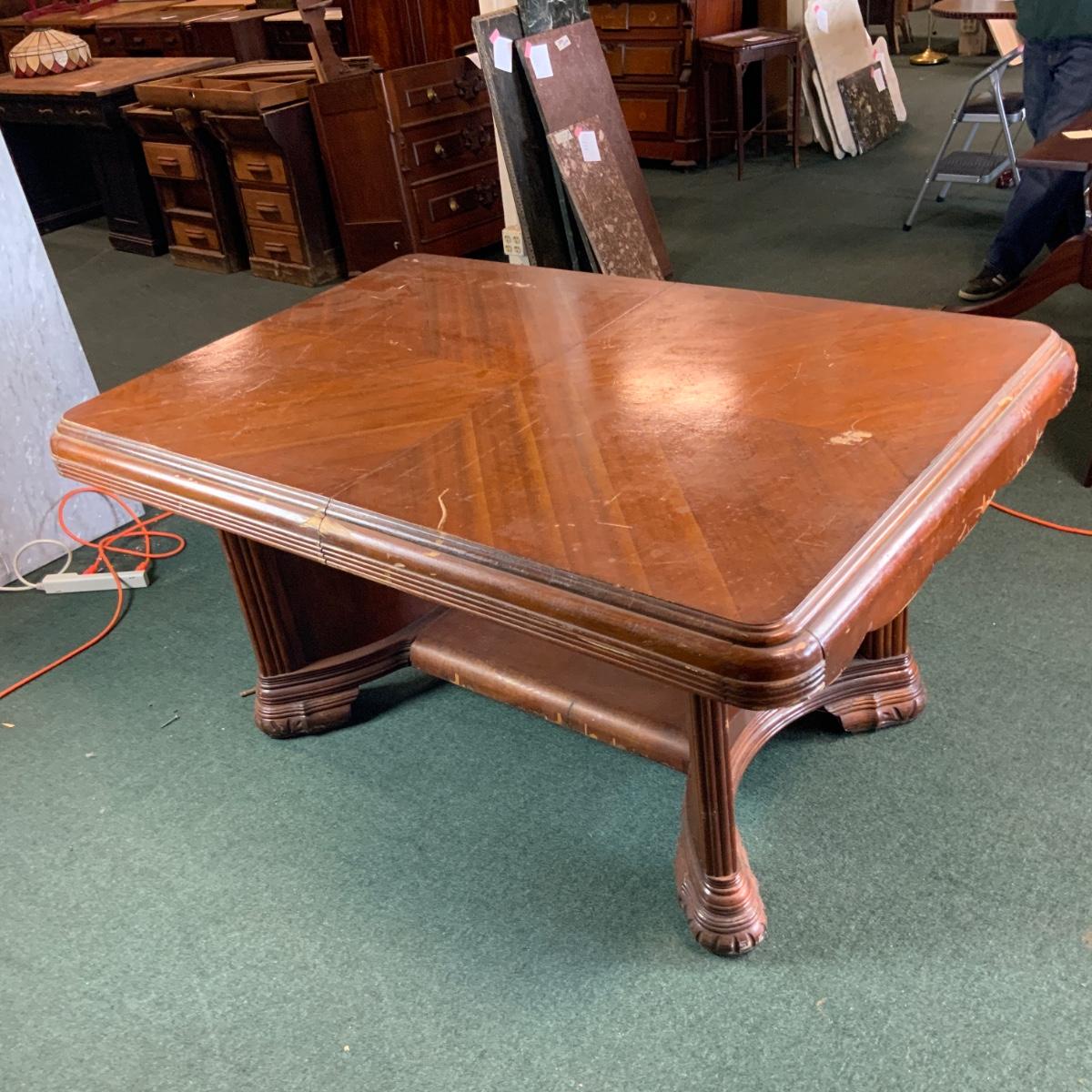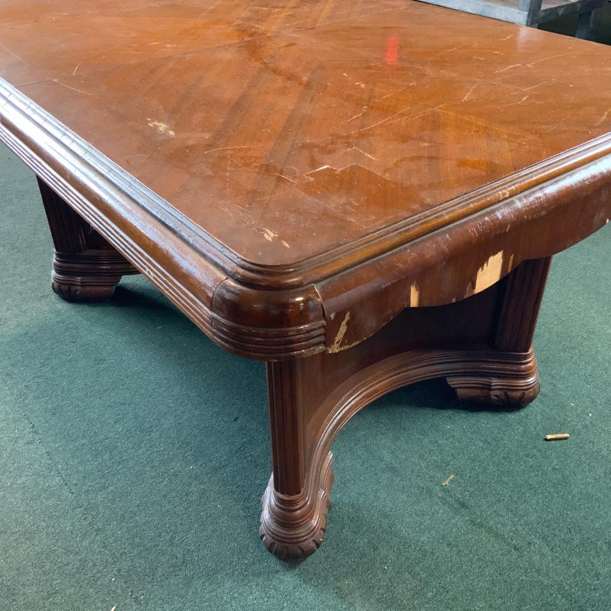 Art Deco Dining table. Amazing lines. A classic look for certain. //::\\ Please see photos for details and condition. No attempt has been made to hide any imperfections. All items listed in this auction are warehouse items, and need to be cleaned. A majority of the items need restoration as well. All items are sold AS IS and WITHOUT GUARANTEE. If you are uncertain about an item, DO NOT BID. Due to the nature of this online auction in-person inspection is HIGHLY recommended. All Sales are FINAL. Pick Up Times are FIRM. Please confirm with your own schedule that you can pick up in the scheduled times listed in the Terms and Conditions. Any questions please message the auctioneer. DO NOT Contact The Harp Gallery.