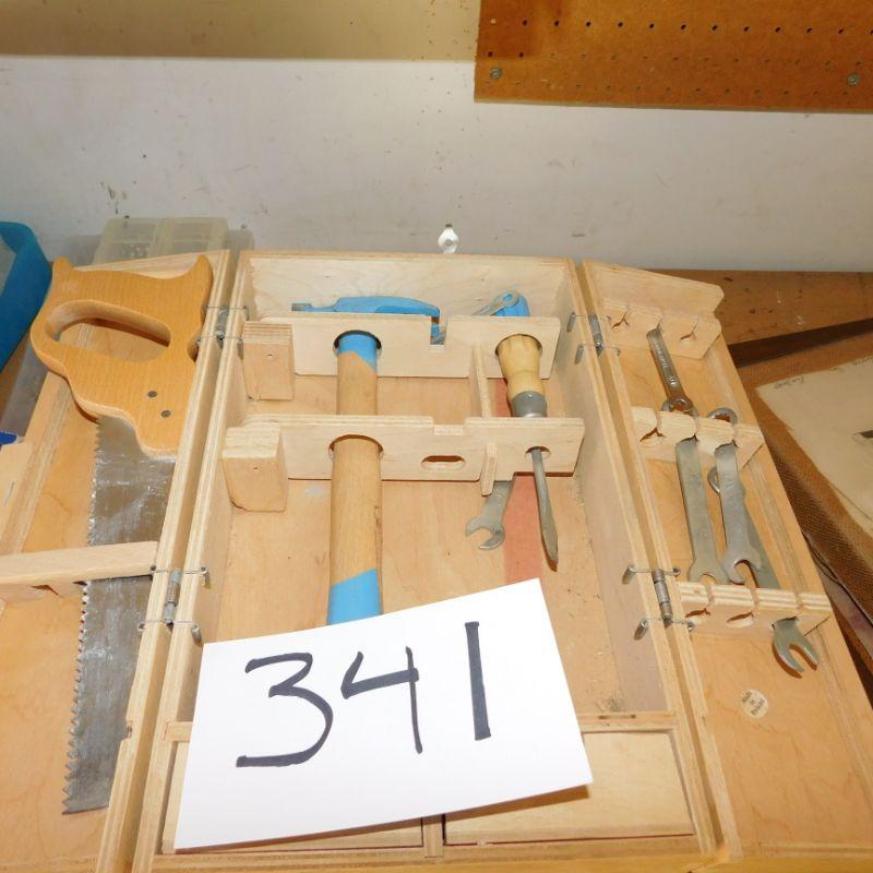 Lot 341  Kids tool kit in wood case
