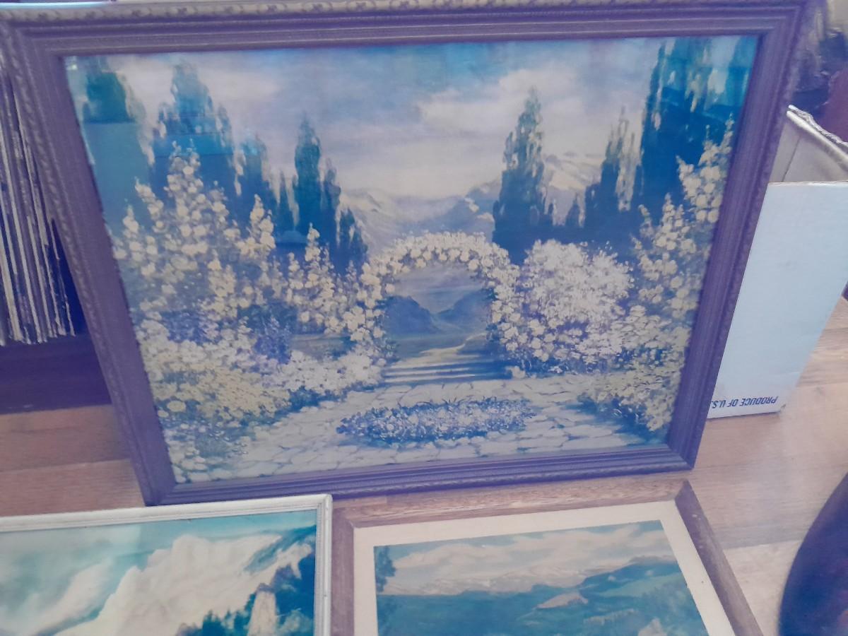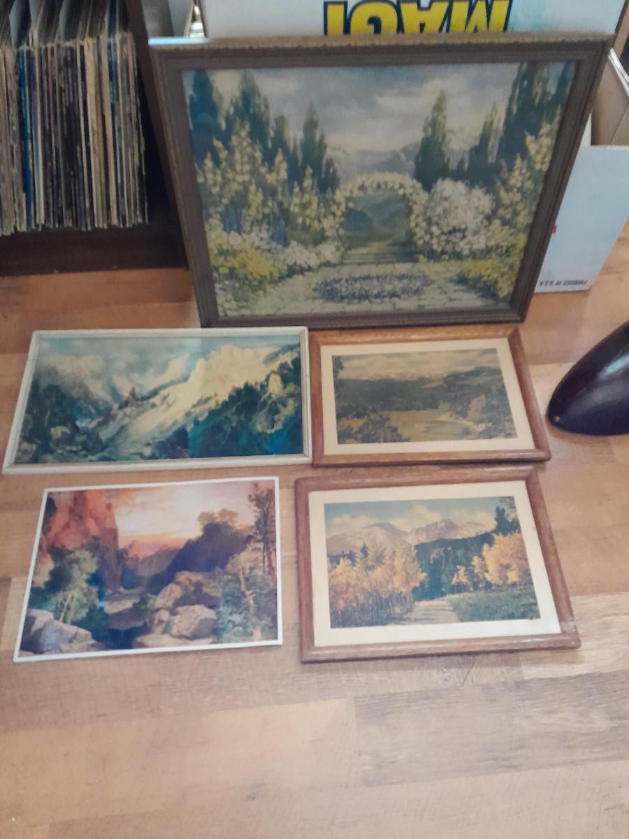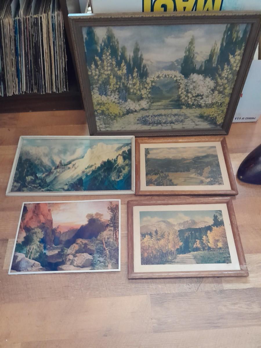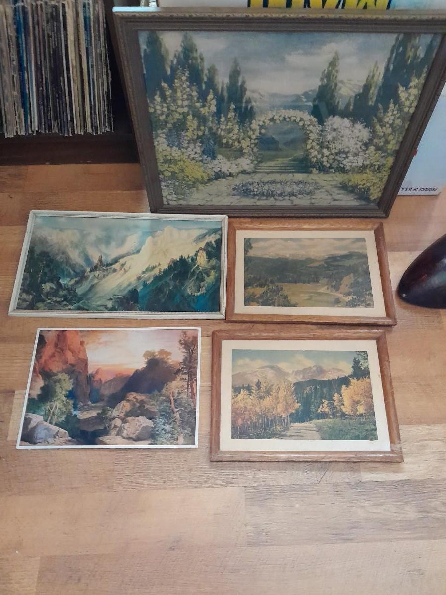 VINTAGE PRINTS FRAMED MOUNTAIN & LANDSCAPE ARTWORK. ONE NOT FRAMED. 22" X 18" & 18" X 10"