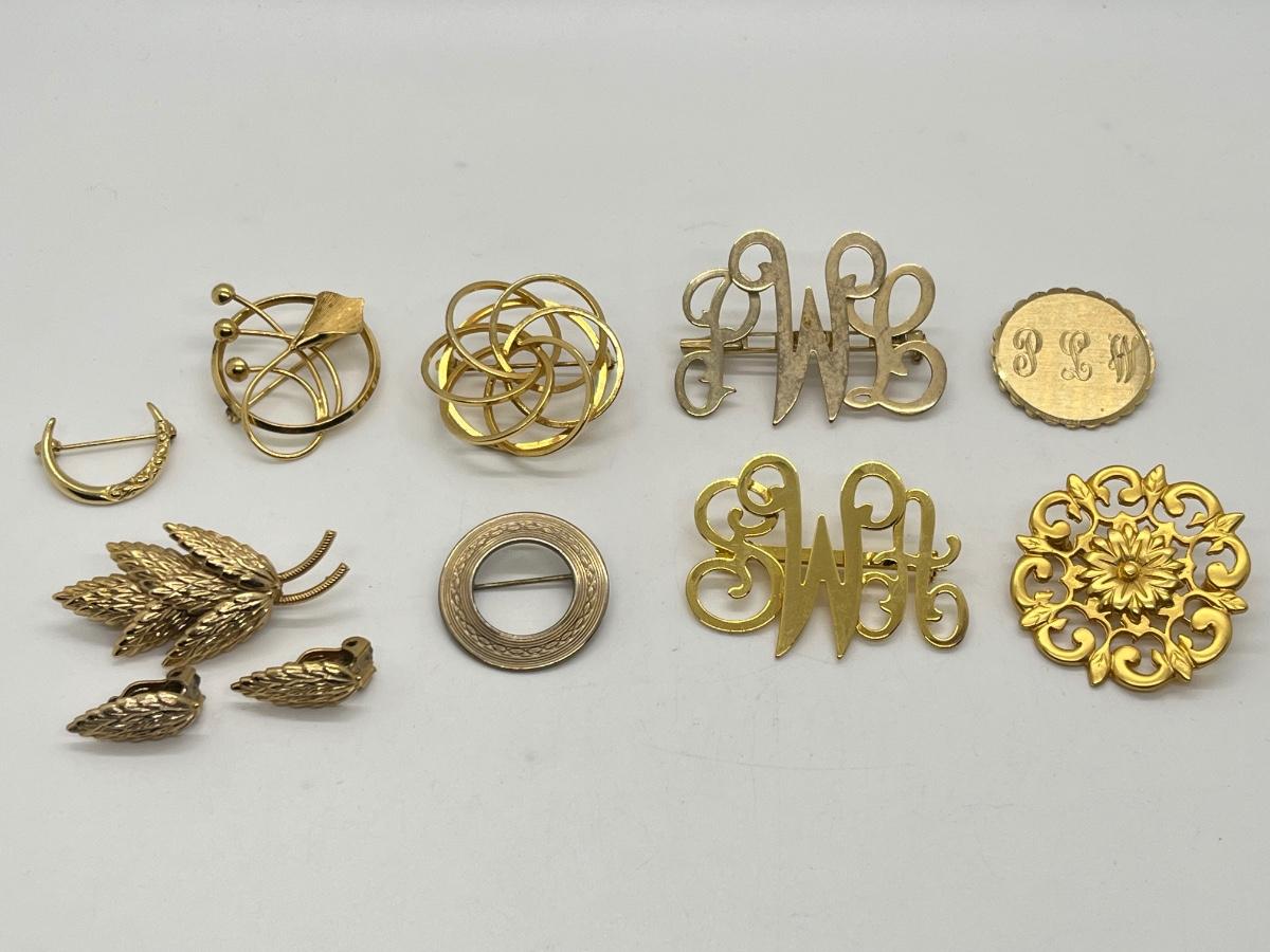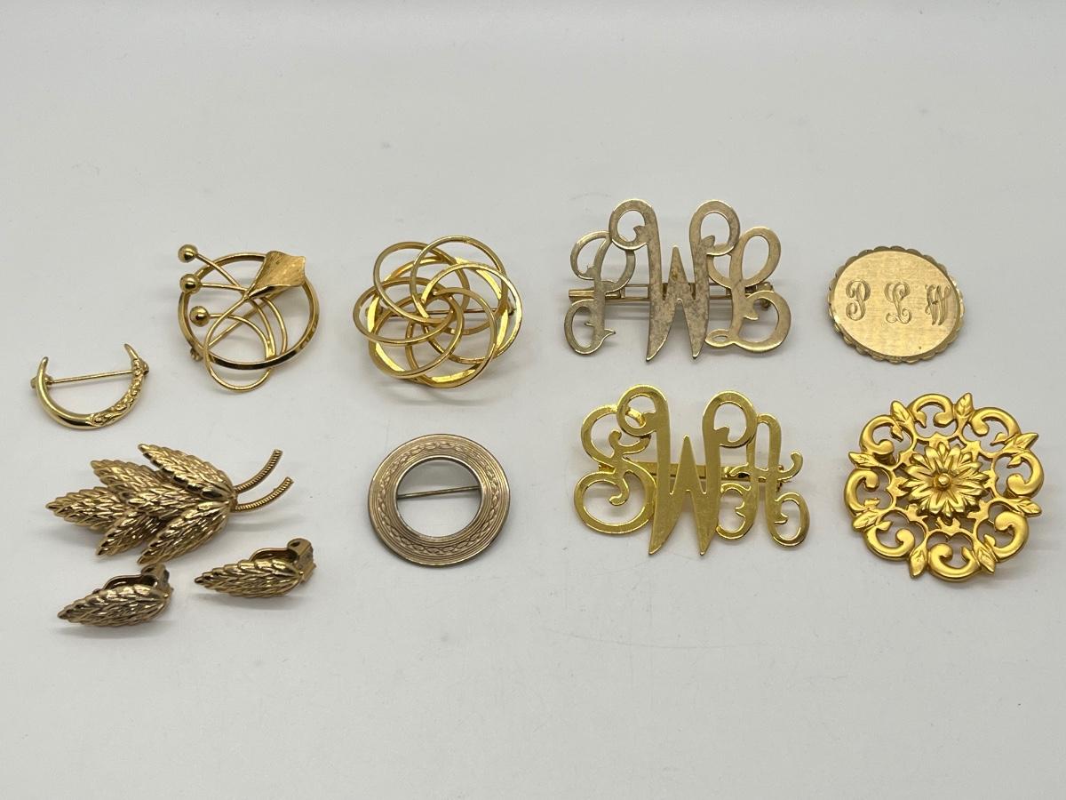 Lot 341J: Goldtone Vintage Brooches - 1 with Matching Clip-On Earrings