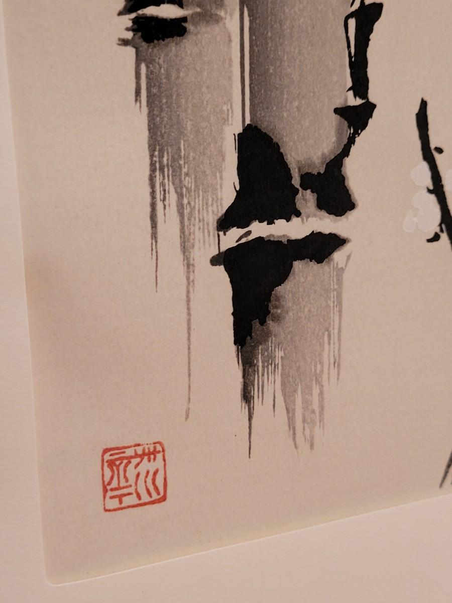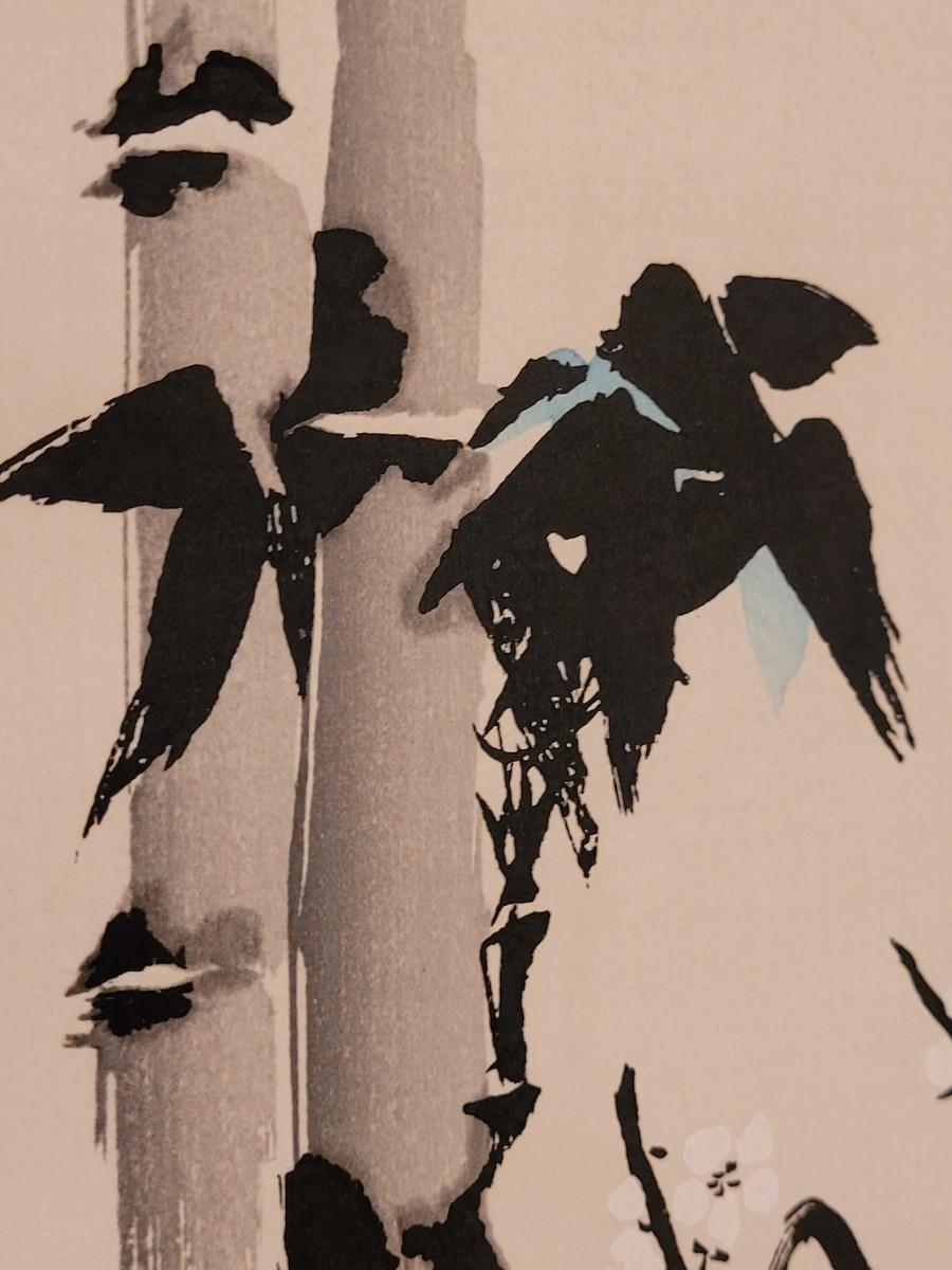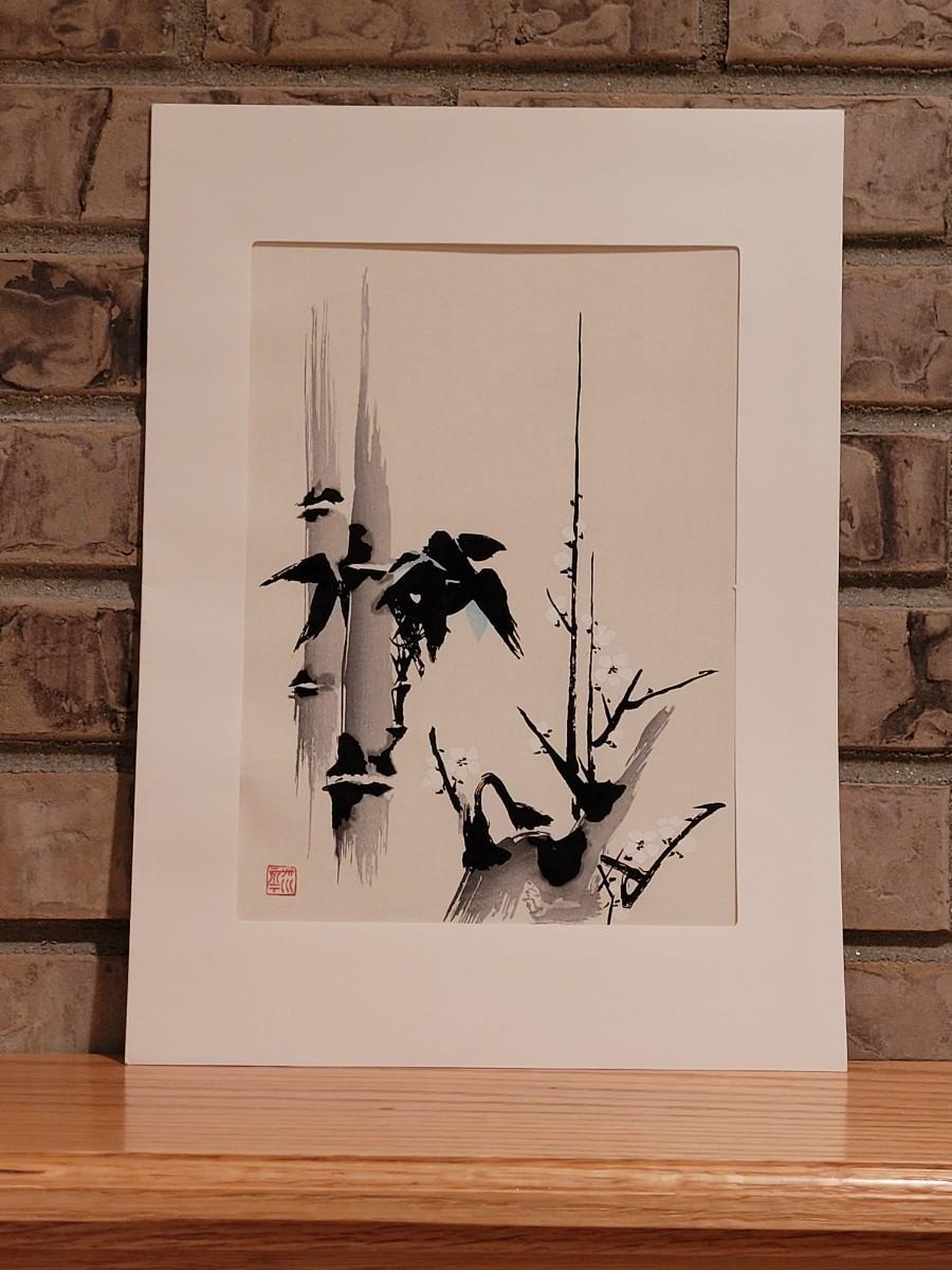 Lot 342: Japanese Woodblock with Bamboo and Blossoms)