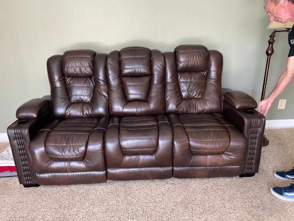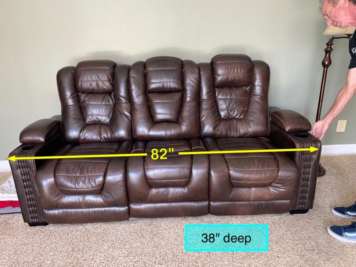 High quality faux leather motorized reclining sofa. Very good condition. Measurements are in the photos. Can deliver in the Tampa Bay/Orlando area for a fee.