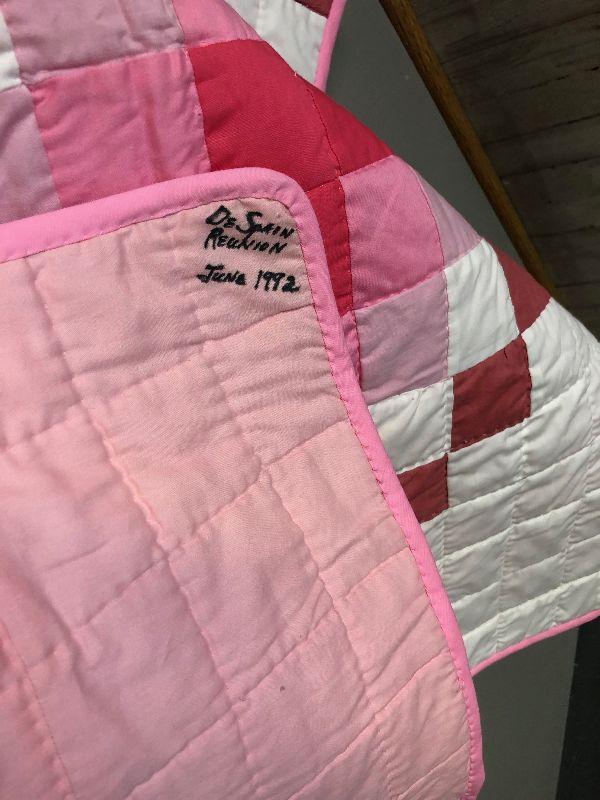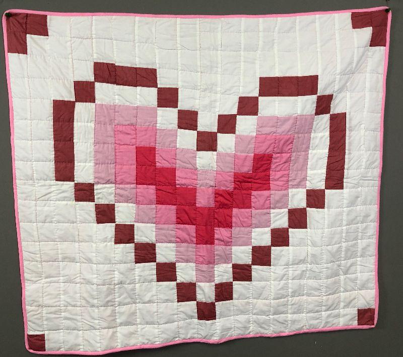 Lot 342 Homemade Pink Heart Quilt