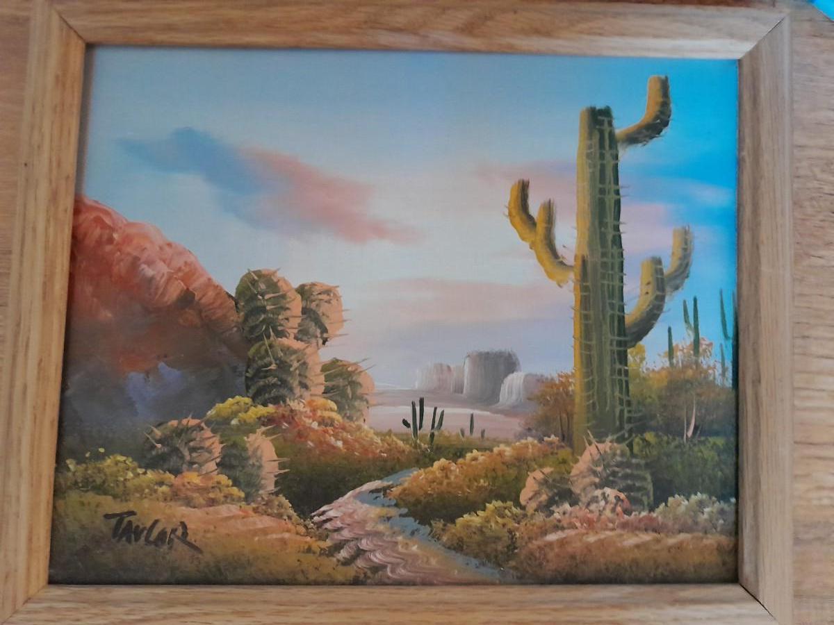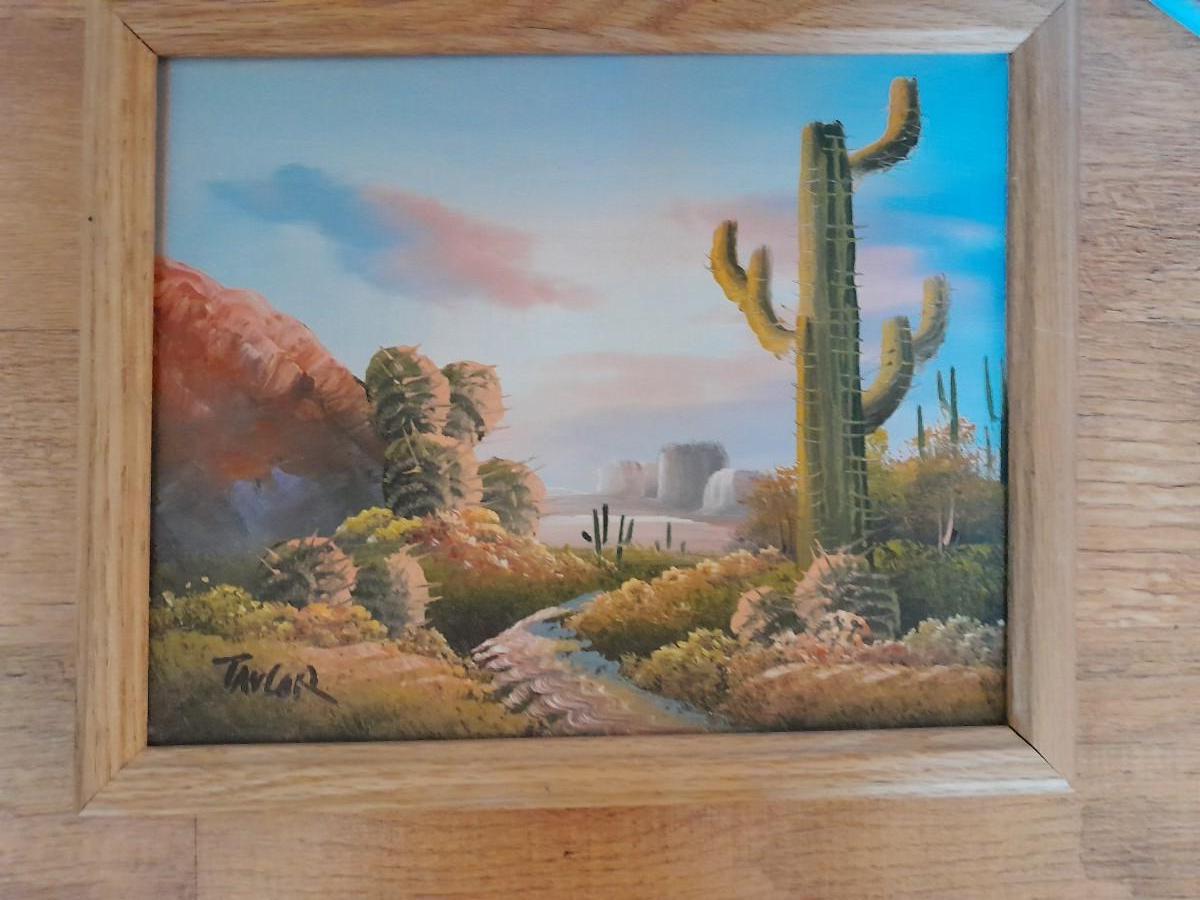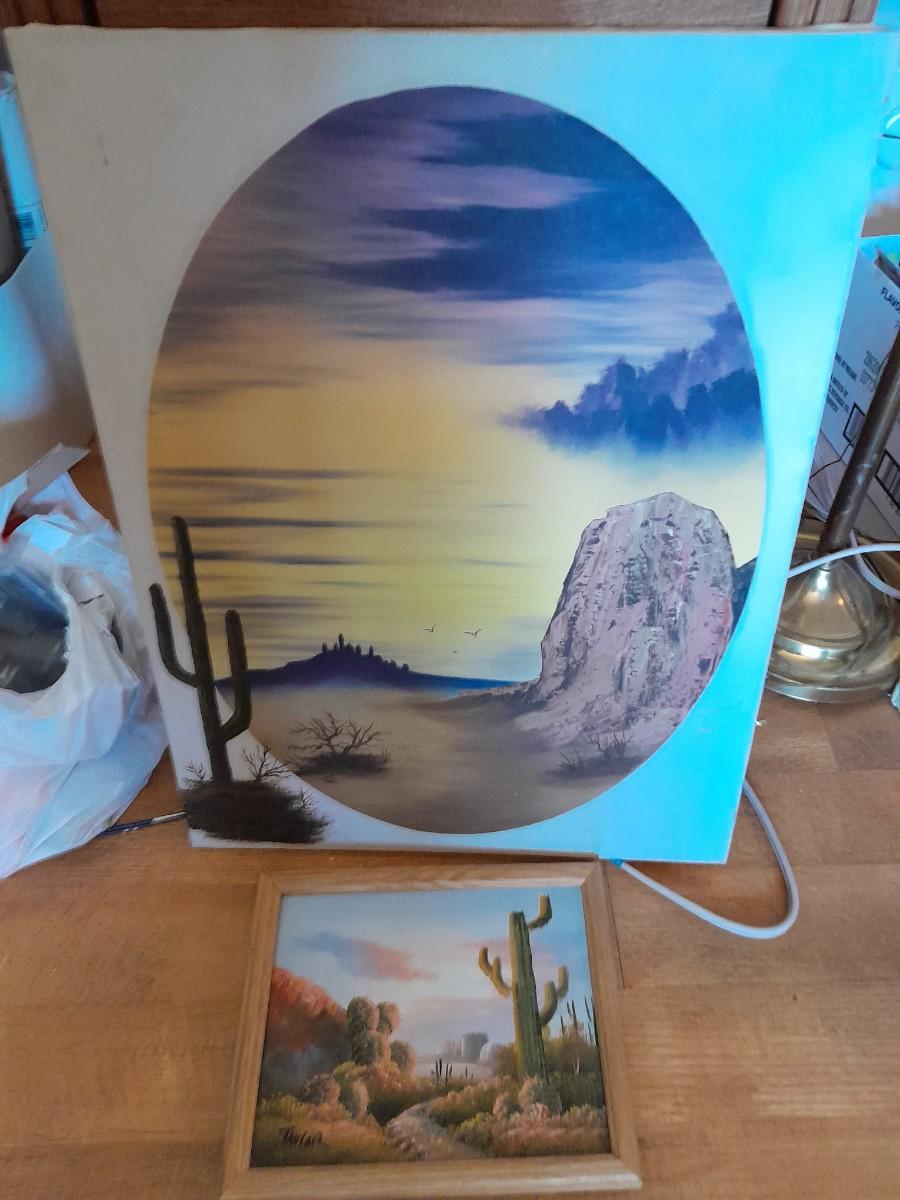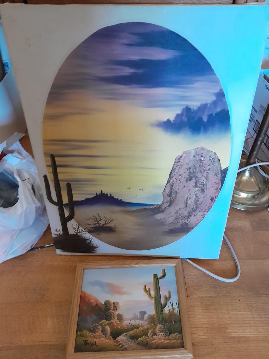 TWO CACTUS ARTWORK CANVAS PICTURES, ONE SIGNED AND NUMBERED BY ARTIST 24" X 18" & 9" X 11"