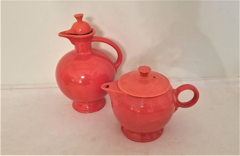 Lot #342  Two Pieces of Vintage Fiesta Ware - Teapot and Water Pitcher