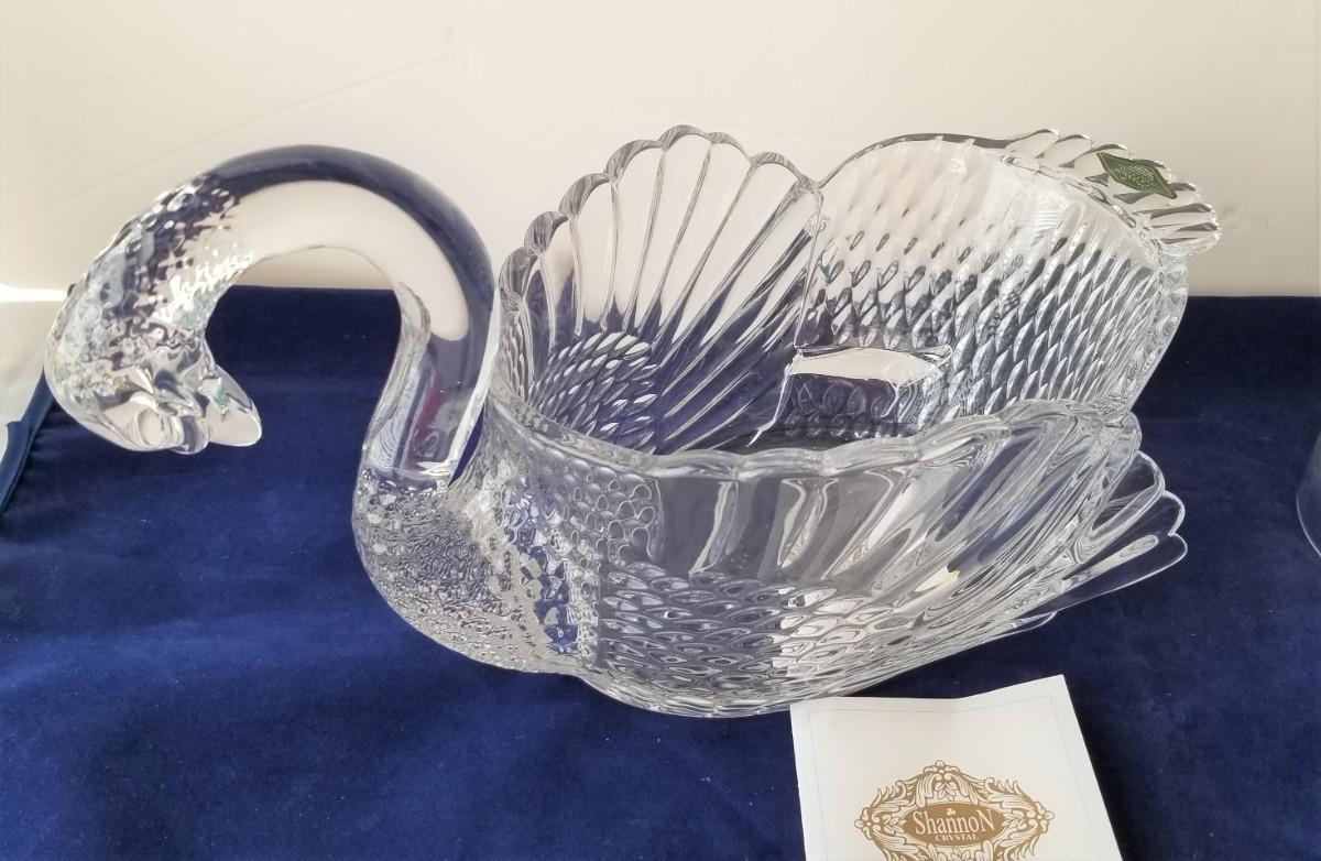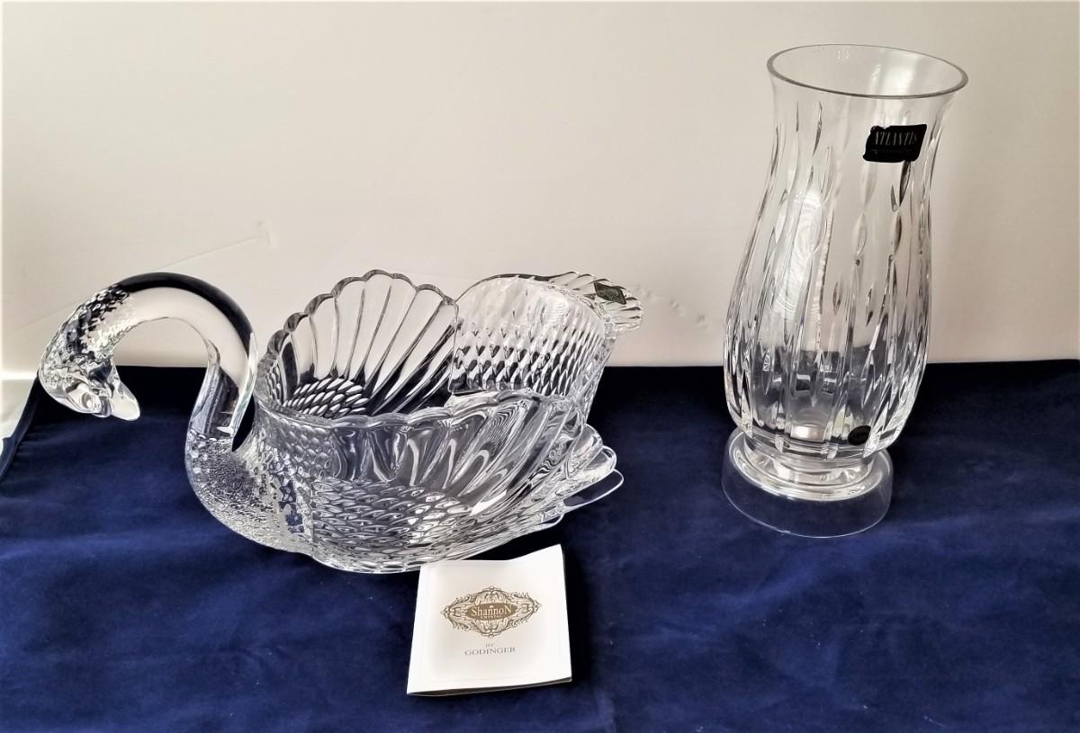 You get both pieces - Shannon Crystal figural Swan Center bowl - 4" tall, 12" long" (has the box) and Atlantis Crystal Candle Lamp - 10: tall. Both in excellent condition.