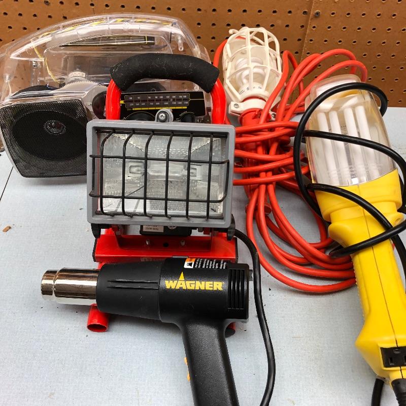 A black light, three utility lights, an Am/FM stereo and a heat gun complete this handy lot. Everything worked when tested.