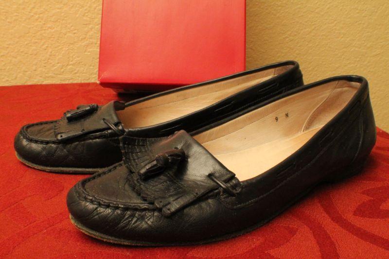 LOT #343: Vintage BALLY Dark Navy "Minnie" Tassel Loafers SIZE 9