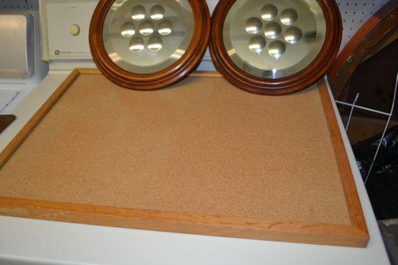 LOT 343 TWO MIRROS WITH WOOD FRAMES AND BULLETIN BOARD