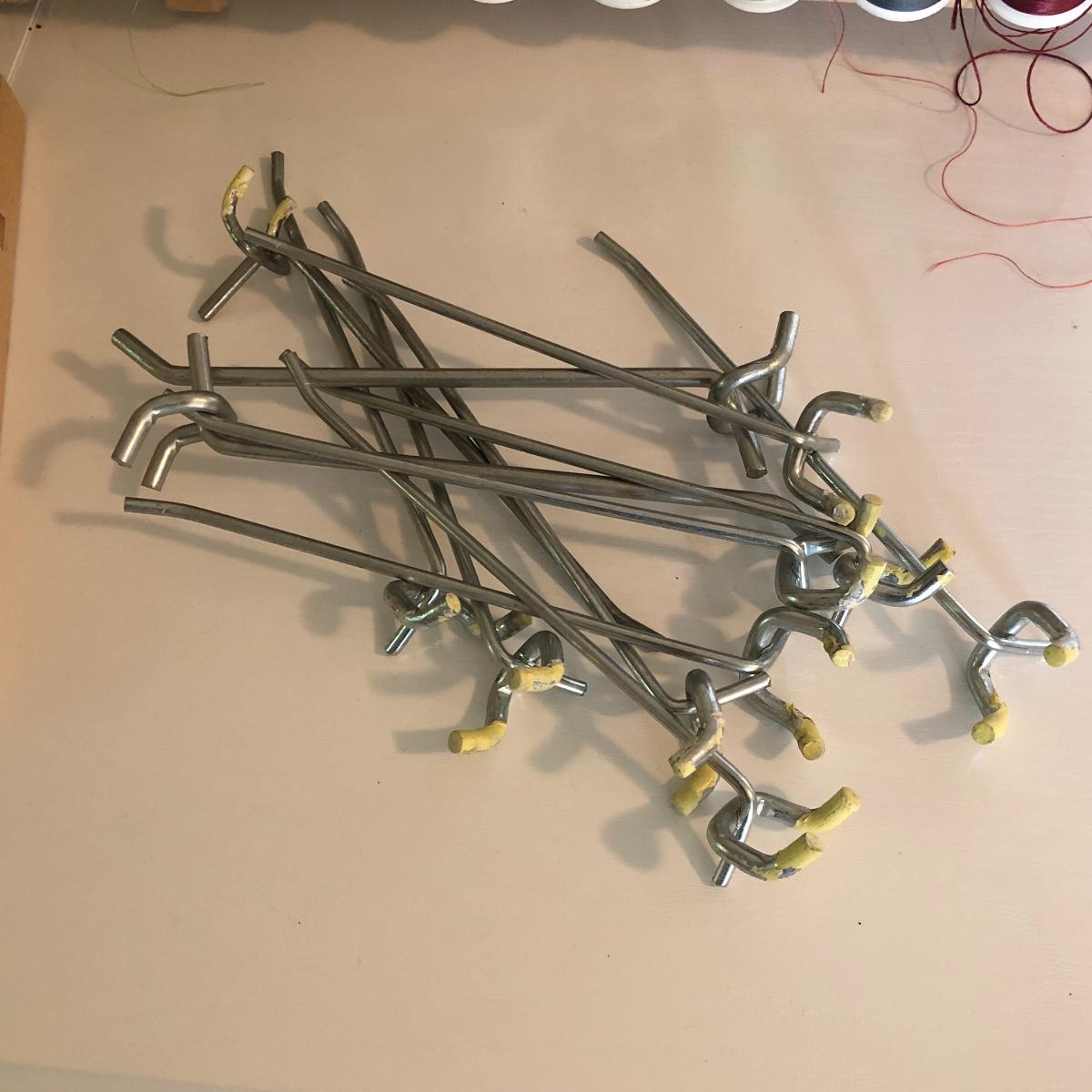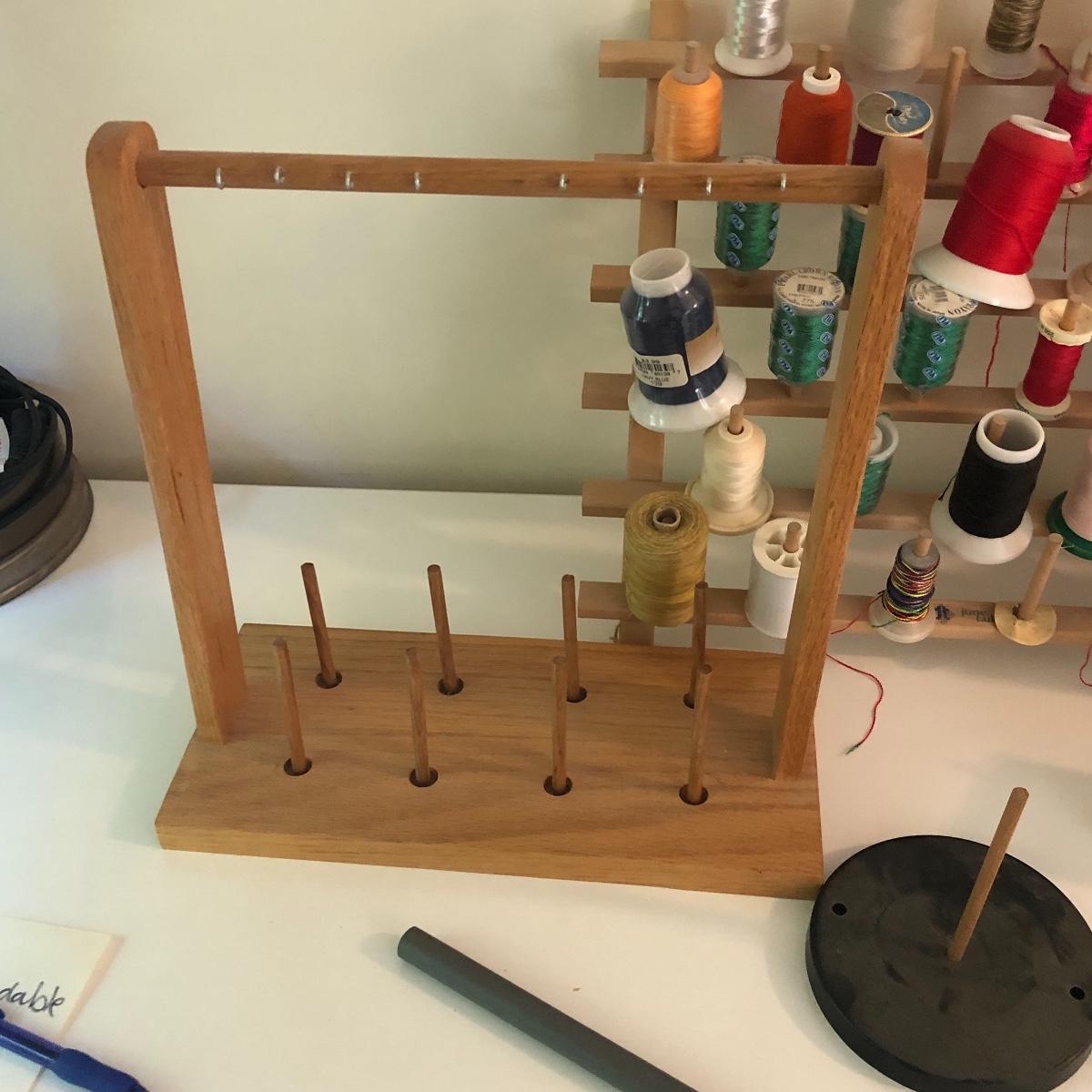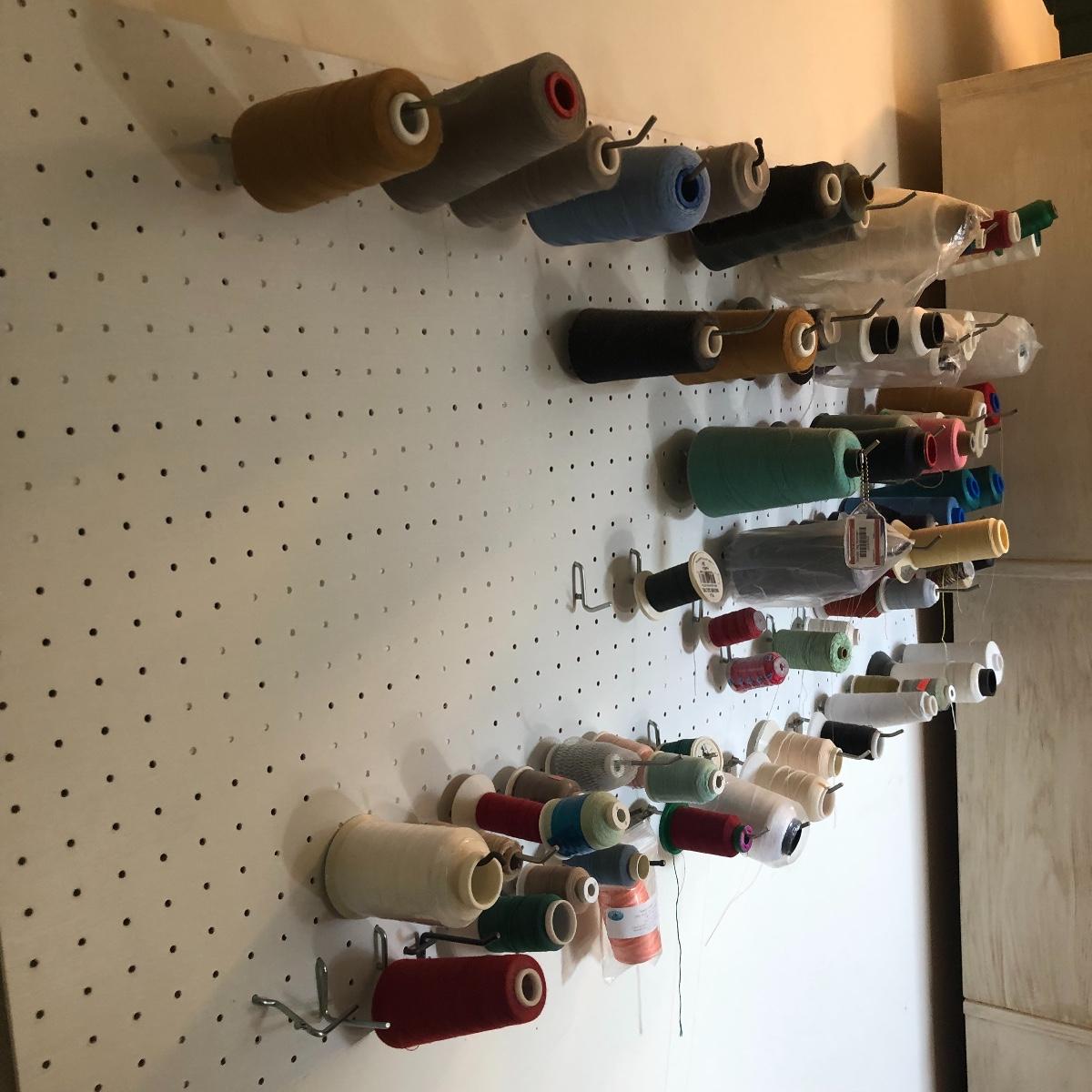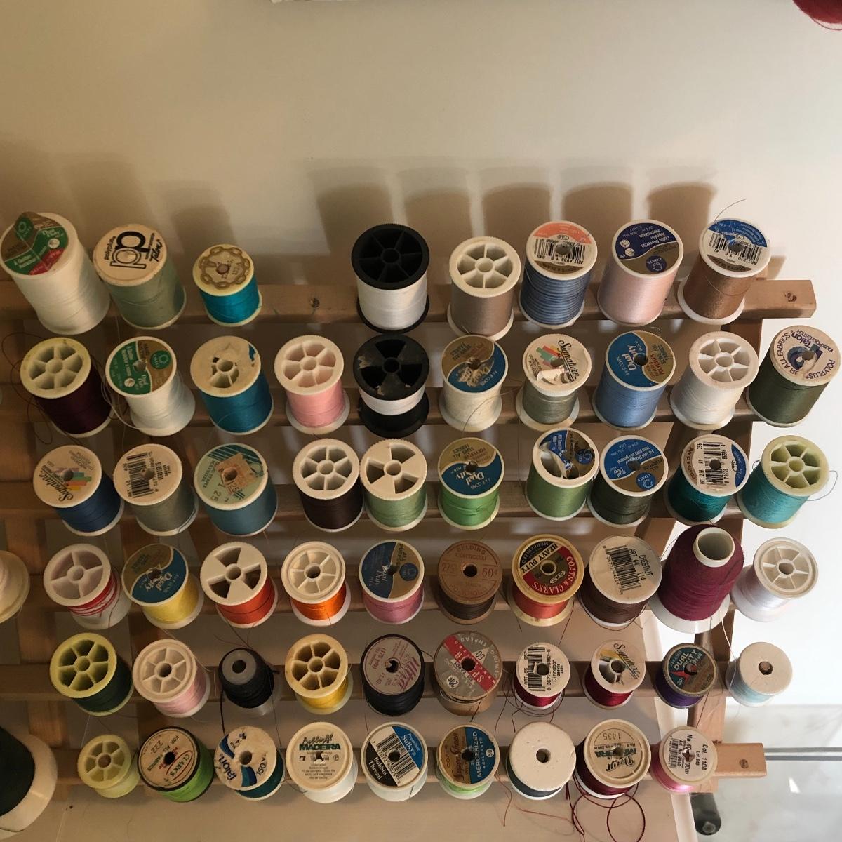 Sew to your heart’s content with this lot! It contains over 160 spools of thread (of varying sizes!), six thread stands and a peg board with pegs to better hang and organize your larger spools of thread. The winner bidder will need to remove the peg board from the wall. It measures 48” x 24”. Local pick up only.