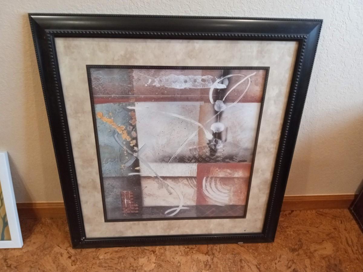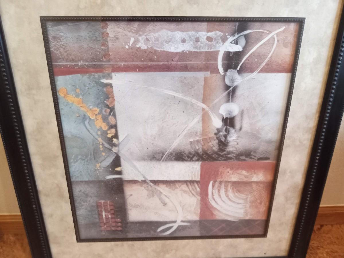 THE ABSTRACT ARTWORK MEASURES 26" X 28" THERE IS SOME DAMAGE TO THE FRAME (SEE PICS)