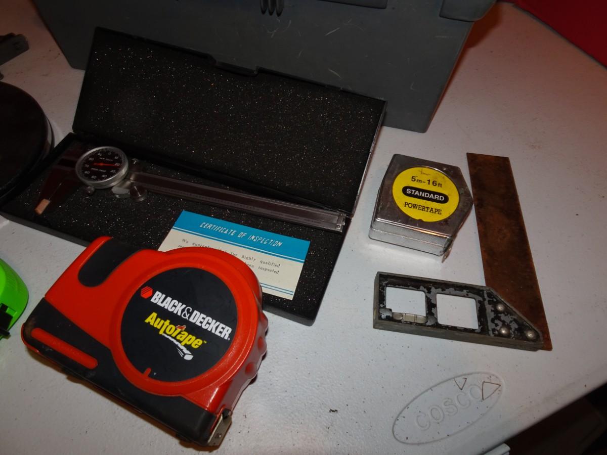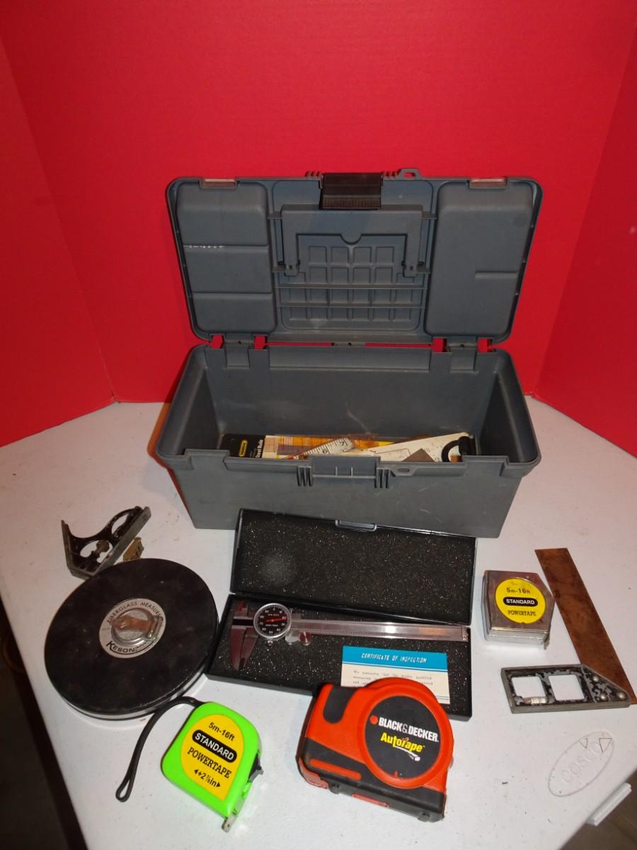 LOT 343. MISC MEASURING TOOLS AND TOOL BOX