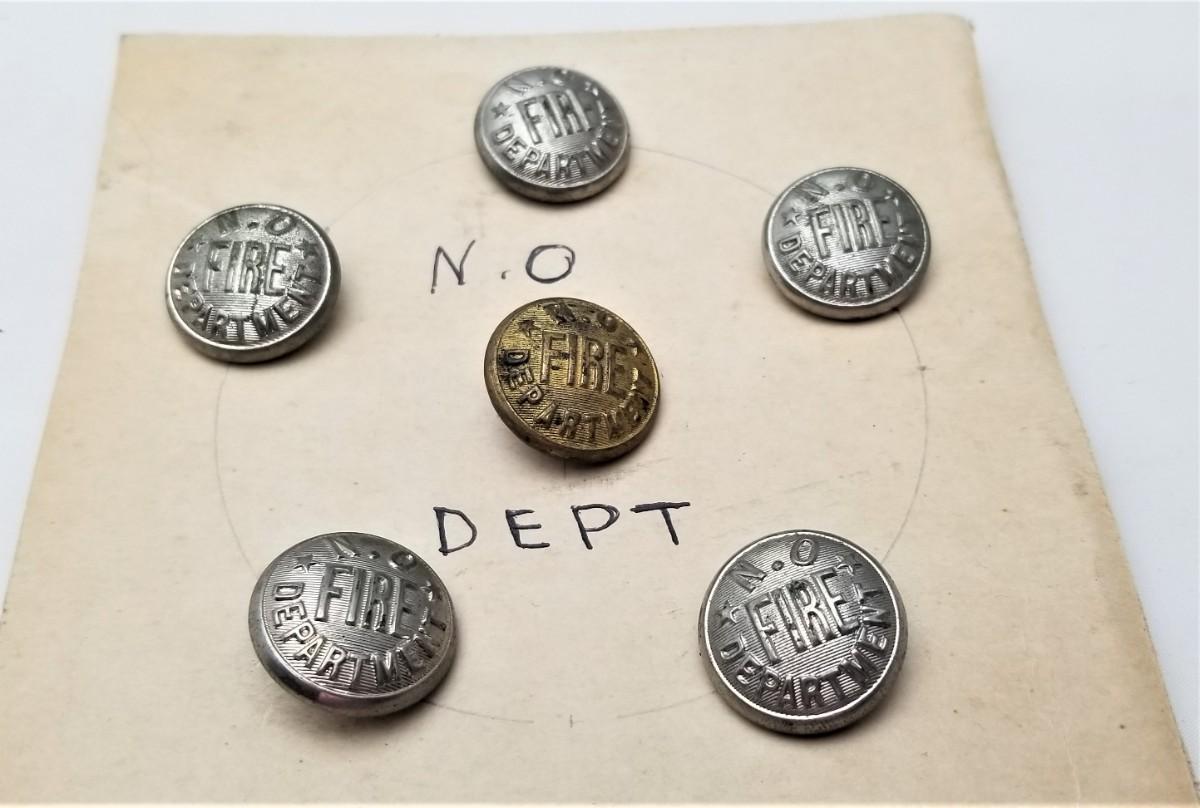 Lot #343  Lot of 6 Antique New Orleans Firemen Buttons on Card