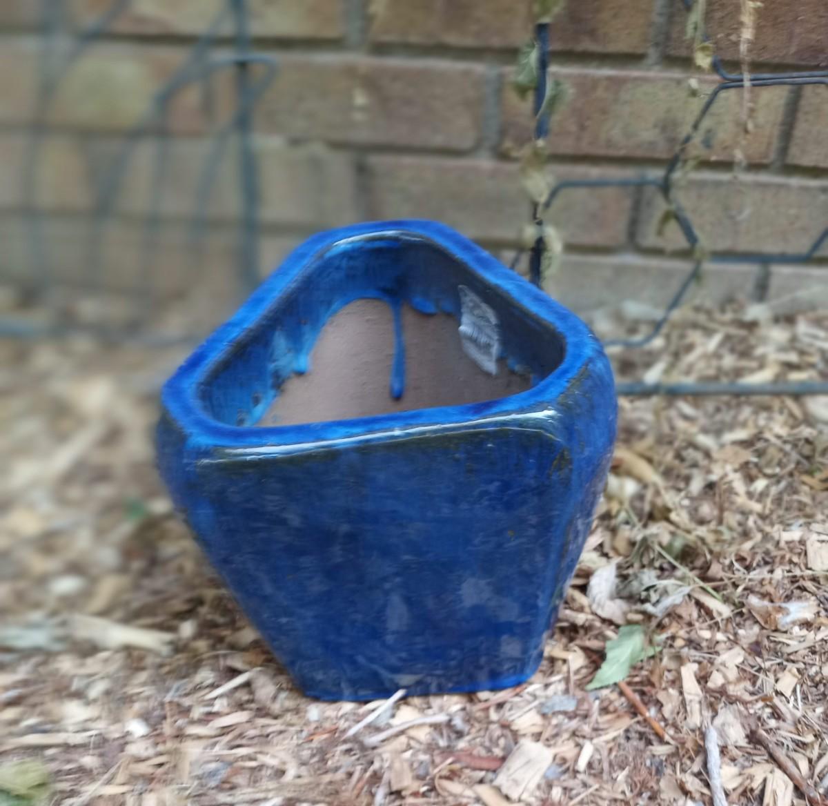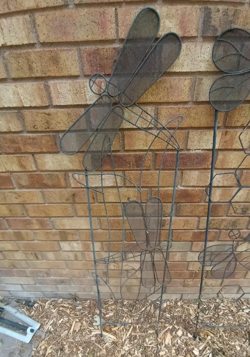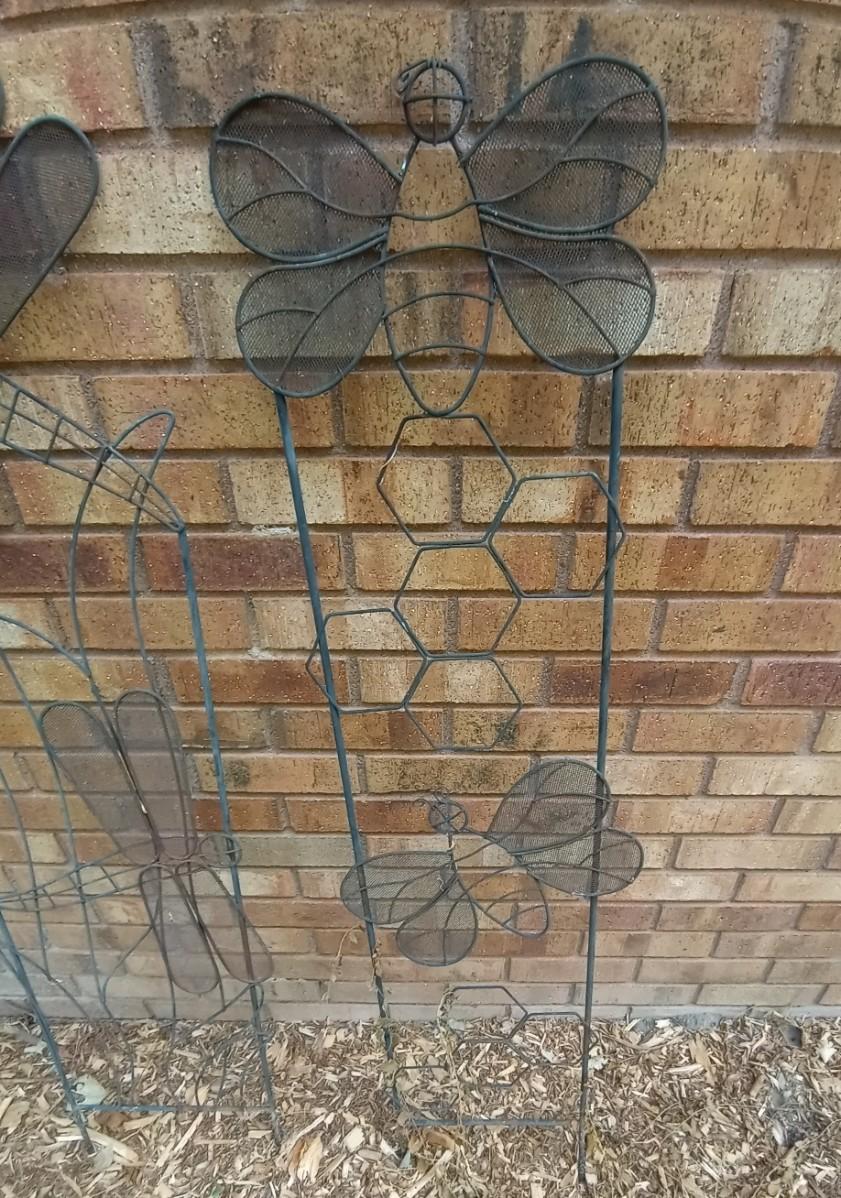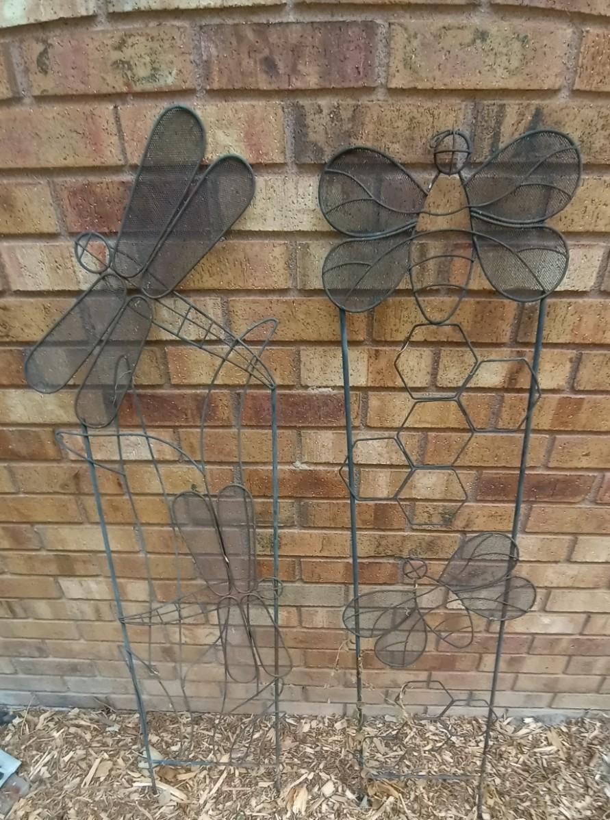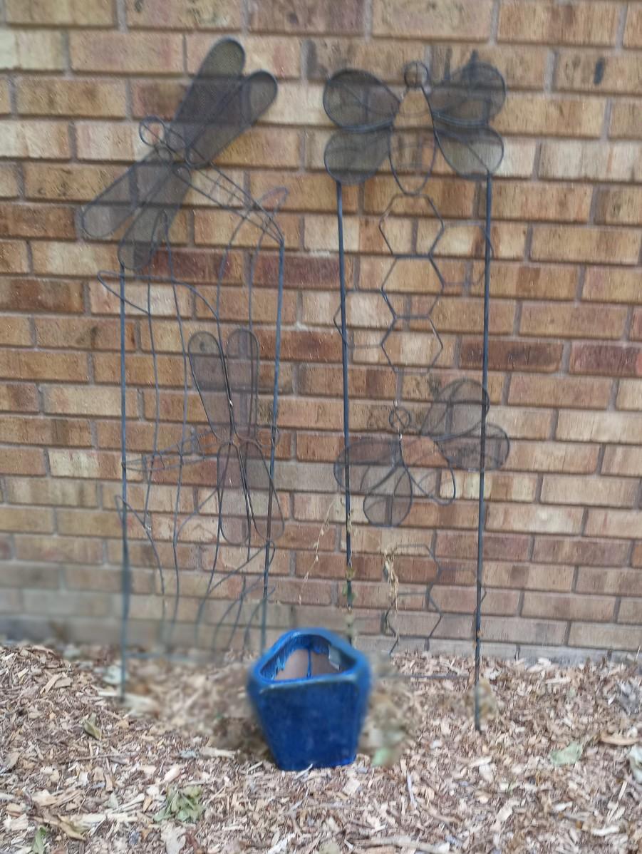 2 METAL WIRE BUTTERFLY PANALS AND CERAMIC BLUE POT