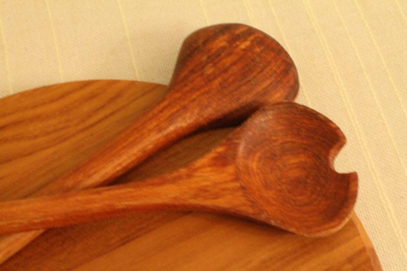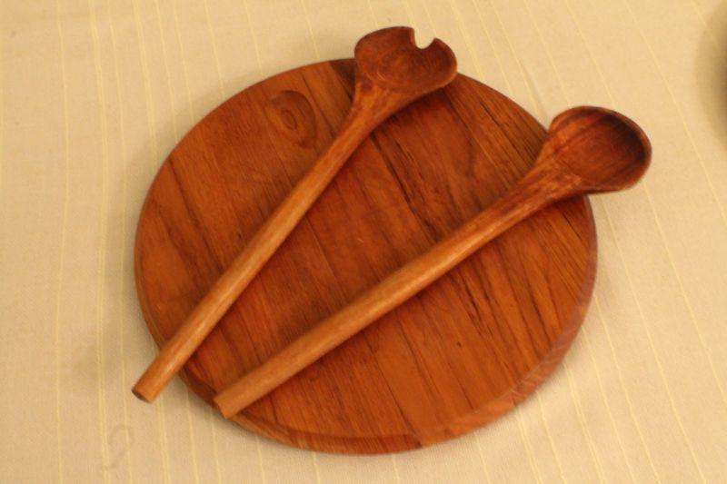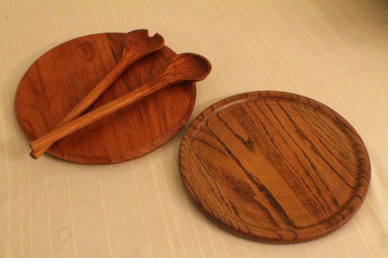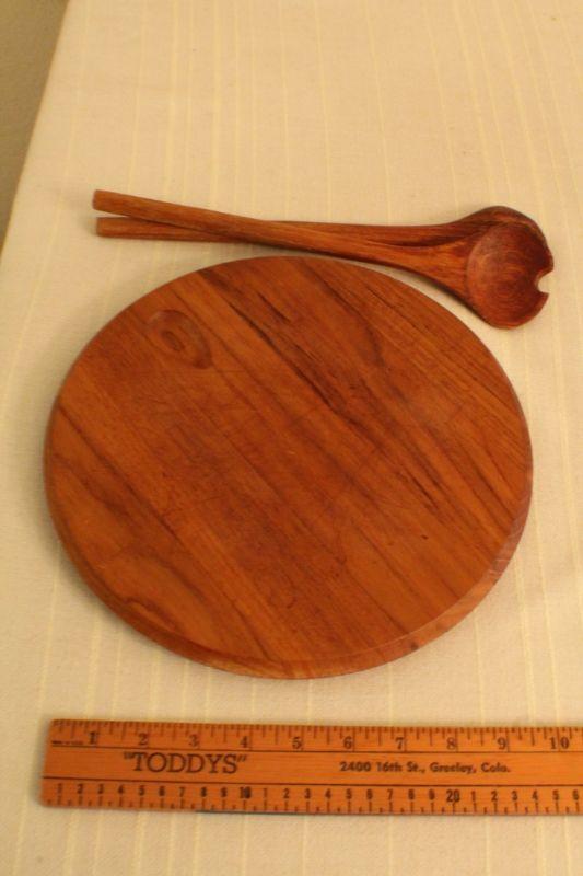 LOT #344: (2) Vintage Wooden Chargers w/ Wooden Salad Spoon and Fork