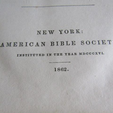 LARGE BIBLE COPYRIGHT 1862 NEW YORK AMERICAN BIBLE SOCIETY iIT'S IN FAIR-POOR CONDITION)