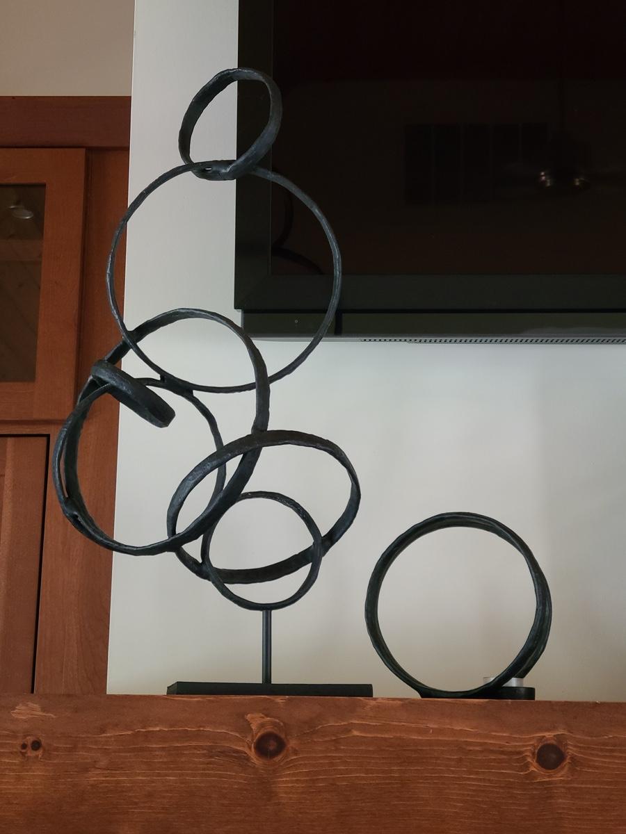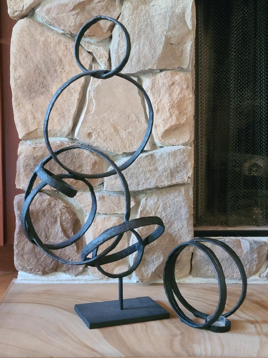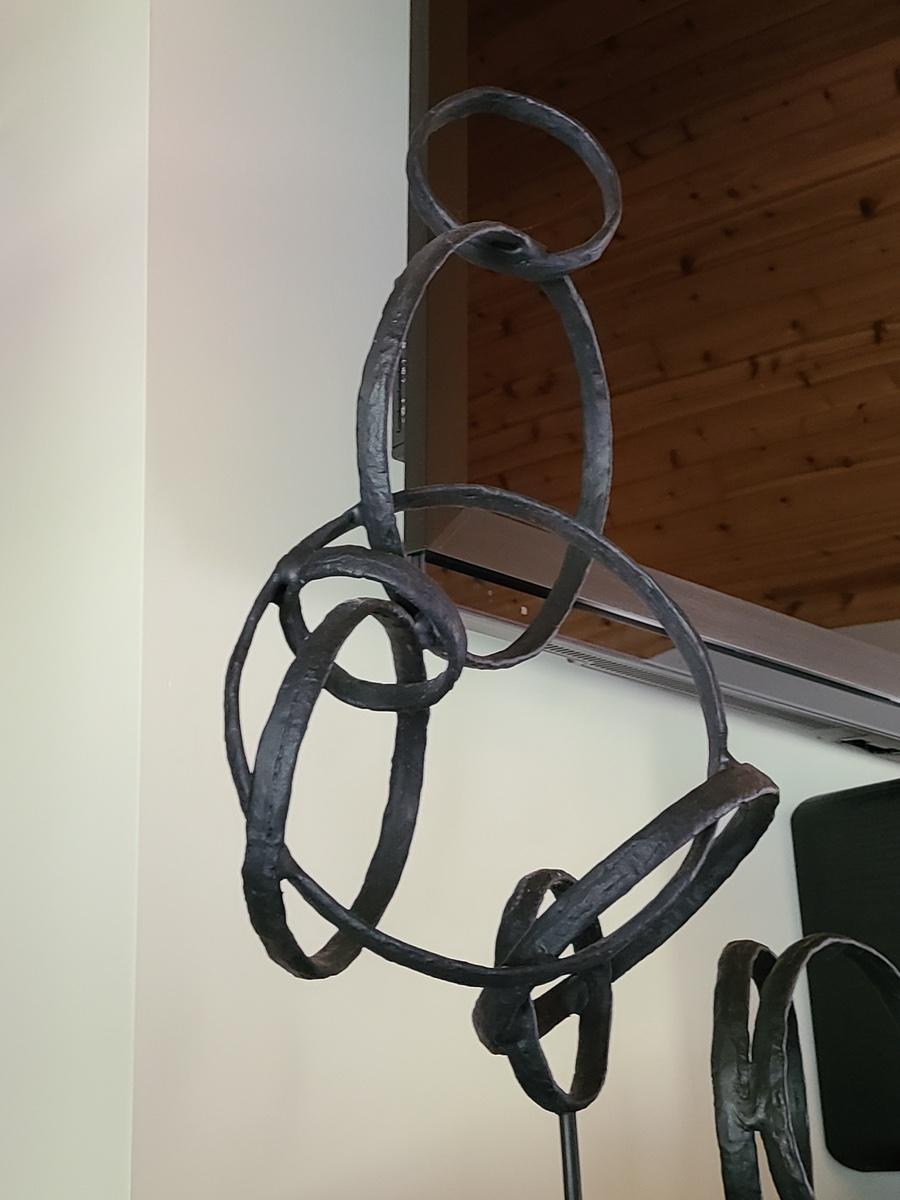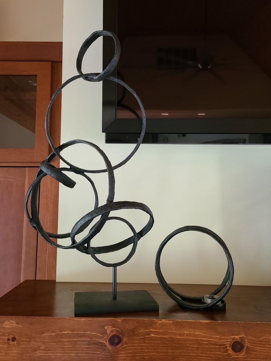 The design of this is gorgeous and it has a fluid moving design depending on how you view it. The smaller stand holds a votive. Perfect home decor! These are heavy and solid metal. Please see all pictures as they are the best representation of the items. The pictures show condition, measurements if taken, and what is included in the lot. Due to the large amount that we photograph and the time frame, we are not always able to take measurements. All items unless noted, are pre-owned and have been used. If you purchased furniture, you must bring help. We do not allow one person to carry large furniture out on their own. Bring help, tools and a truck for the safety of our clients homes, and your personal safety. Company policy. Thank you.