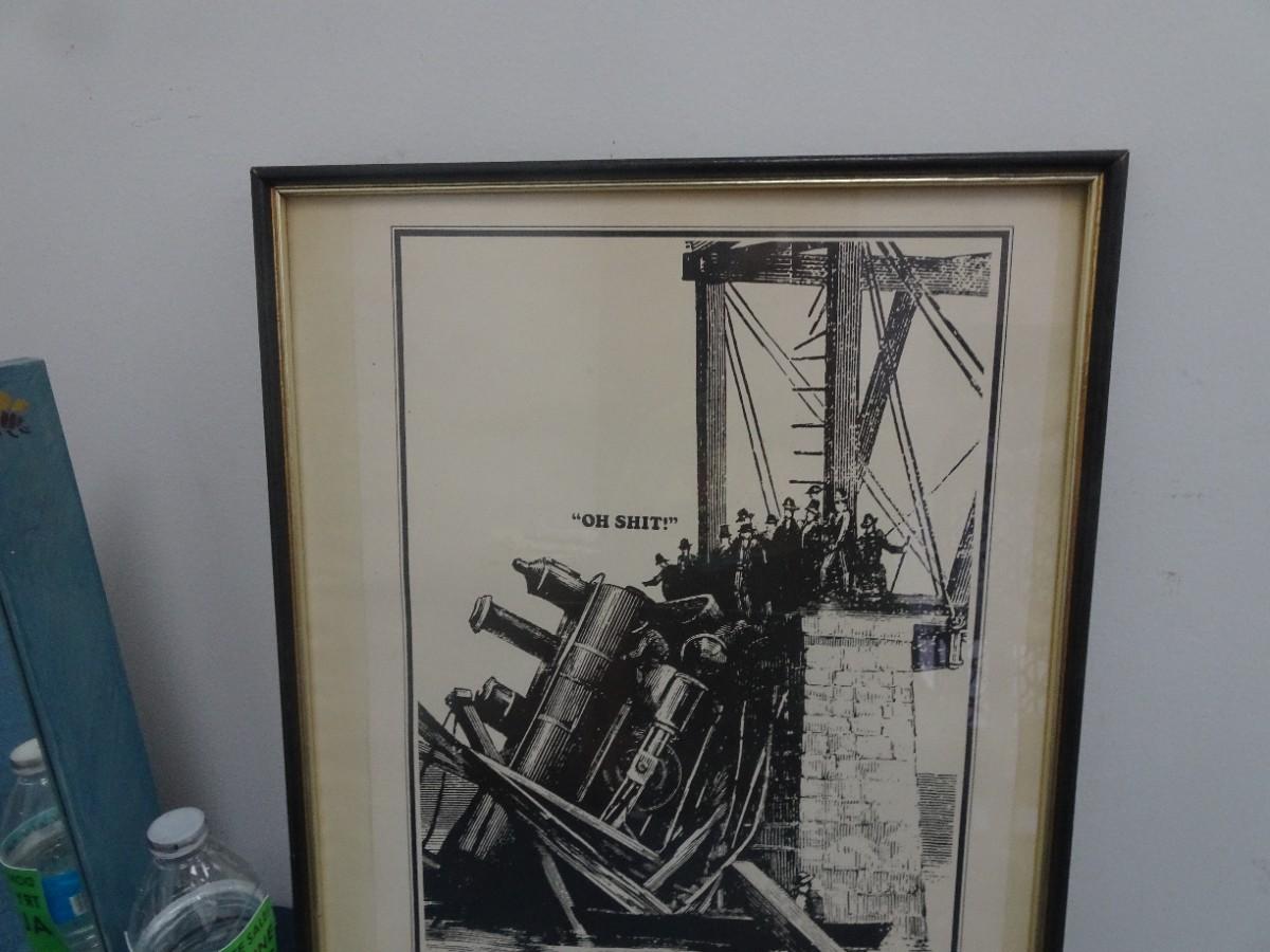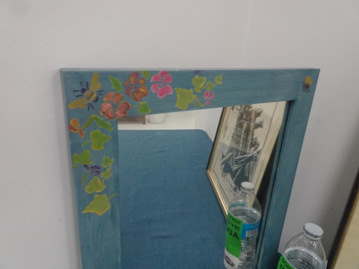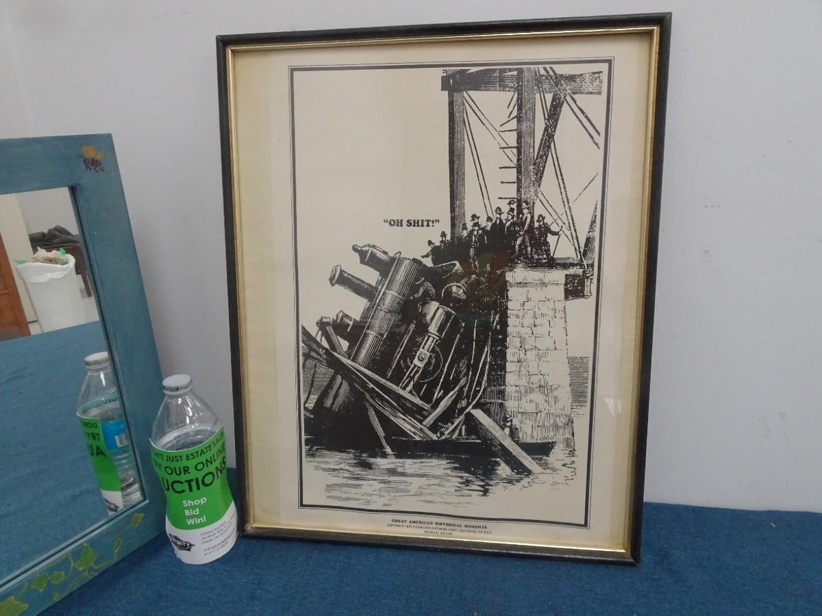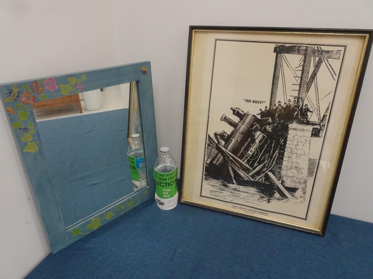 LOT 344. DECORATIVE MIRROR AND FRAMED POSTER