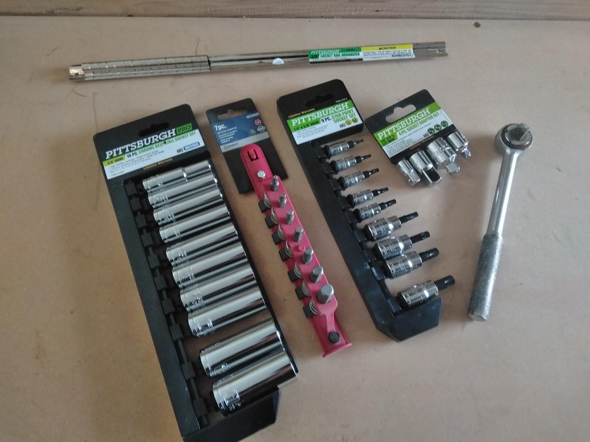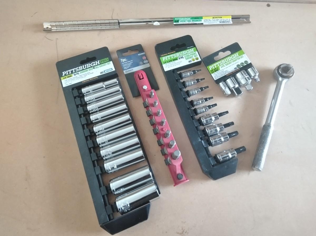 WIDE VARIETY OF SOCKETS AND A RATCHET