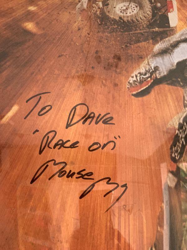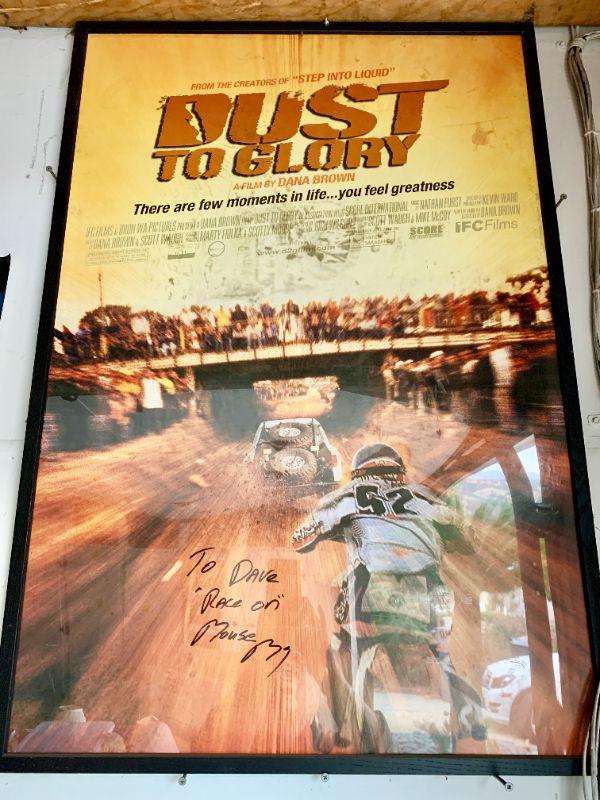 Framed movie poster Dust to Glory Signed by someone named Mouse