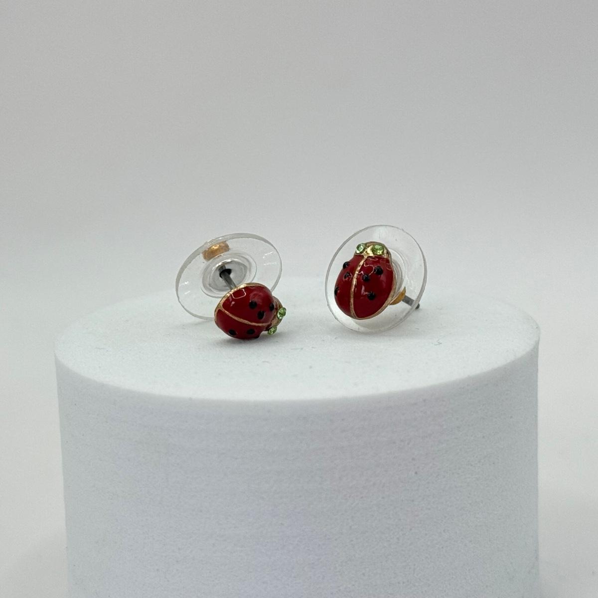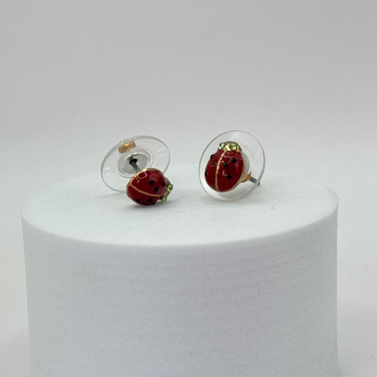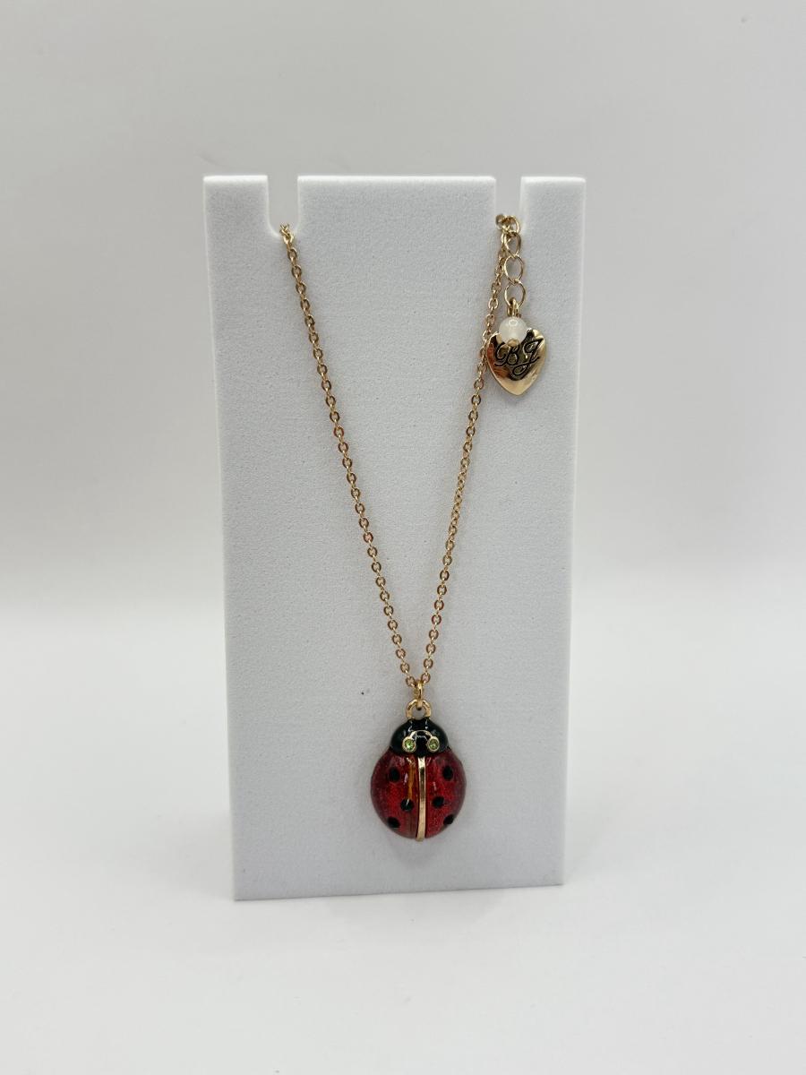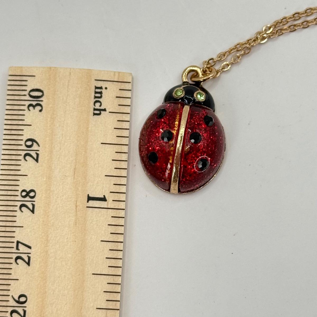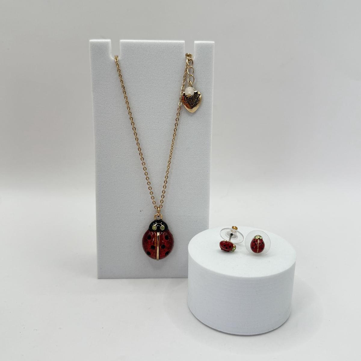 LOT 344J: 19” Betsey Johnson Ladybug Pendant Necklace w/ Matching Pierced Earrings
