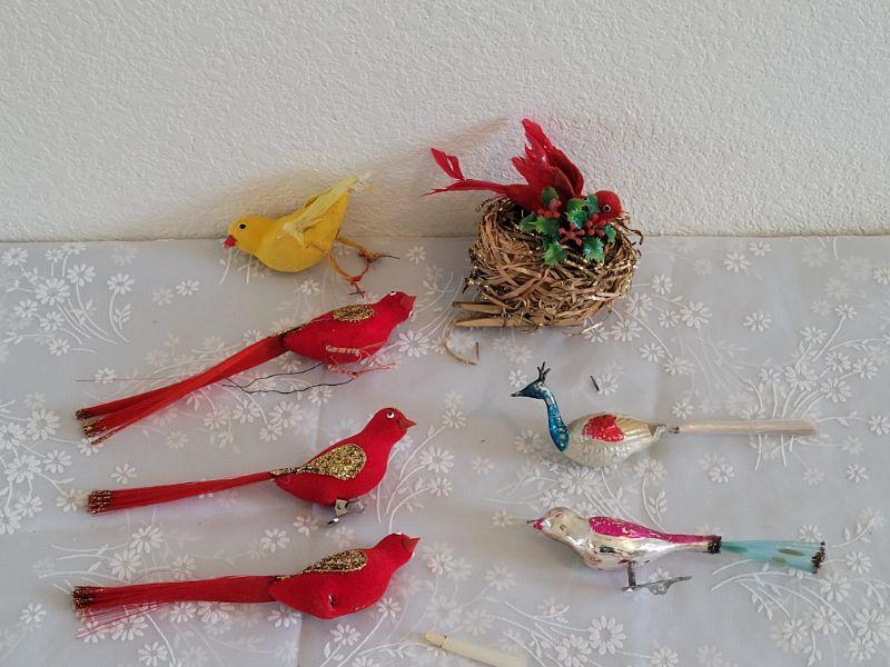 Lot 345: Vintage Bird Ornaments (many missing clips)