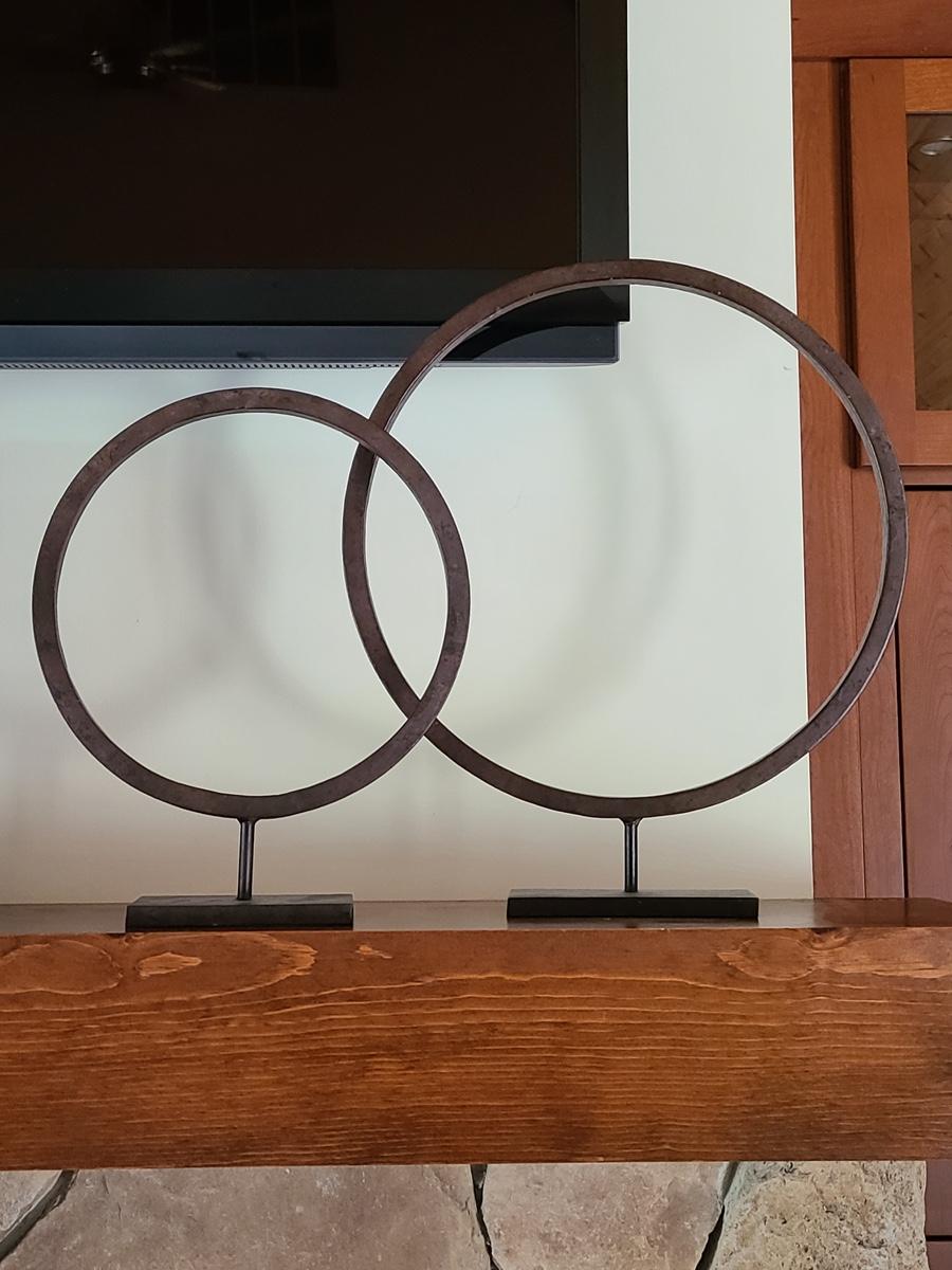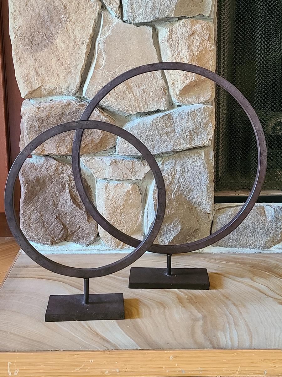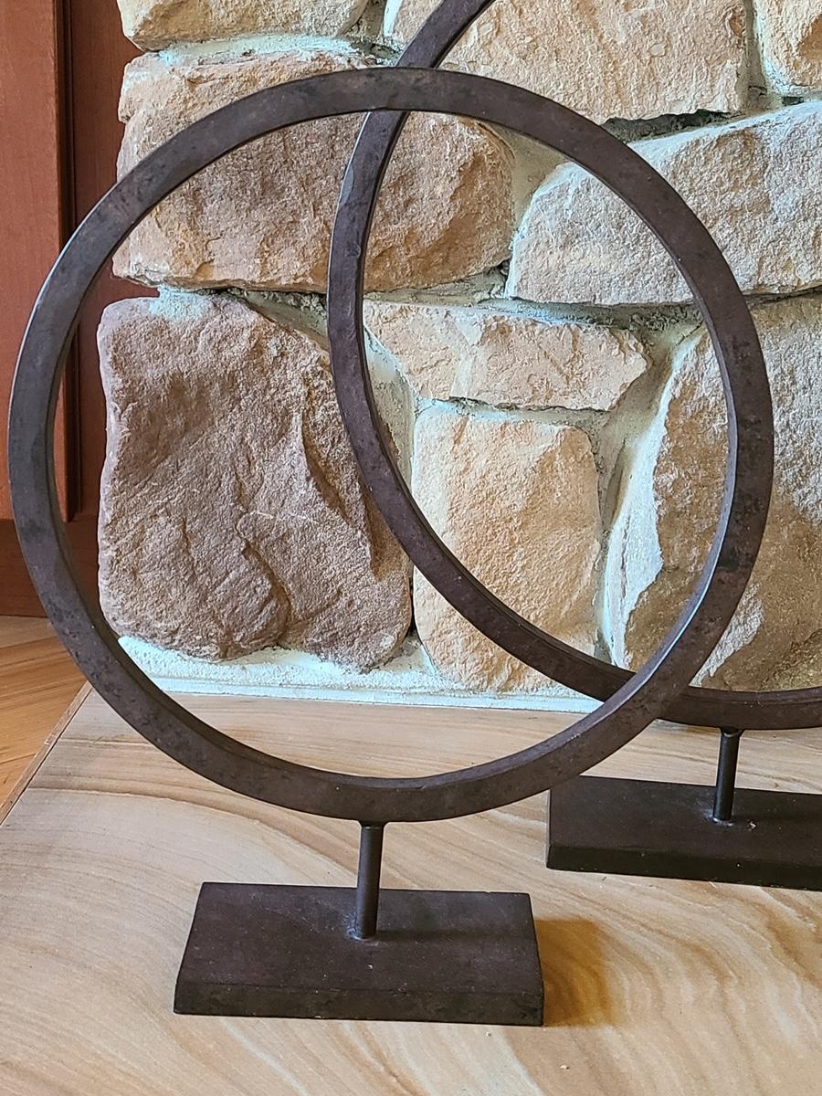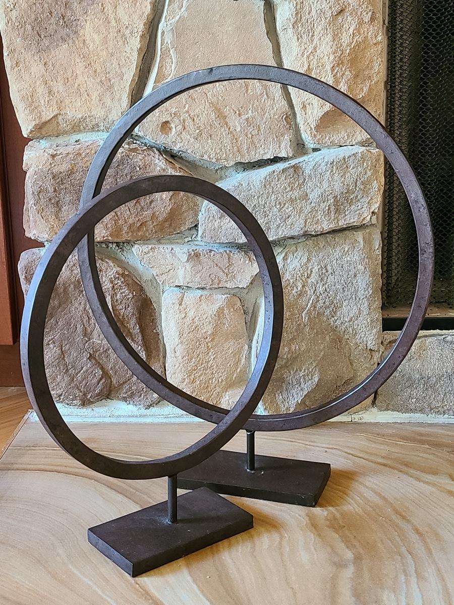 Lot 345: Crate & Barrel Heavy Metal Circlet Stands (Abstract Art)