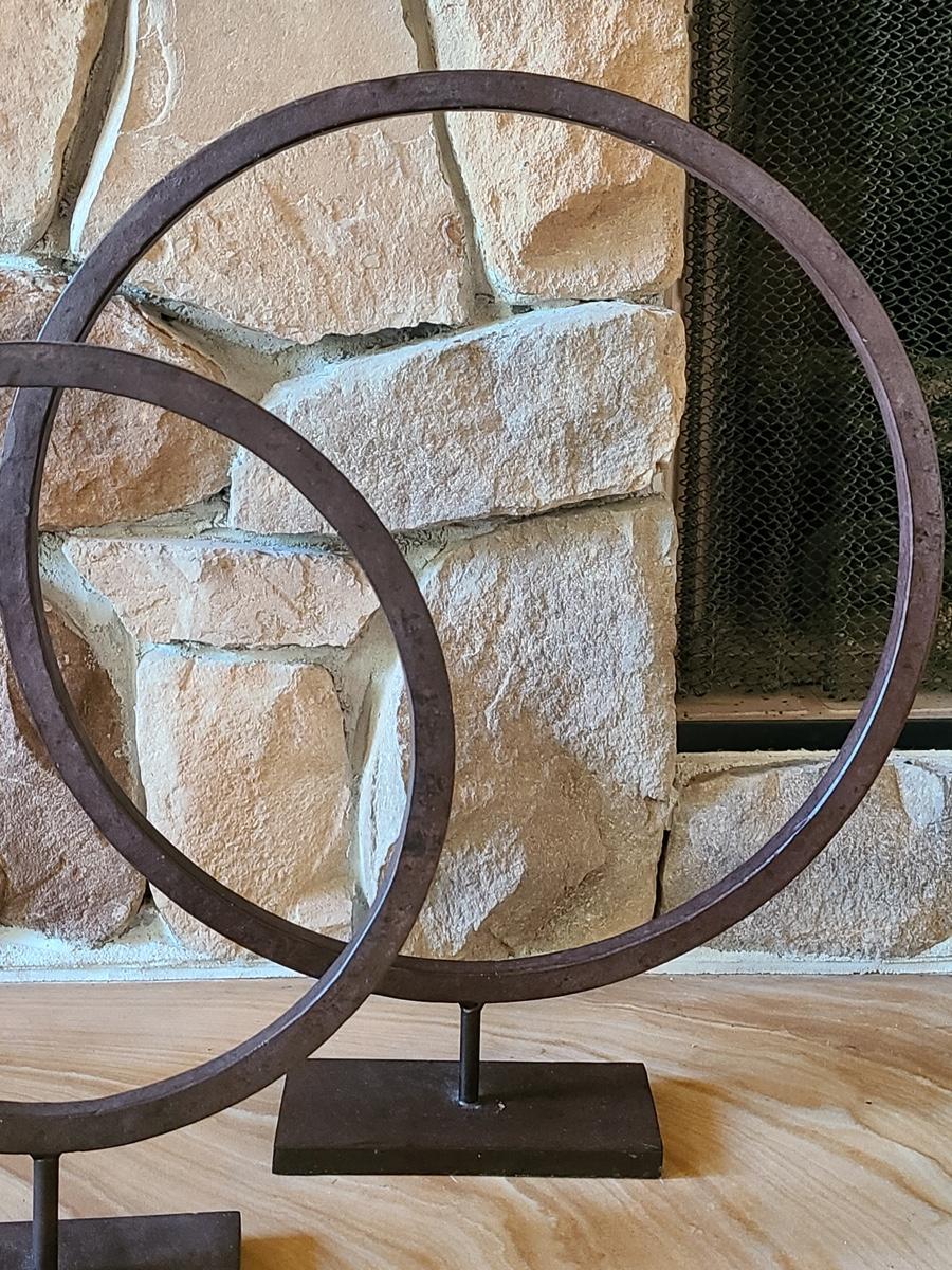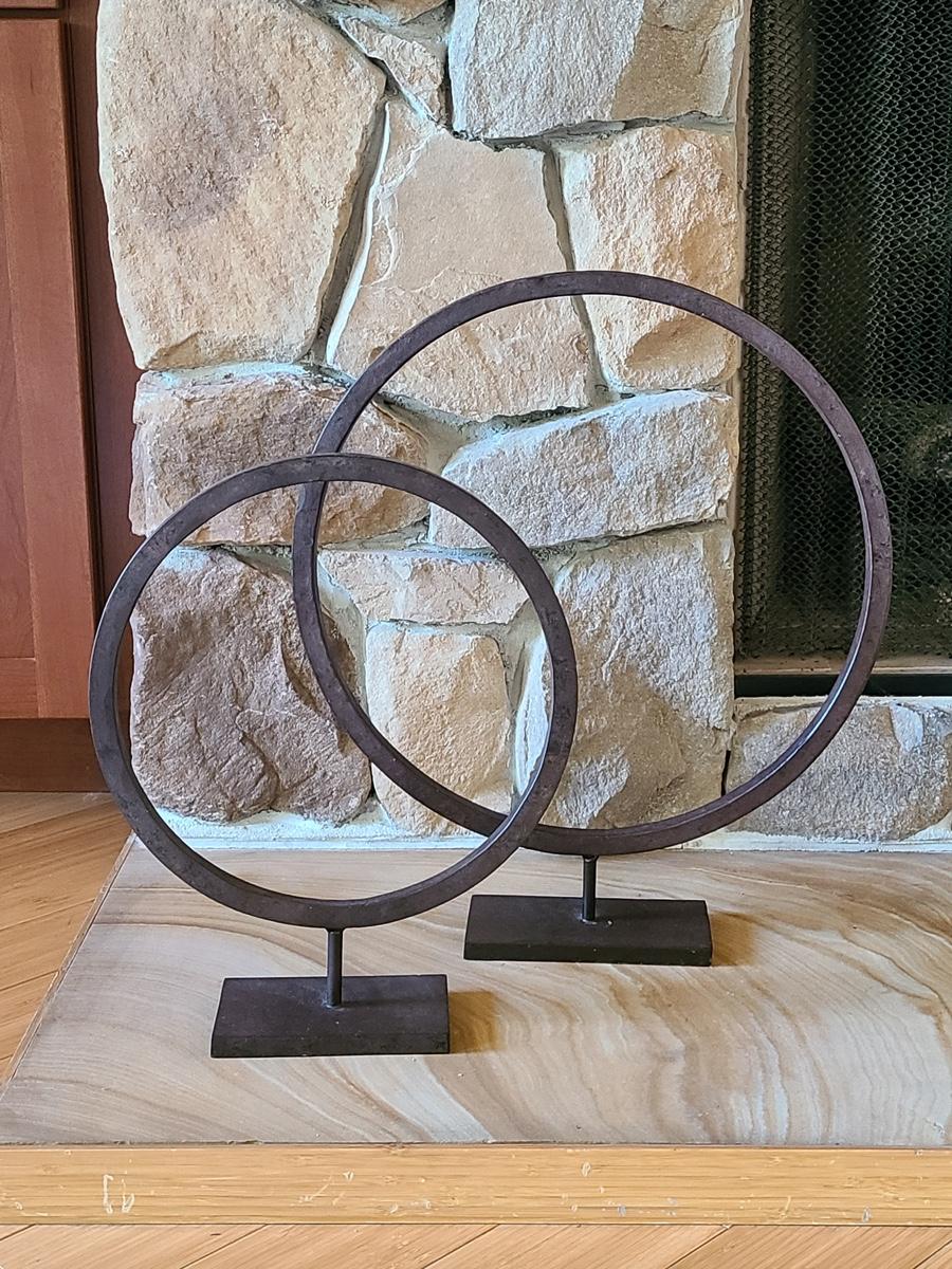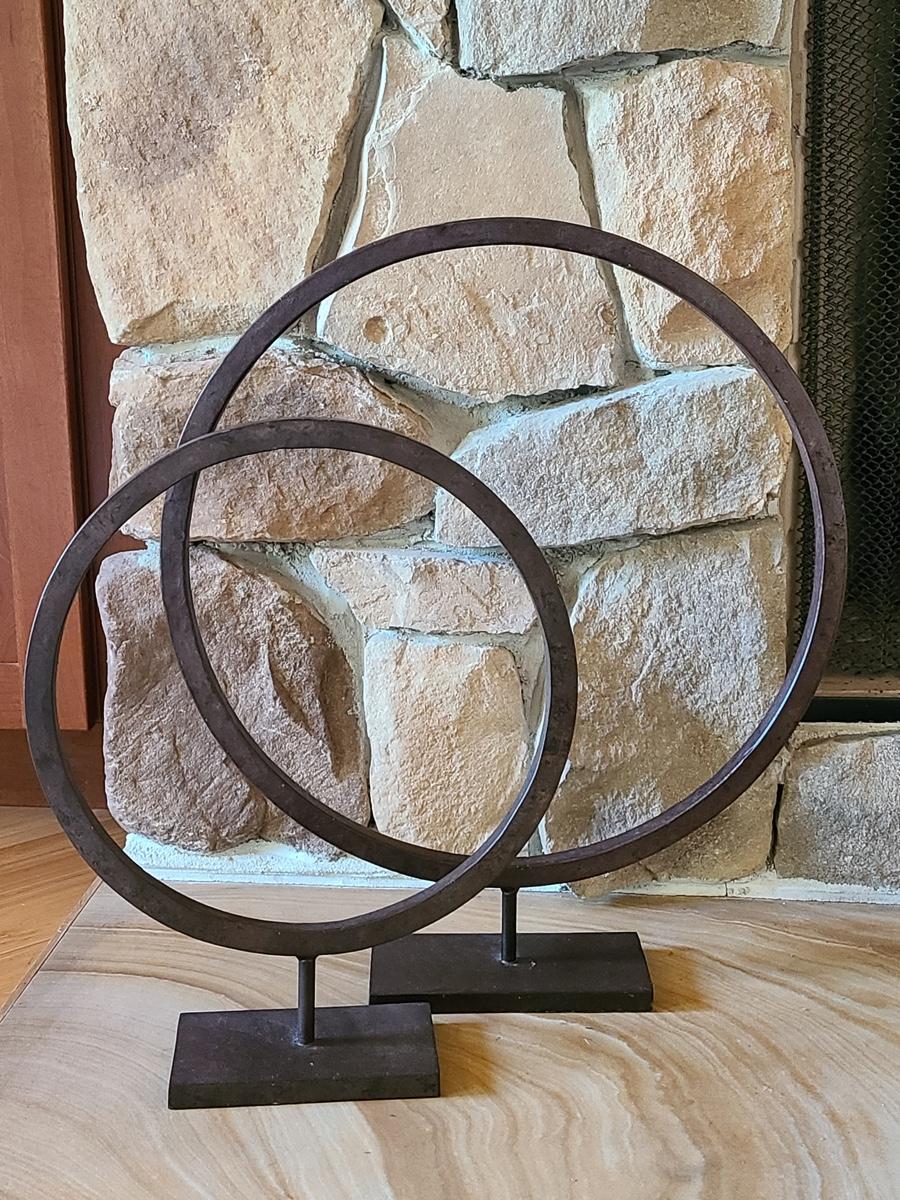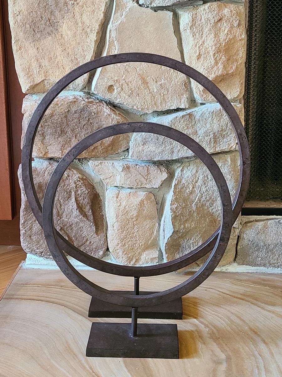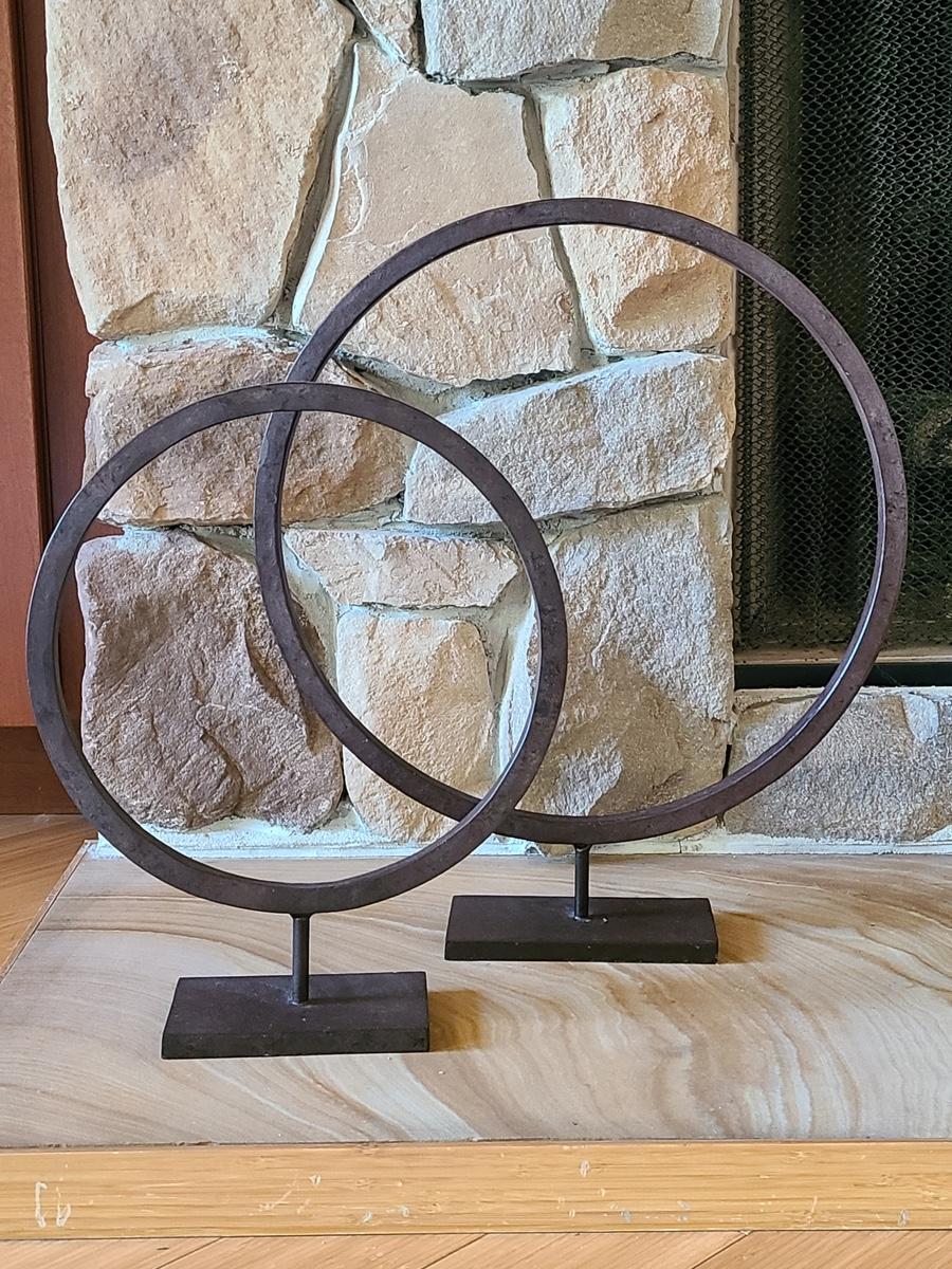 Lot 345: Crate & Barrel Heavy Metal Circlet Stands (Abstract Art)