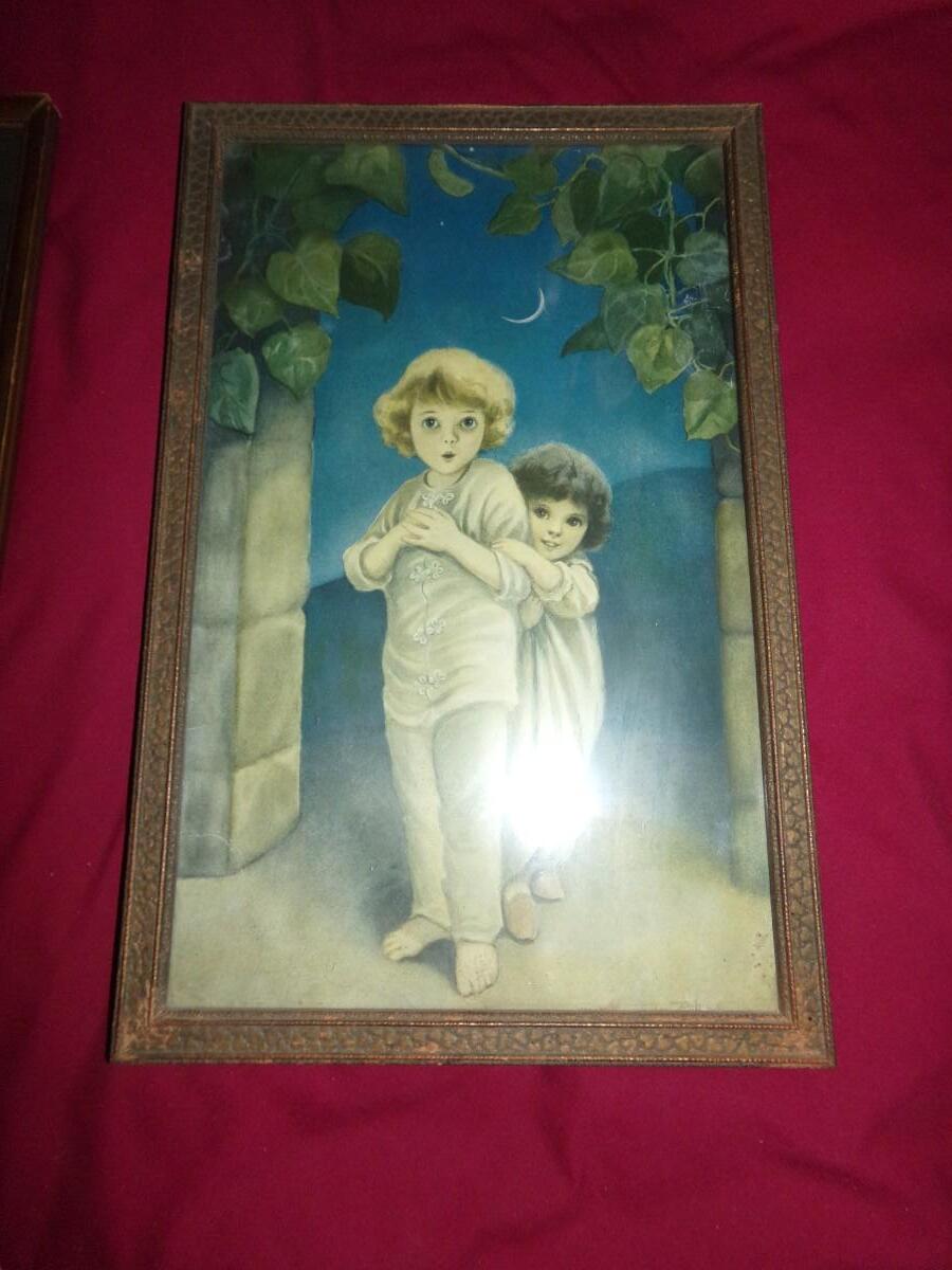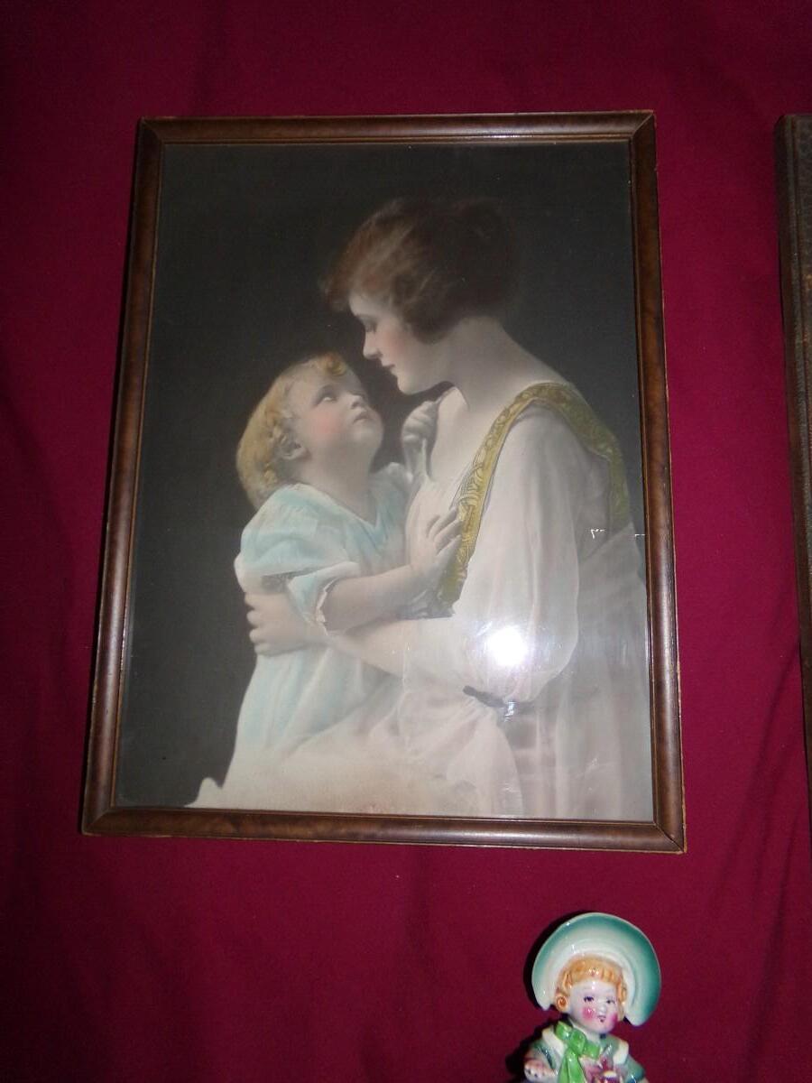 VINTAGE LEFTON FIGURINES. THESE ARE RARE AND BEAUTIFUL. MOTHER WITH CHILD FRAMED PICTURE. FRAMED PICTURE OF 2 CHILDREN.