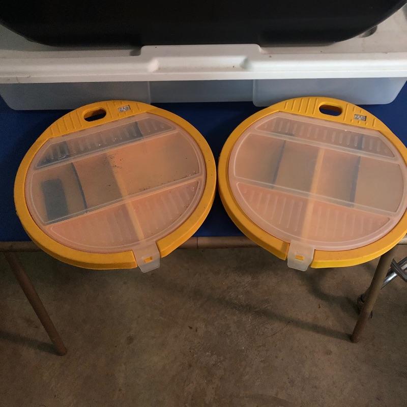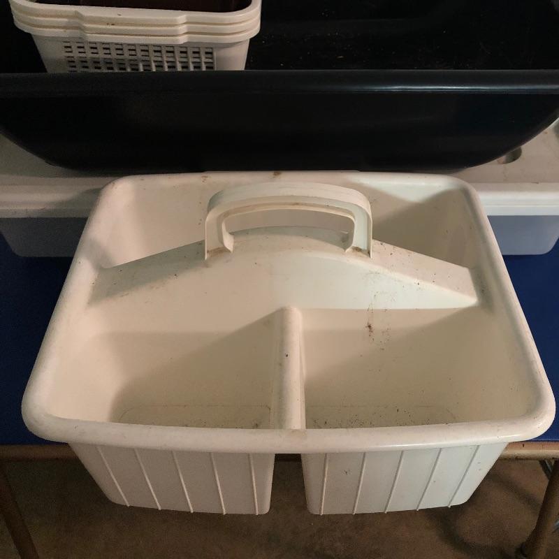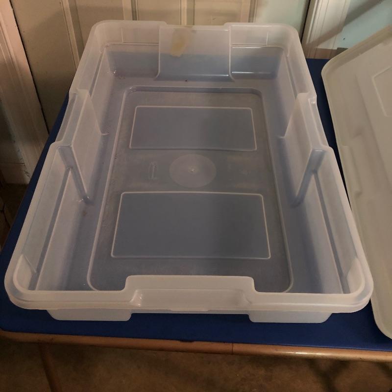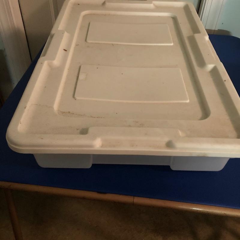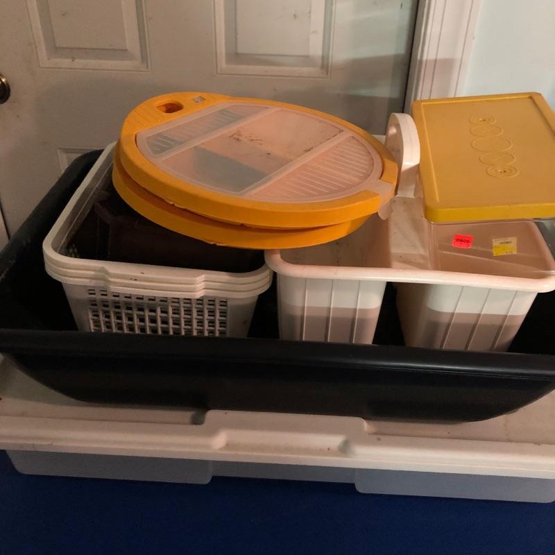 Nice array of various sizes of storage bins. The largest measures 20" x 30" x 6". Local pickup only.