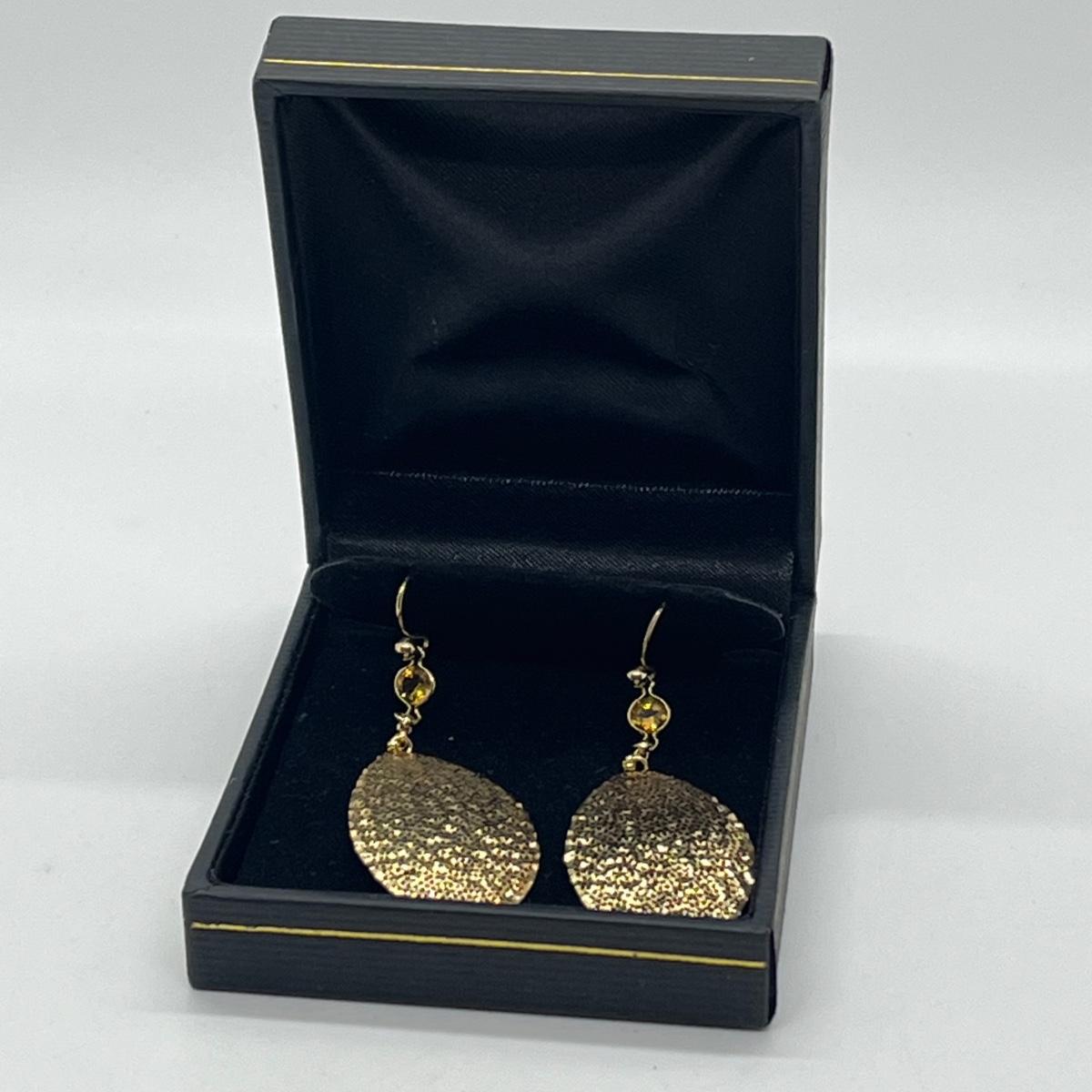 Lot 355J: Citrine and Gold Filigree Earrings-14K-585-3.4 gtw