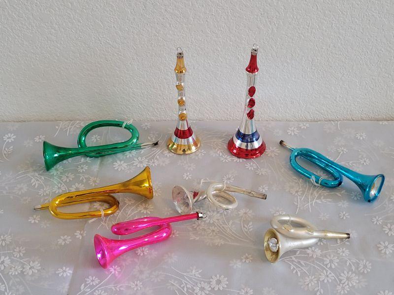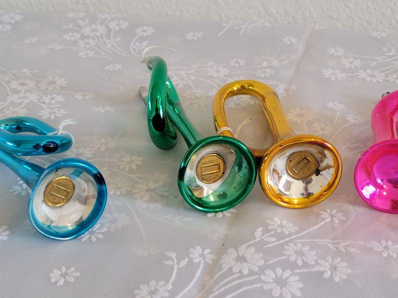 Lot 346: Vintage West Germany Glass Musical Horns Ornaments
