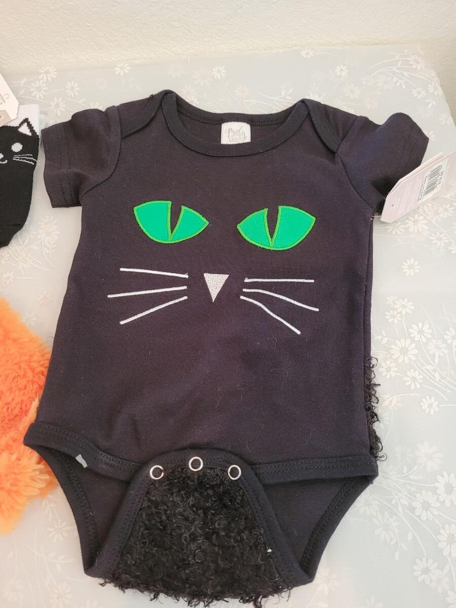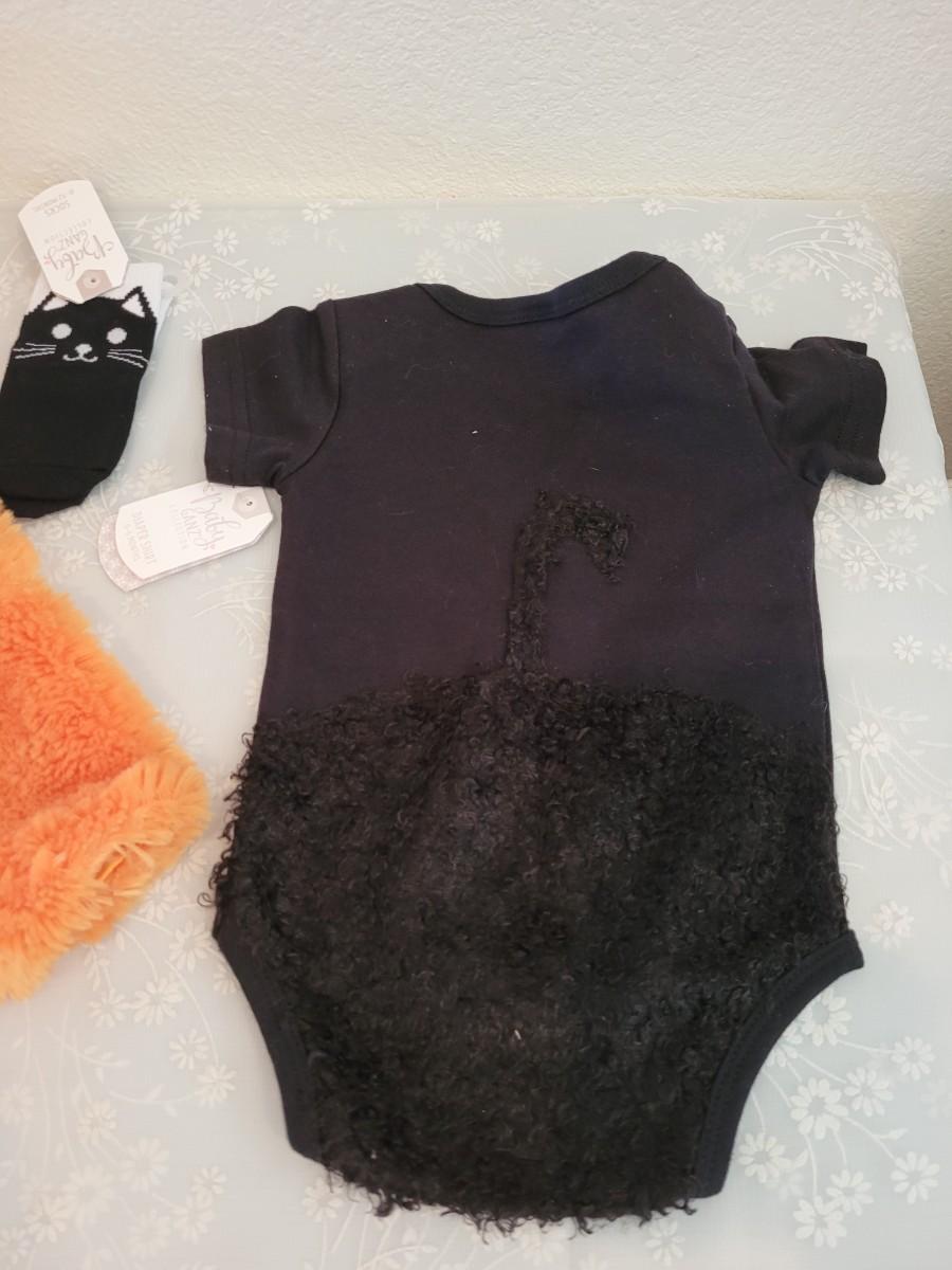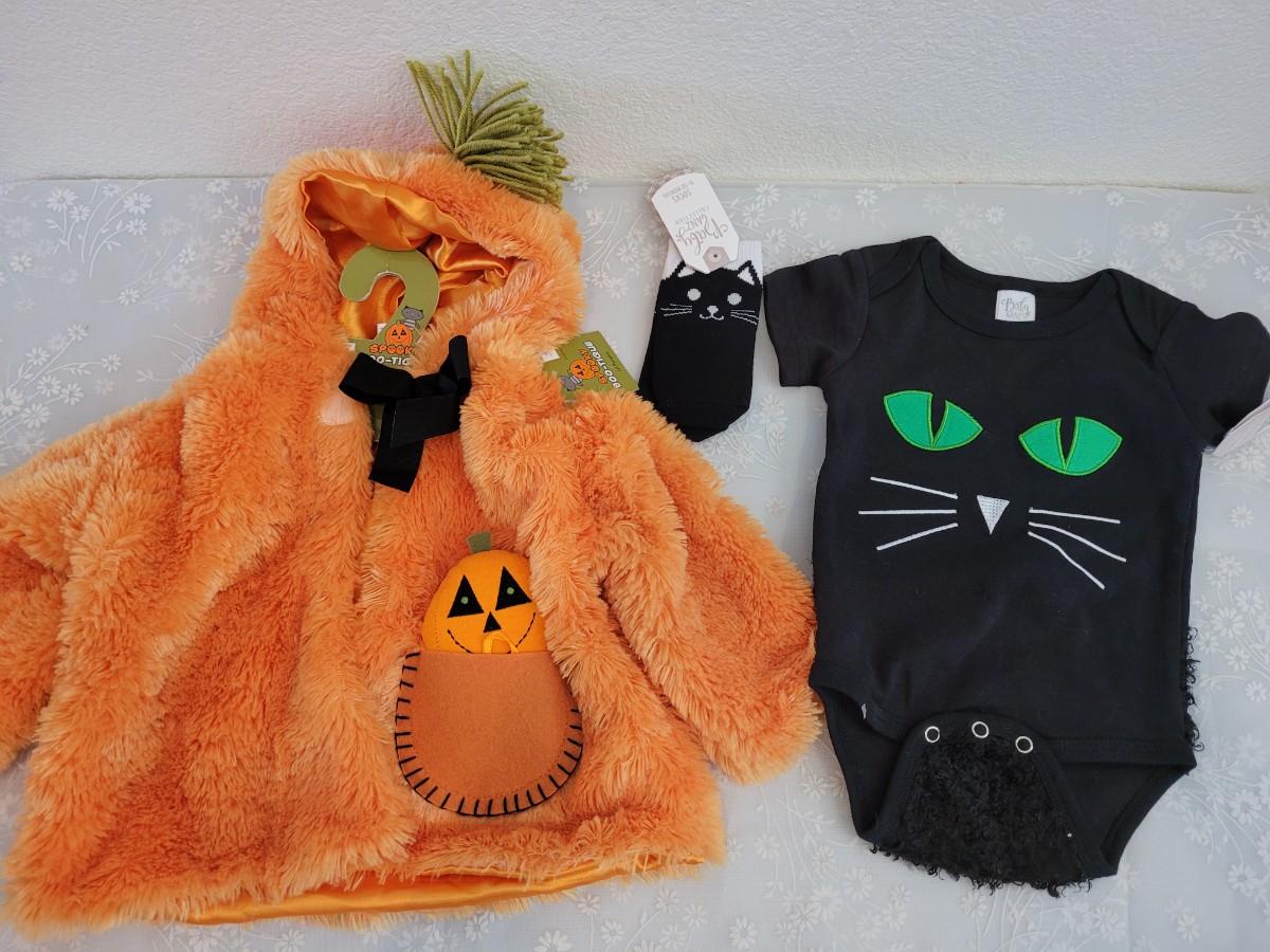 Lot 346: Baby Black Cat Onsie, Socks and Pumpkin Jacket