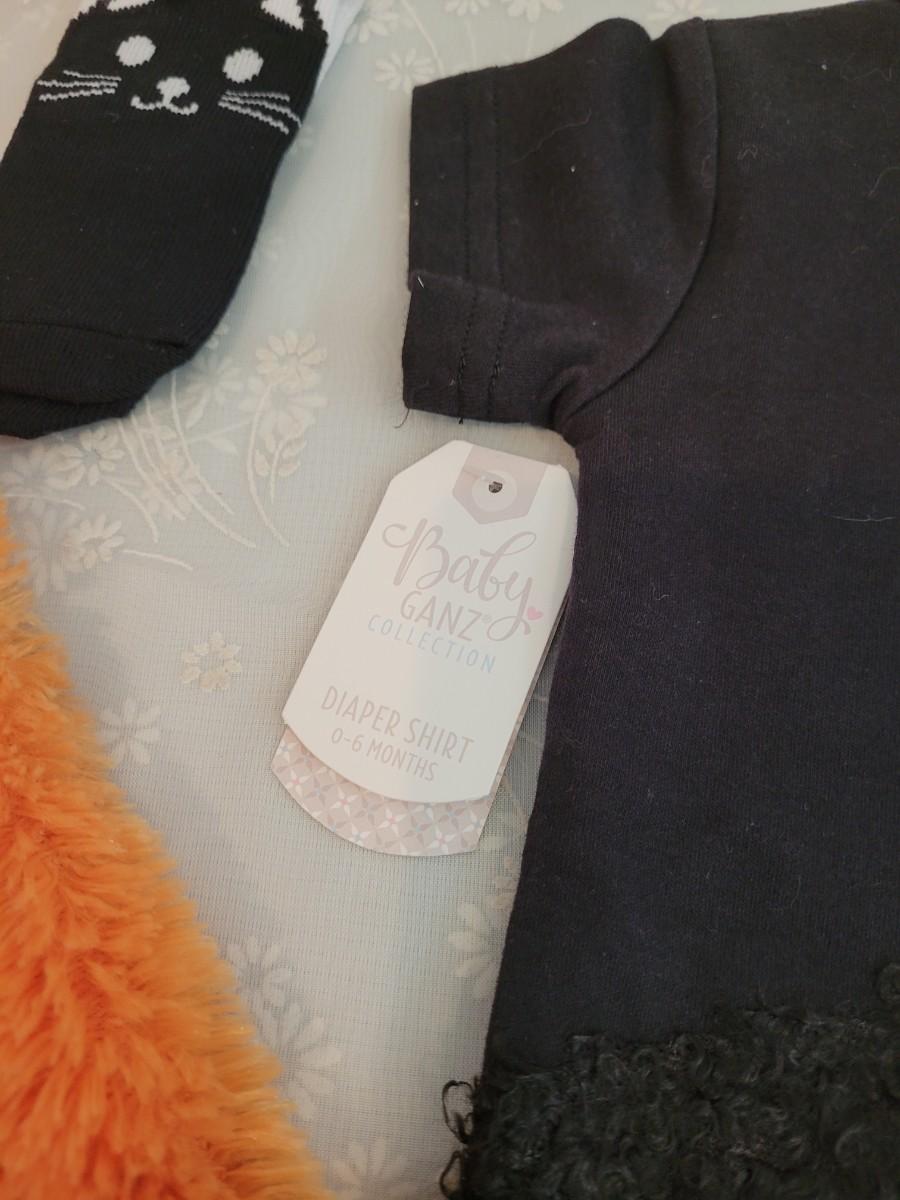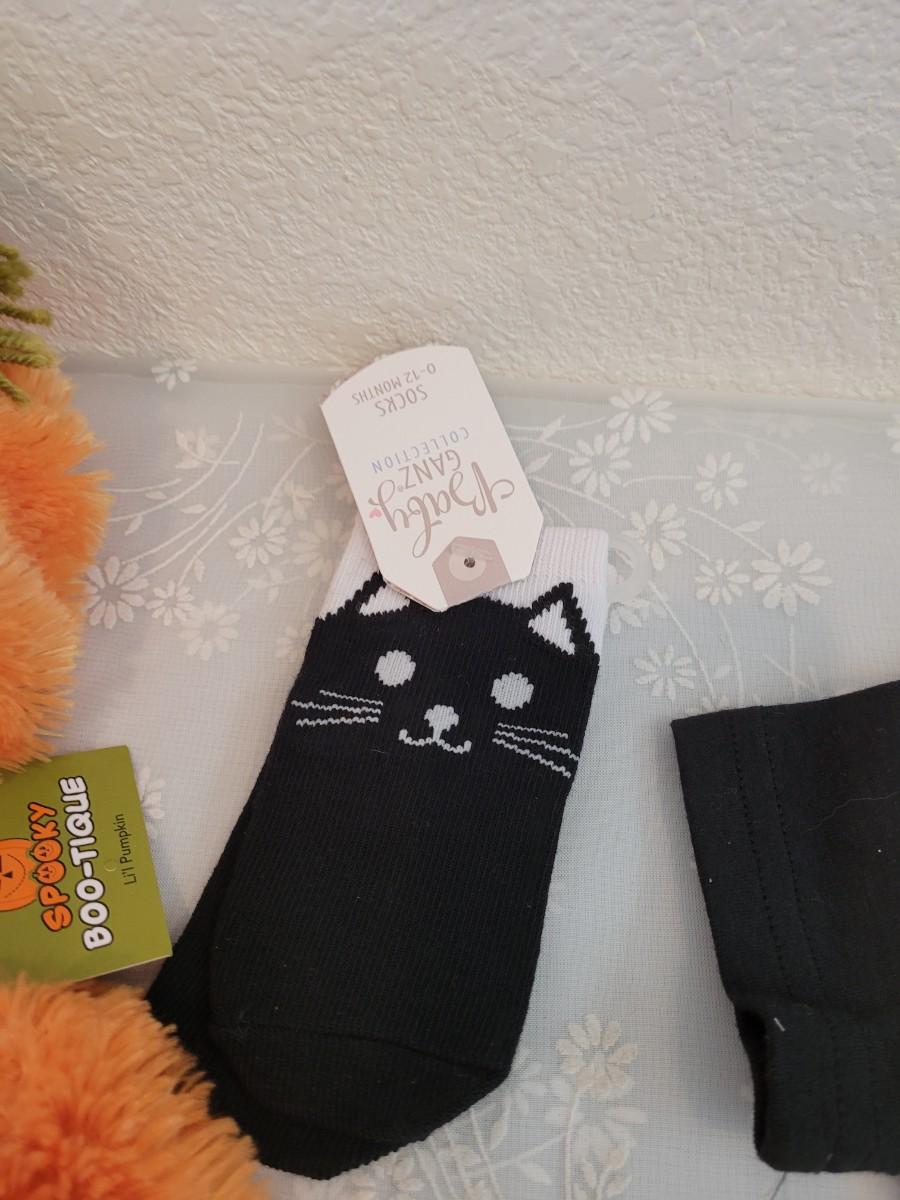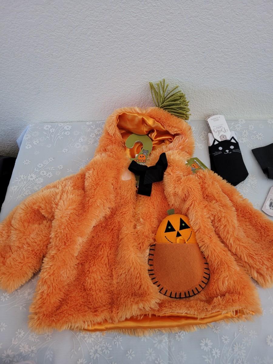 Lot 346: Baby Black Cat Onsie, Socks and Pumpkin Jacket