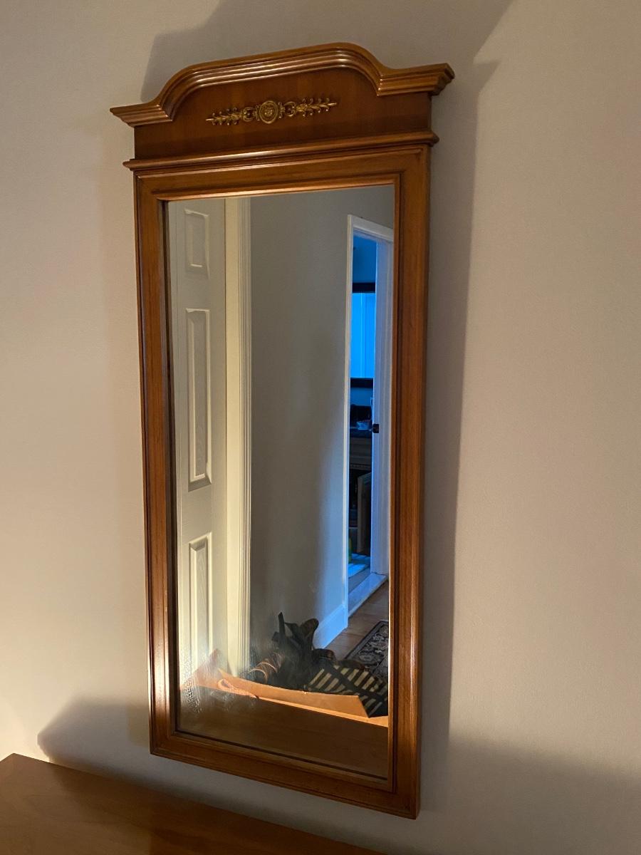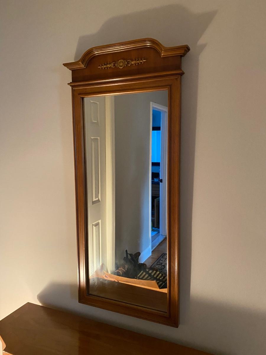Great for a small space. Mirror: 19 x 45 Console Cabinet 41 x 12 x30