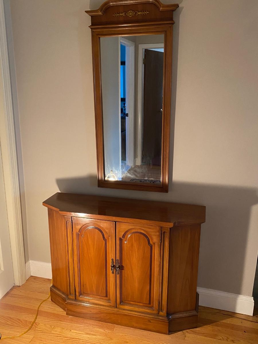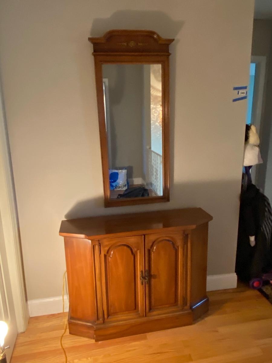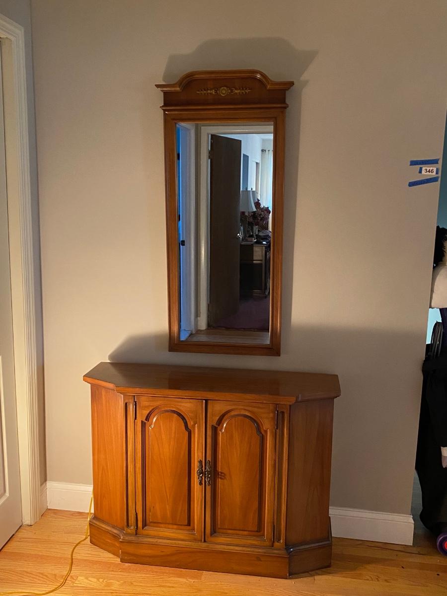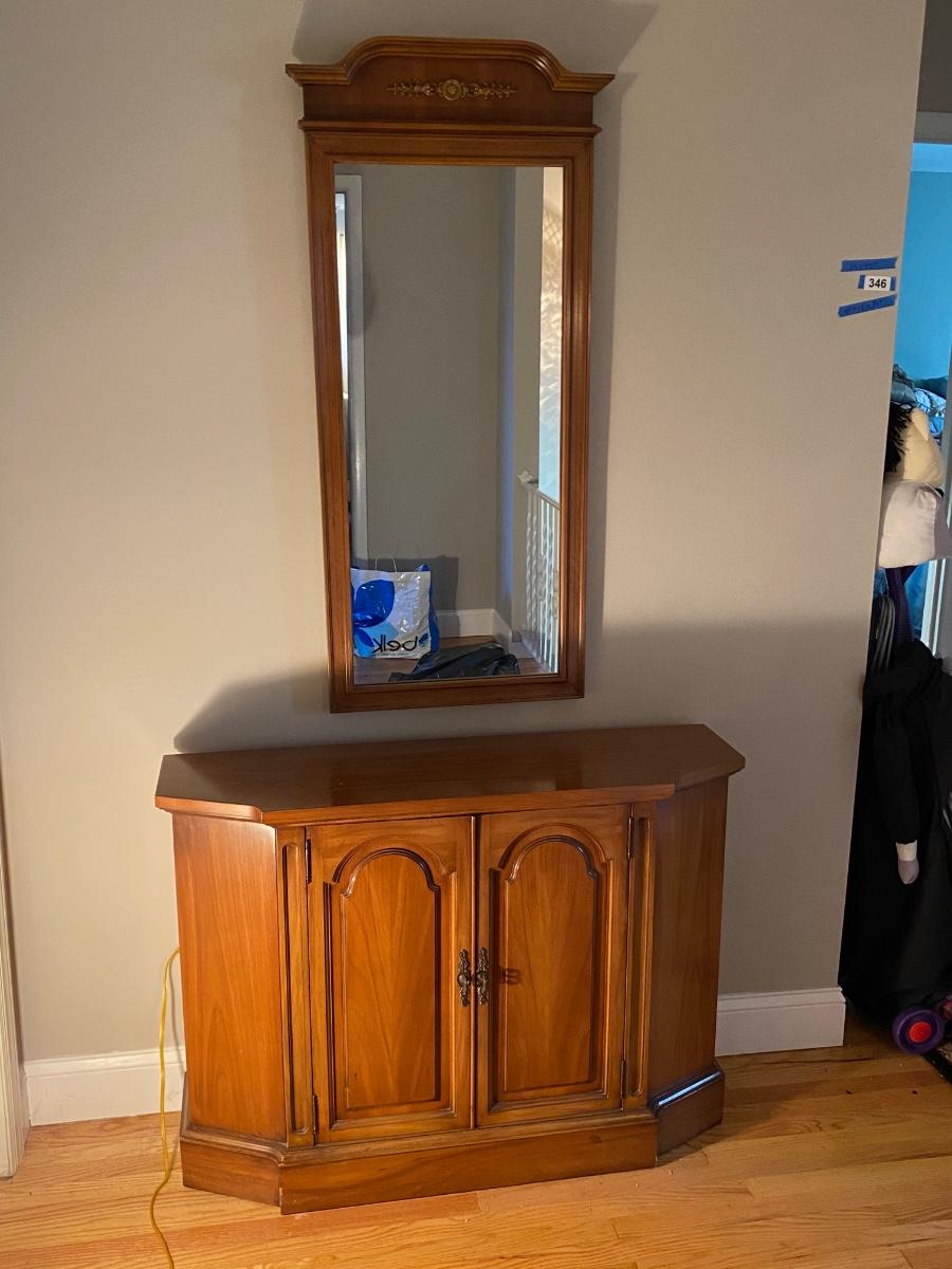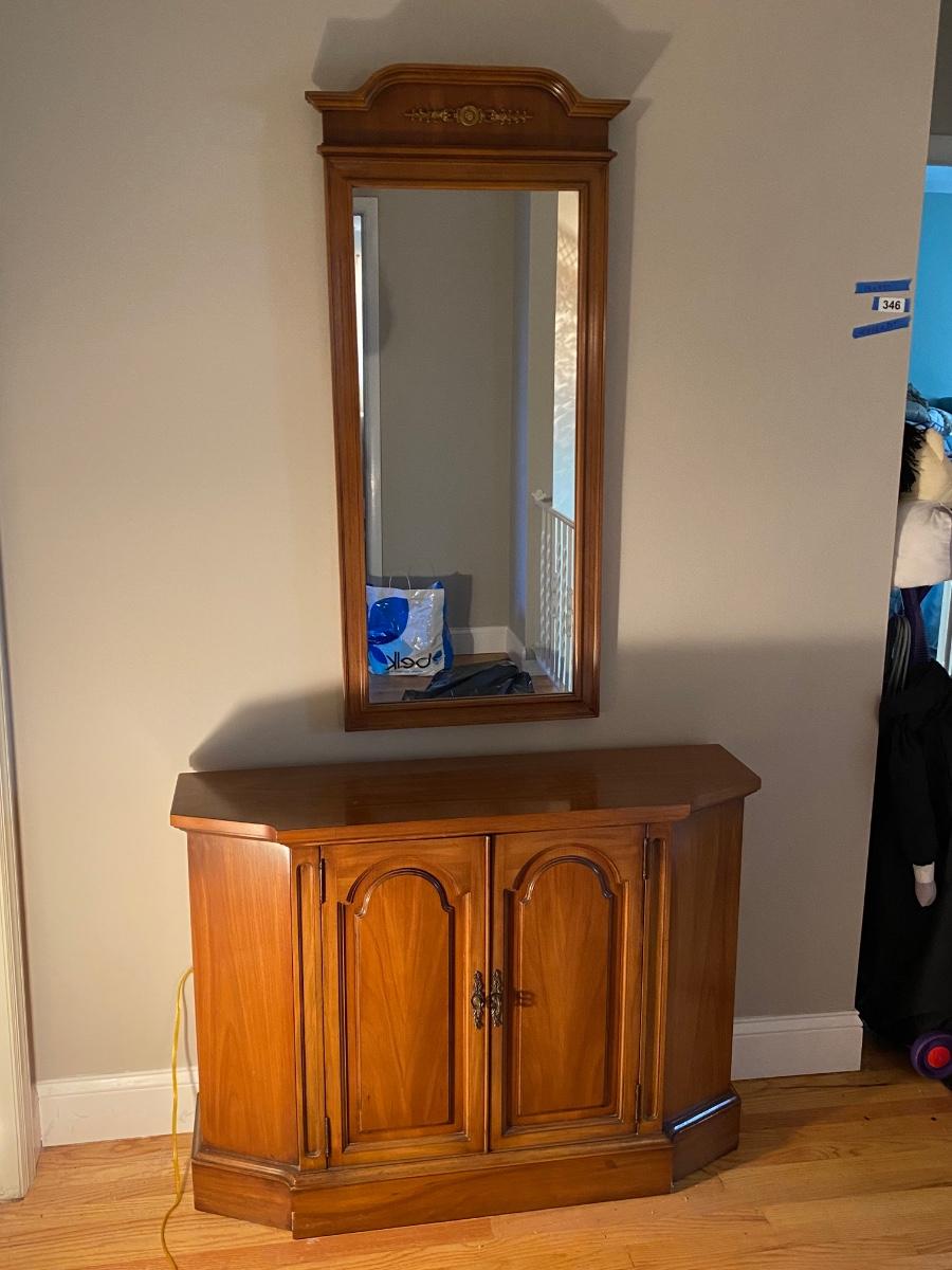 Lot 346: Vintage Console Cabinet & Mirror