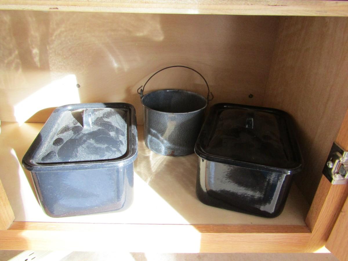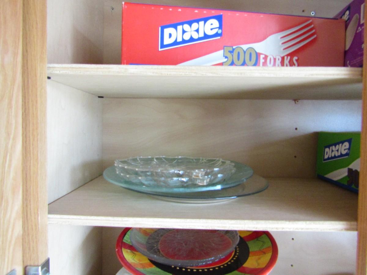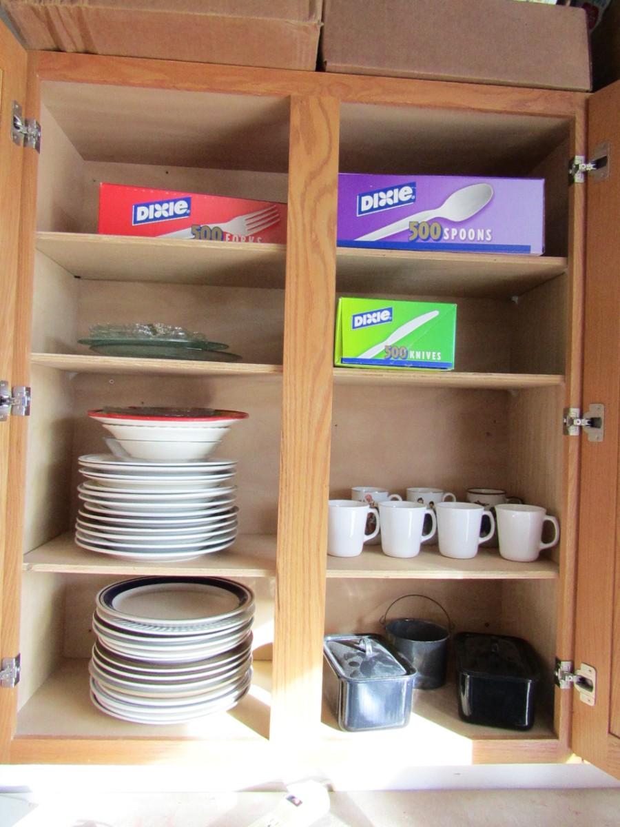 LOT 346 VINTAGE PANS, MISMATCHED PLATES, CUPS AND DISPOSABLE SILVERWARE