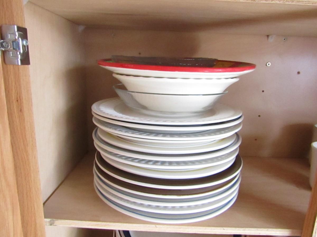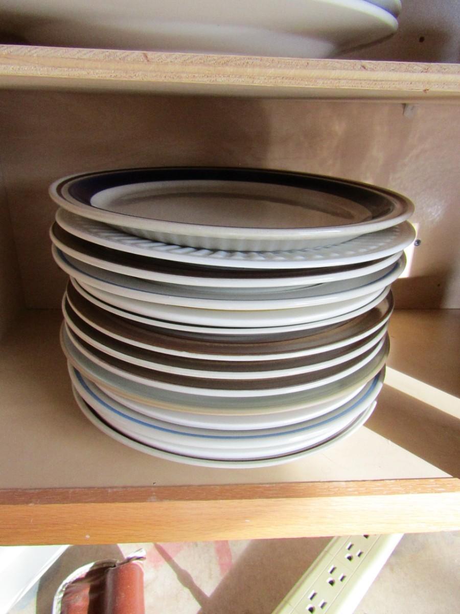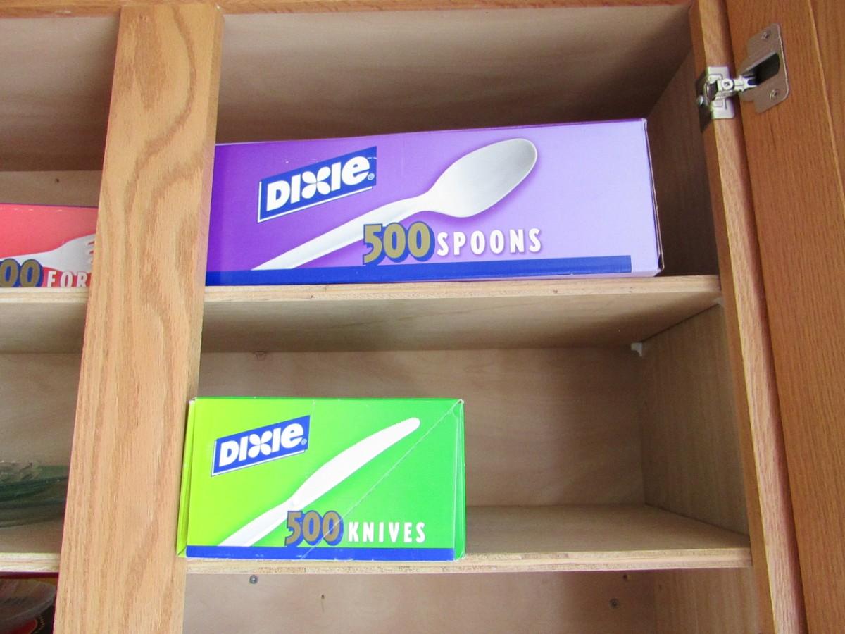 LOT 346 VINTAGE PANS, MISMATCHED PLATES, CUPS AND DISPOSABLE SILVERWARE